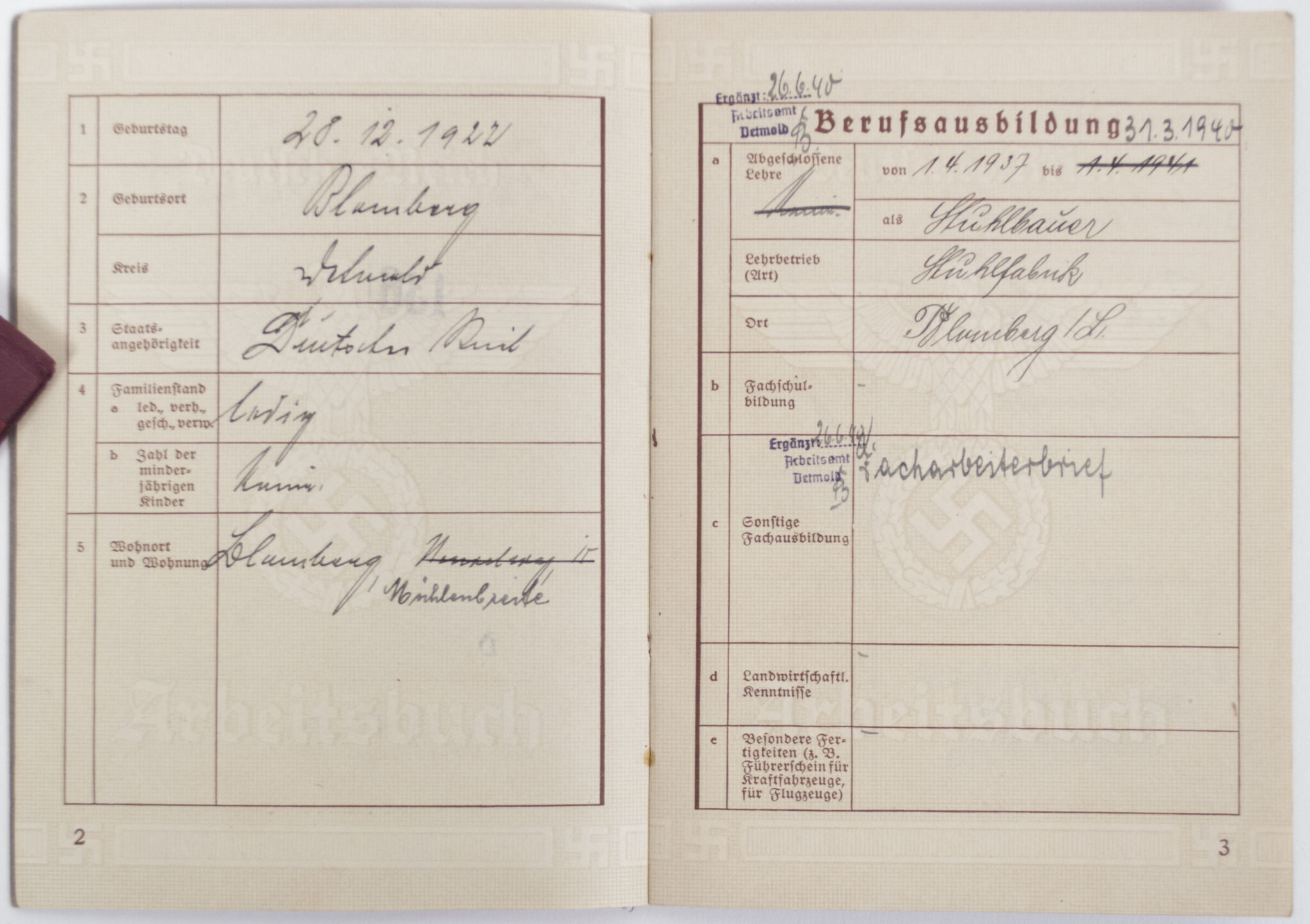 Arbeitsbuch – Arbeitsamt Detmold (1937).