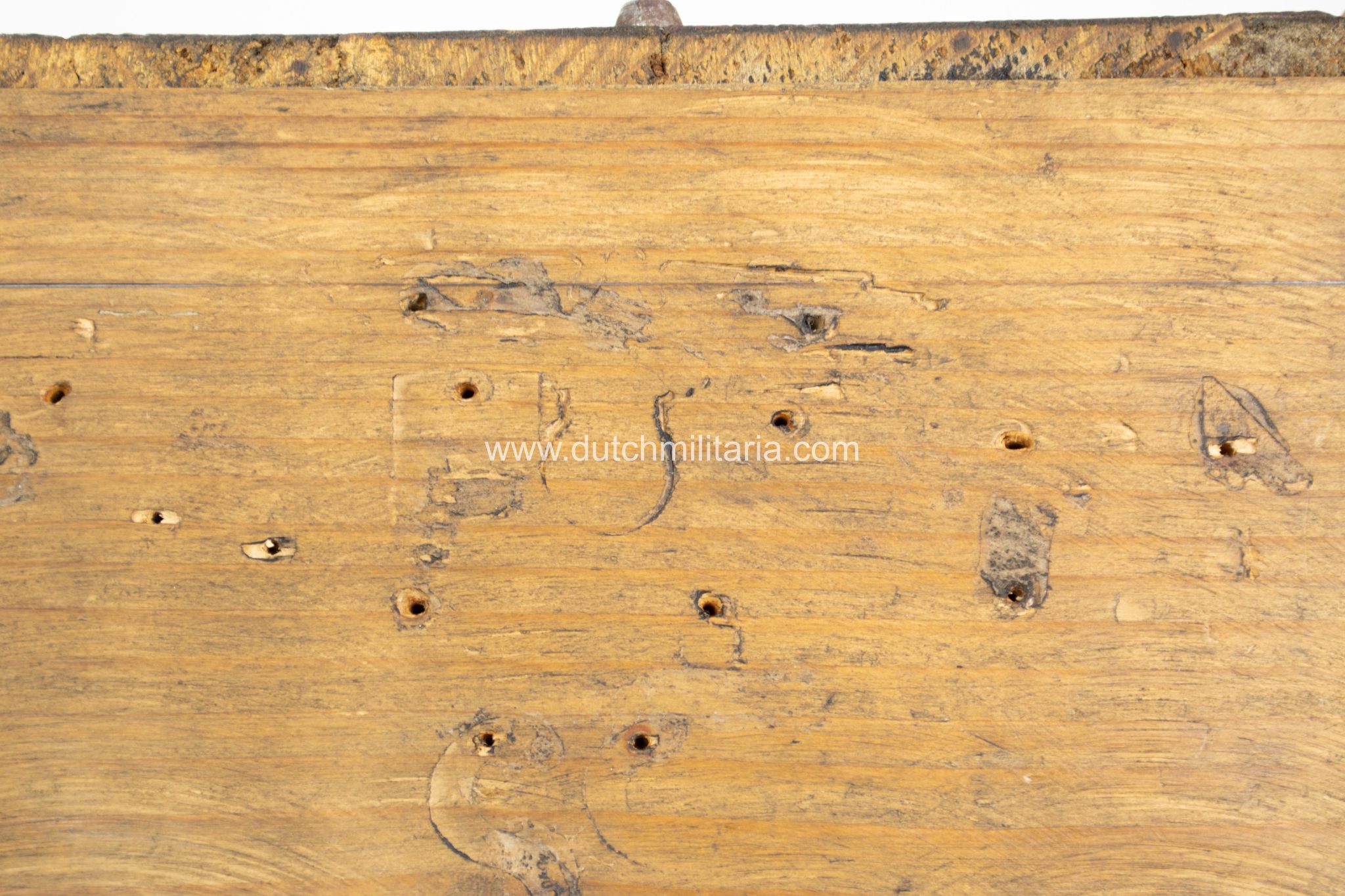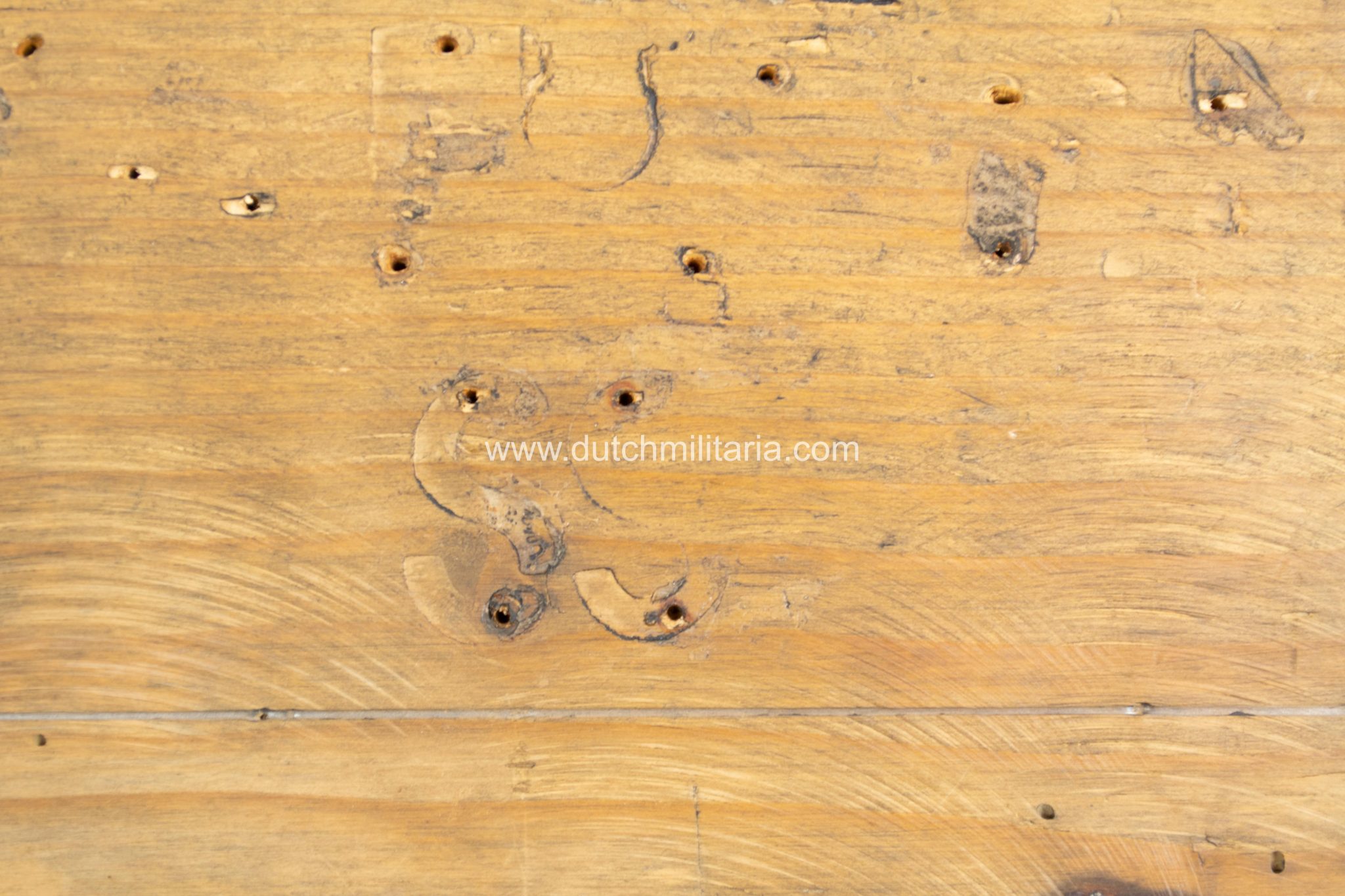 Please read the following with care: the box comes from a very old lifetime collection, but it is unclear how old it actually is and when it was made. When studying the wood and used materials it is clearly very old, but i can not guarantee it was made pre-1945. It is clearly a home made piece and could as well be made wartime OR postwar in the 1950’s or 1960’s as a piece of veterans art. I offer it here “as is” and as an interesting displaypiece. It is probably also the first time i ever offer a piece that is not clearly to be dated as wartime made, but in hand this looks so very well made and it is an interesting collectable that would fit very well in a World War 2 collection.
