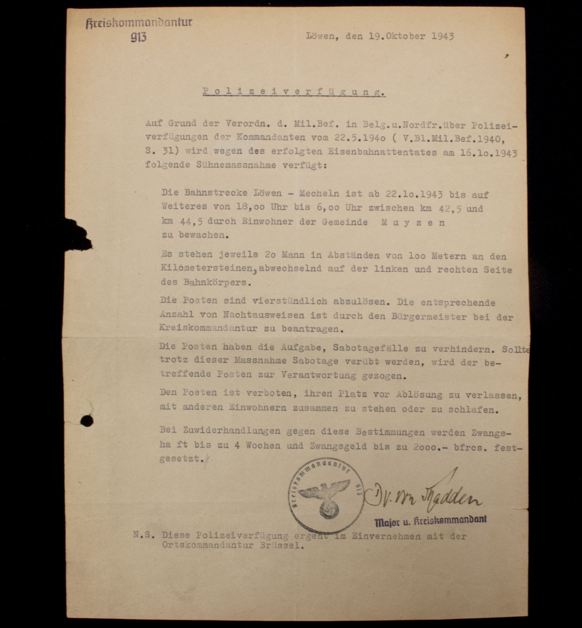 (Belgium) Leuven/Mechelen Polizeiverfügung 1943 document.