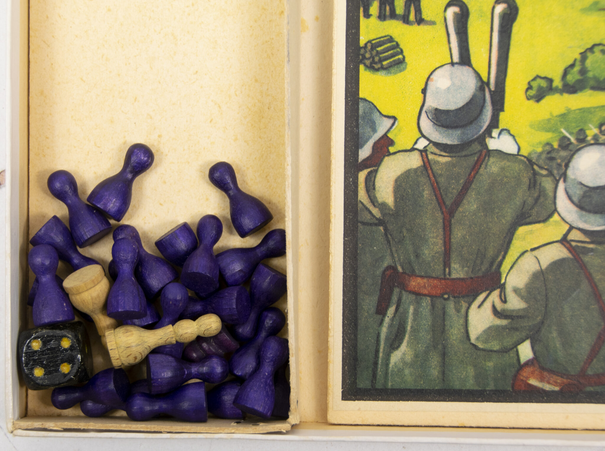 This is particularly a period game in which the National Socialist idea was promoted, by playing “war”. Very hard to find, besides one game being mentioned on a referencesite there is no other online.