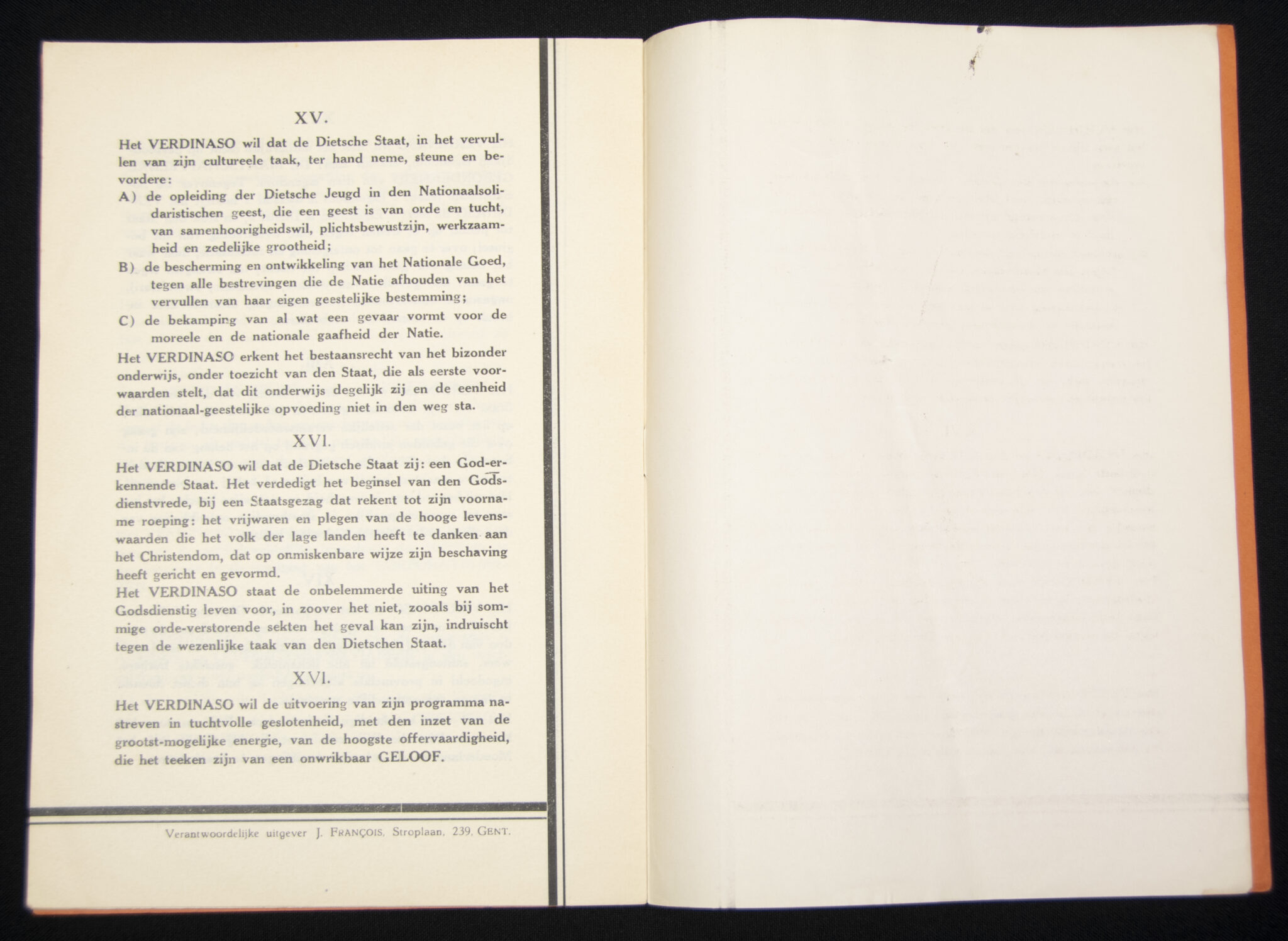 (Brochure / Belgium) Verbond van Dietsche Nationaalsolidaristen – Program (1934).