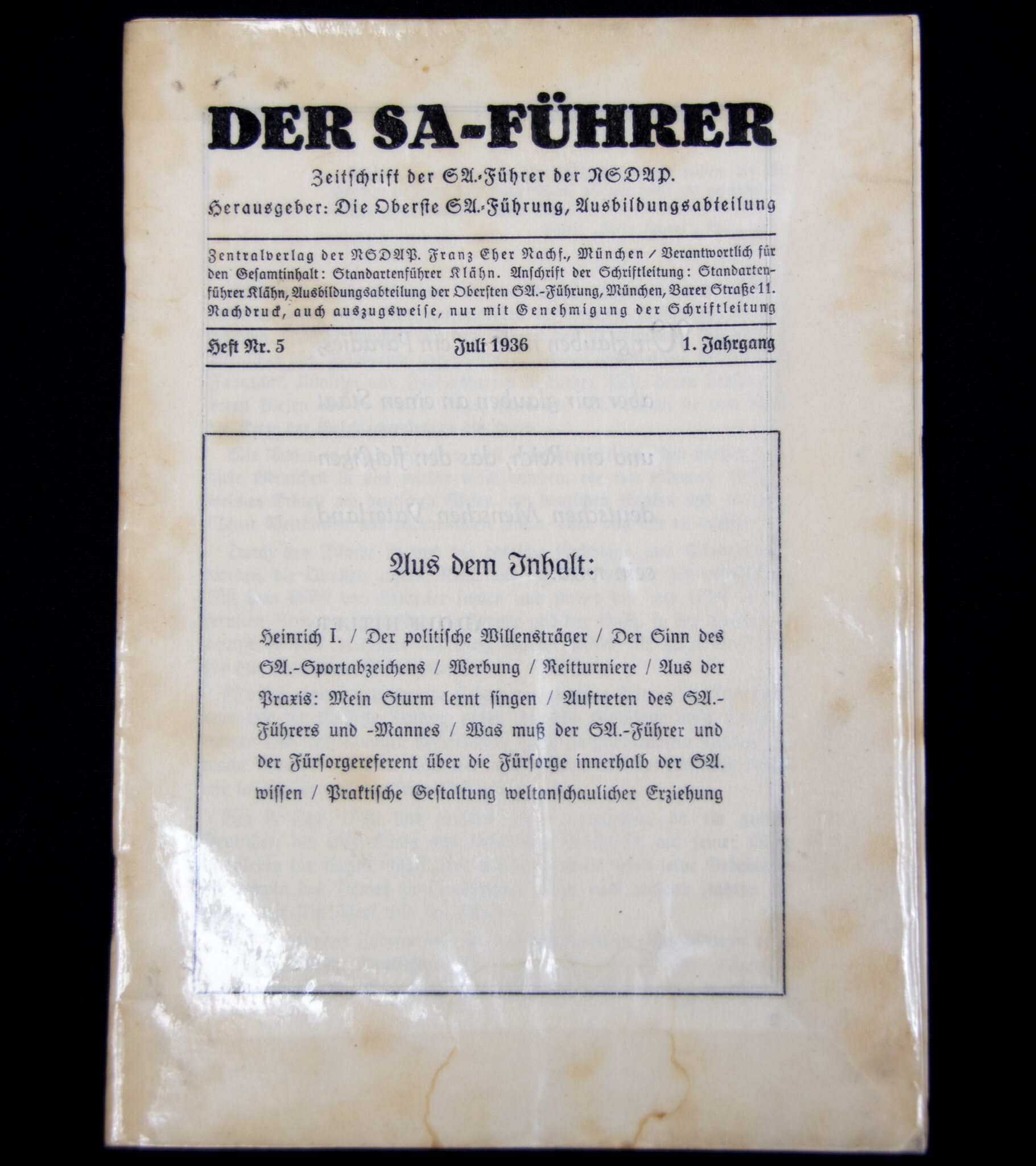 (Brochure) Der SA-Führer 1. Jahrgang Heft Nr. 5 Juli (1936).