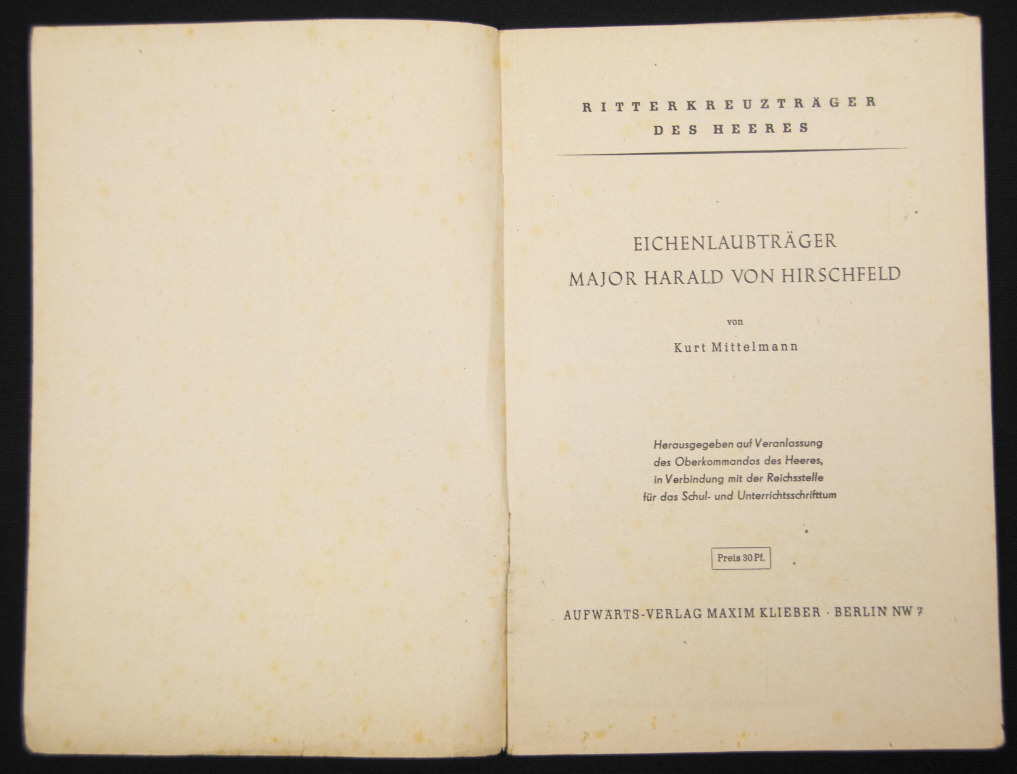 (Brochure) Die Ritterkreuzträger des Heeres – Eichenlaubträger Major Harald von Hirschfeld.