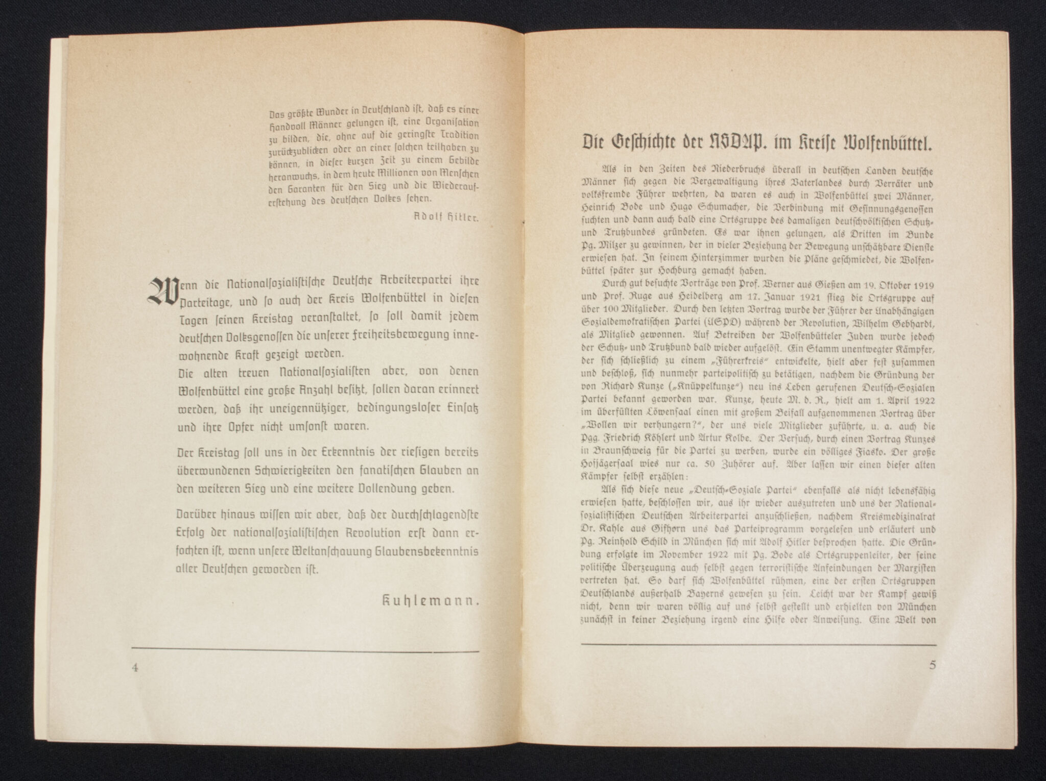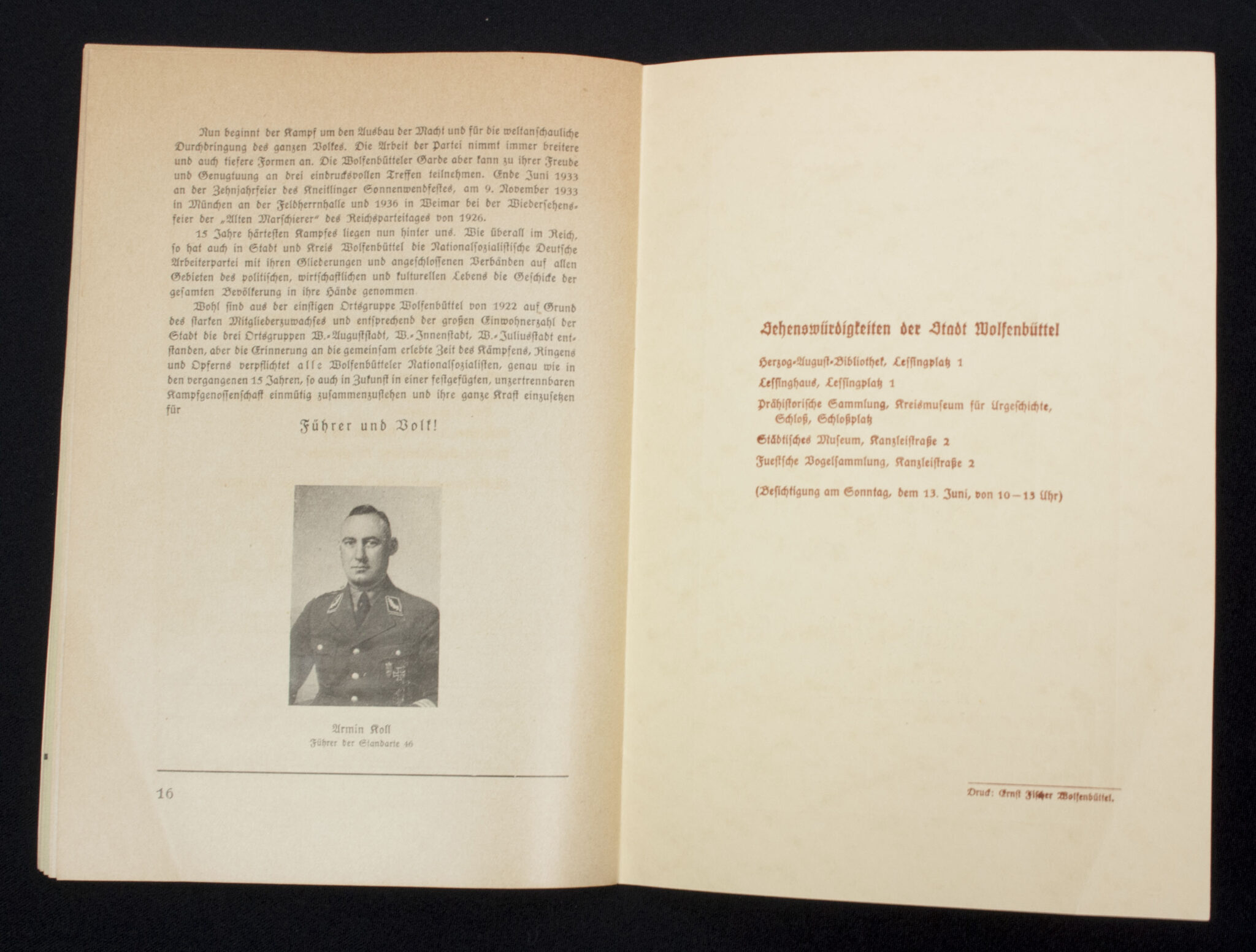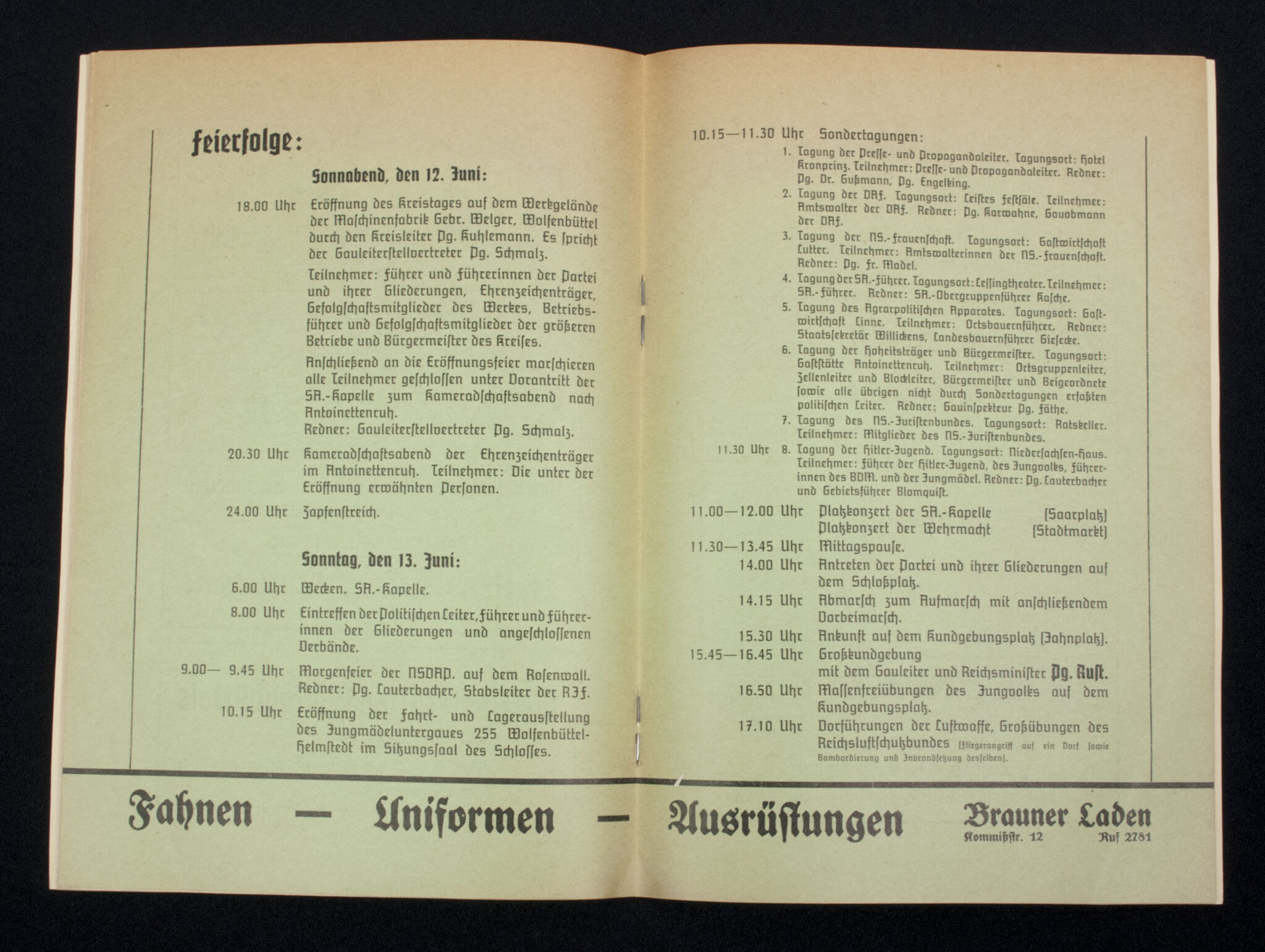 (Brochure) Kreistag Wolfenbüttel 12.-13.6.1937 programm booklet.