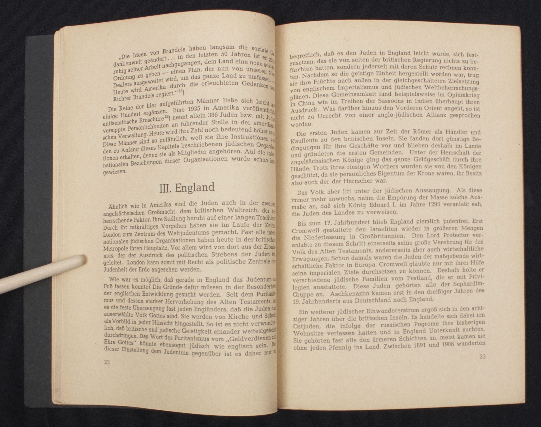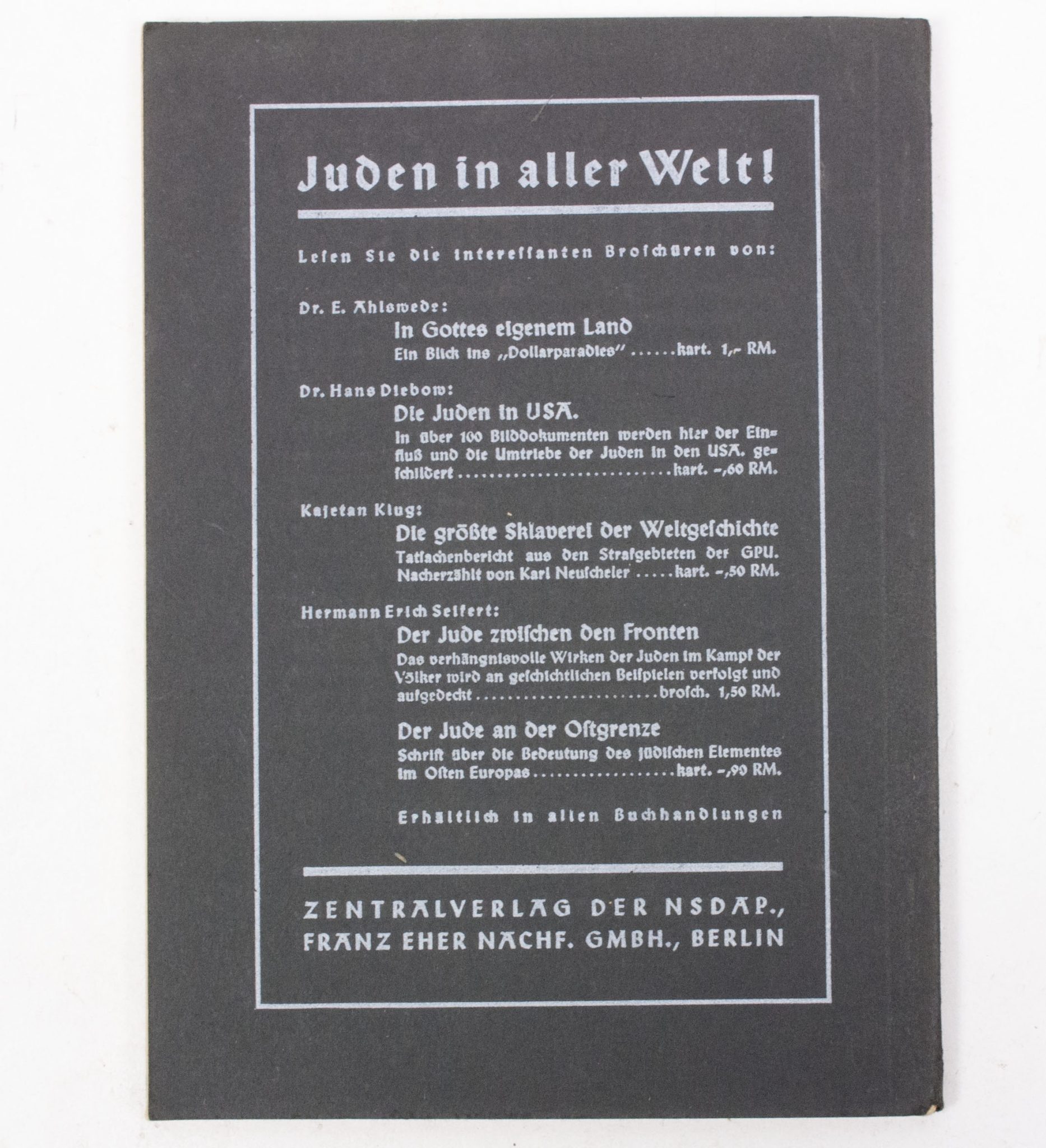 (Brochure – SS ) Dieter Schwarz – Das Weltjudentum Organisation Macht und Politik, Zentralverlag der NSDAP., Frz. Eher Nf. GMBH., Berlin, (1944), cardboard cover.