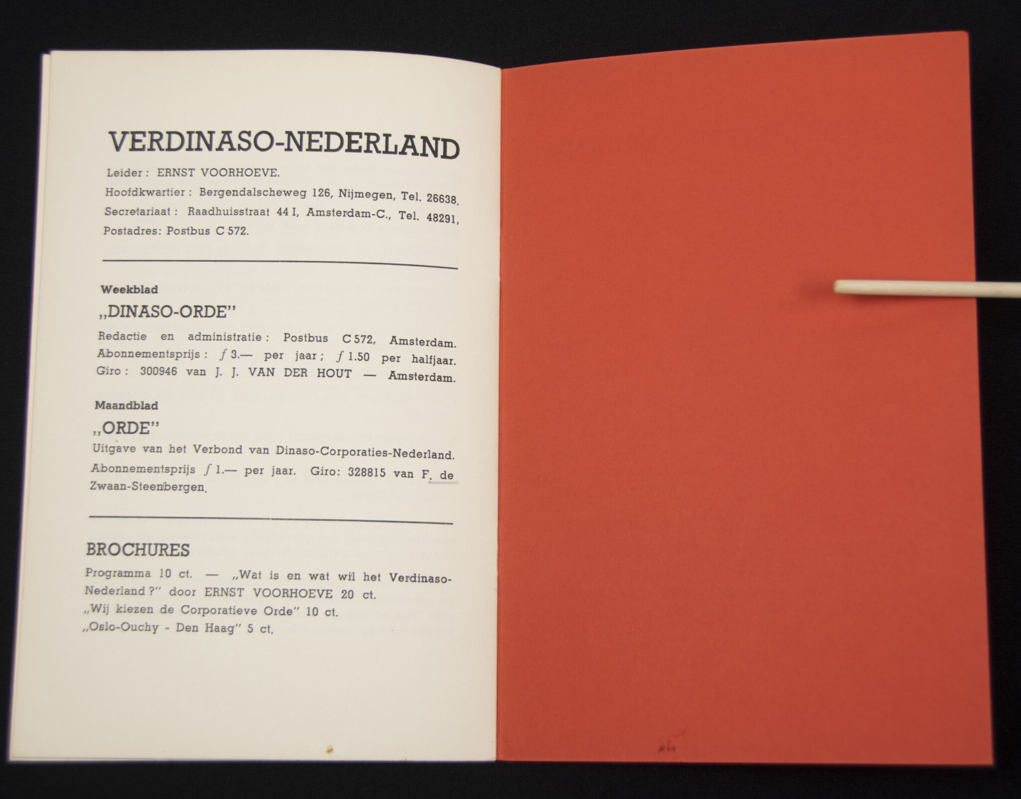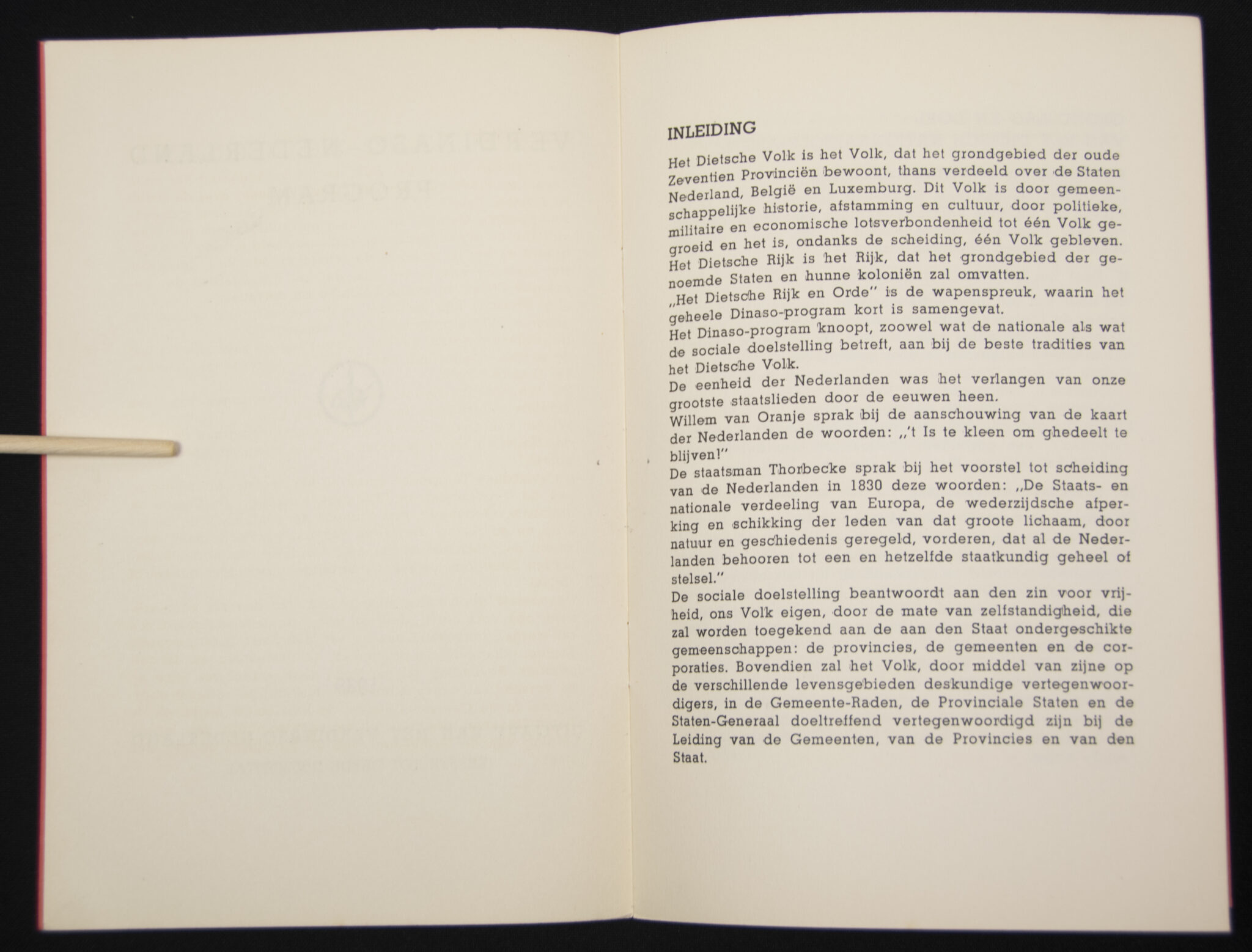 (Brochure) Verdinaso Nederland – Program, Uitgave van het Verdinaso-Nederland, (1939), Eerste tot Derde Duizendtal, cardboard cover.
