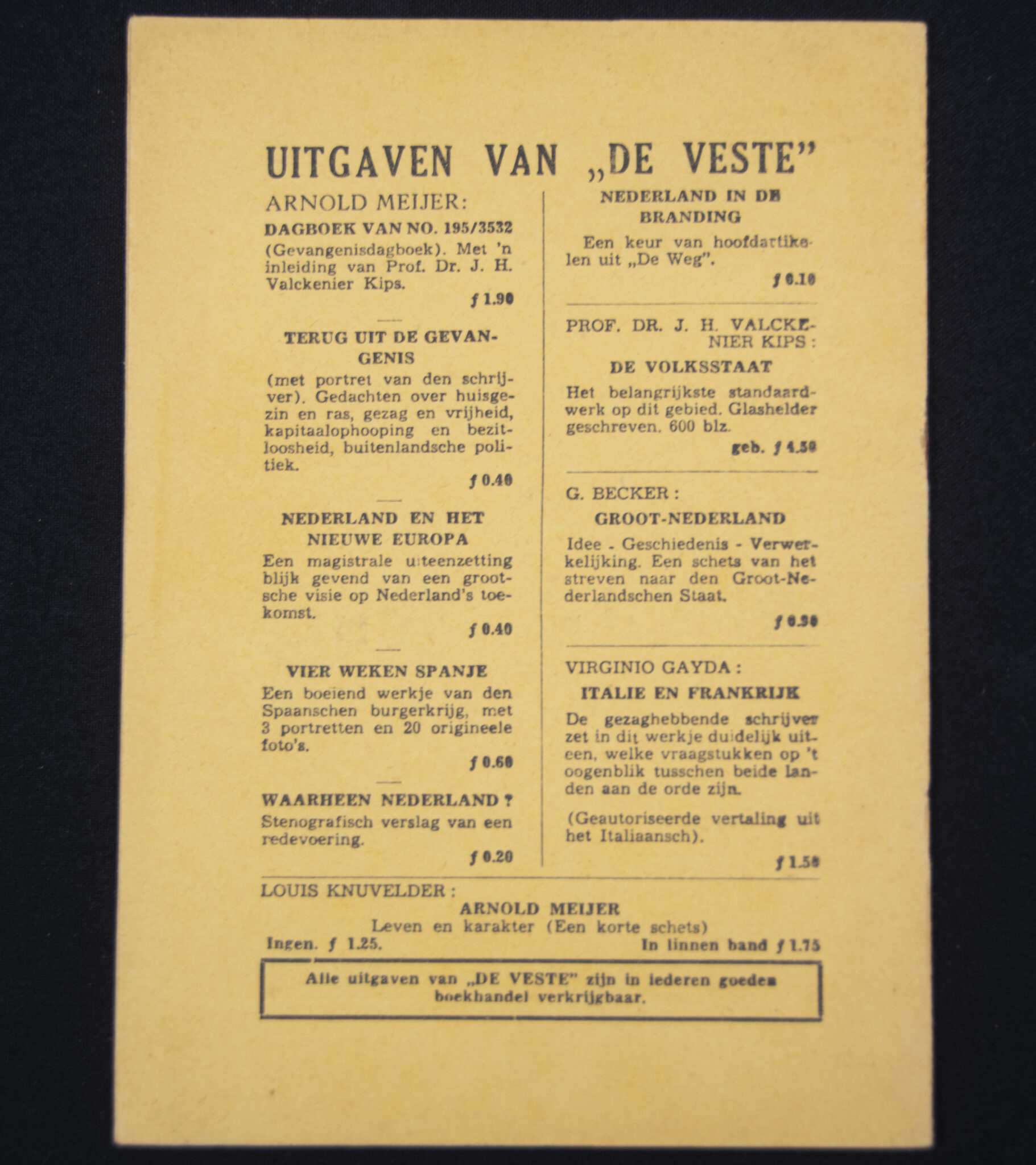 (Brochure) Zwart Front / Nationaal front – Arnold Meijer – Alles voor ons vaderland Nederland (1941).