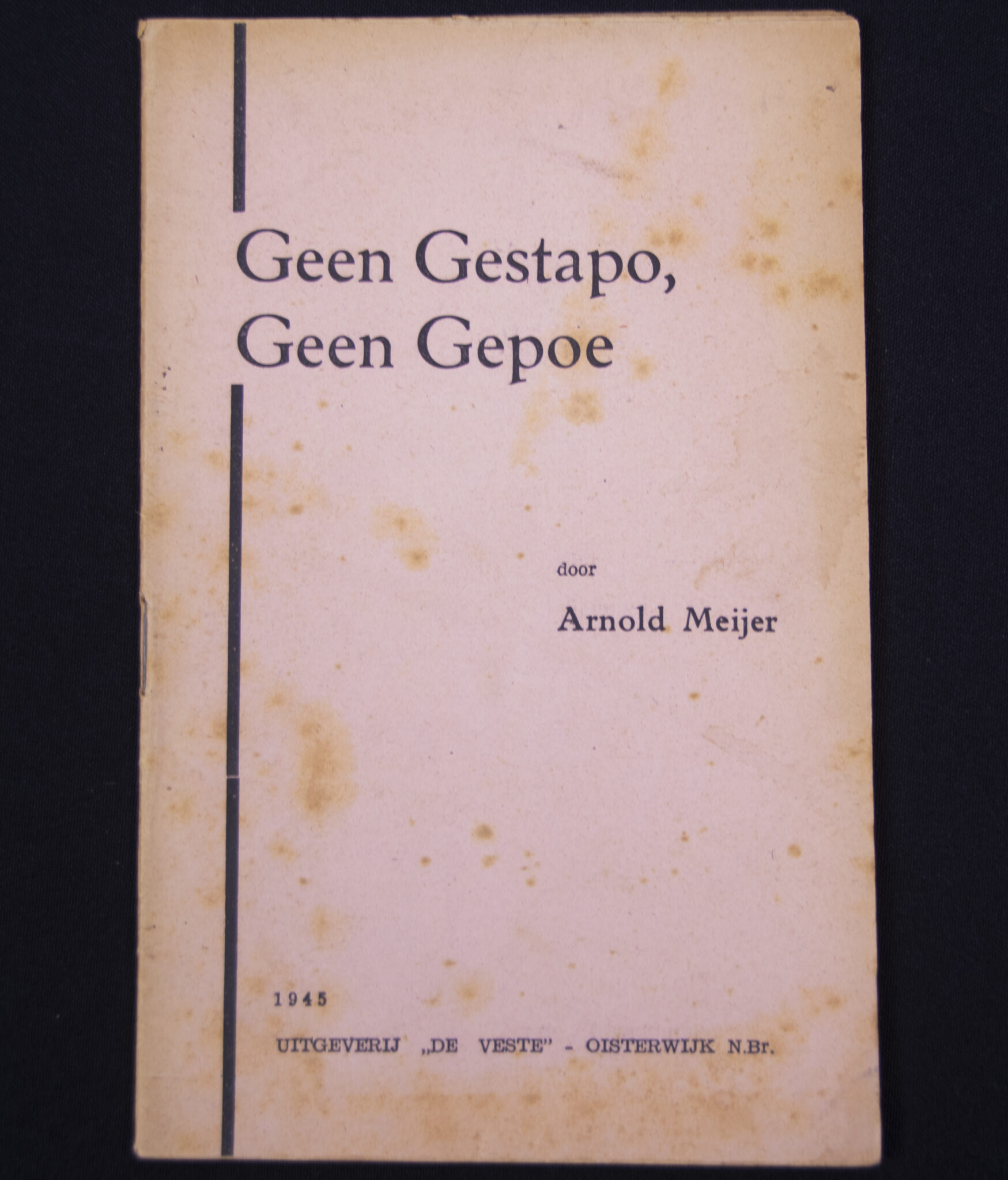 (Brochure) Zwart Front/Nationaal front – Arnold Meijer – Geen Gestapoe, Geen Gepoe (1945).