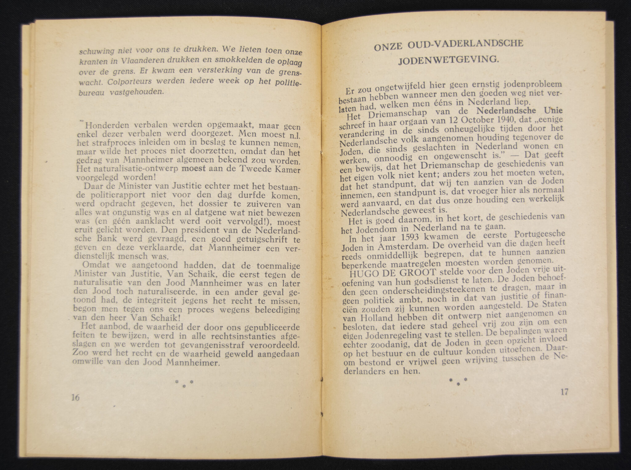 (Brochure) Zwart Front Nationaal front – Arnold Meijer – Nedrland en de Joden (1940).