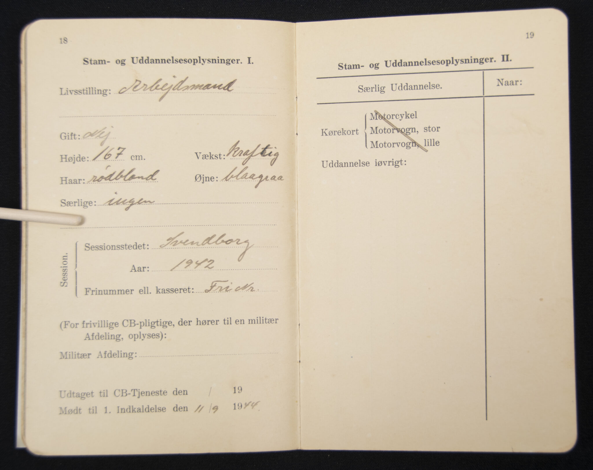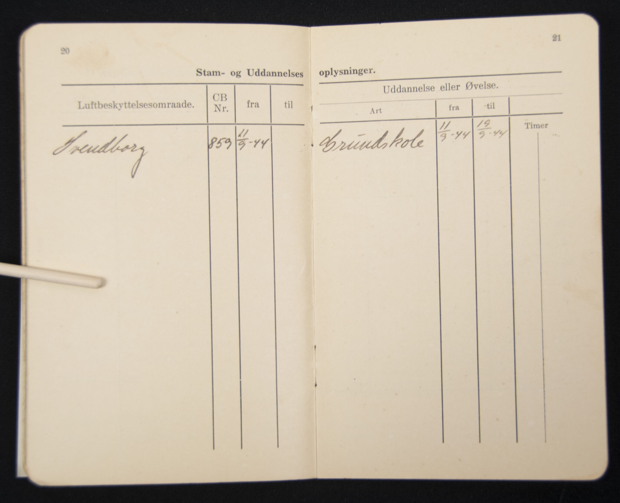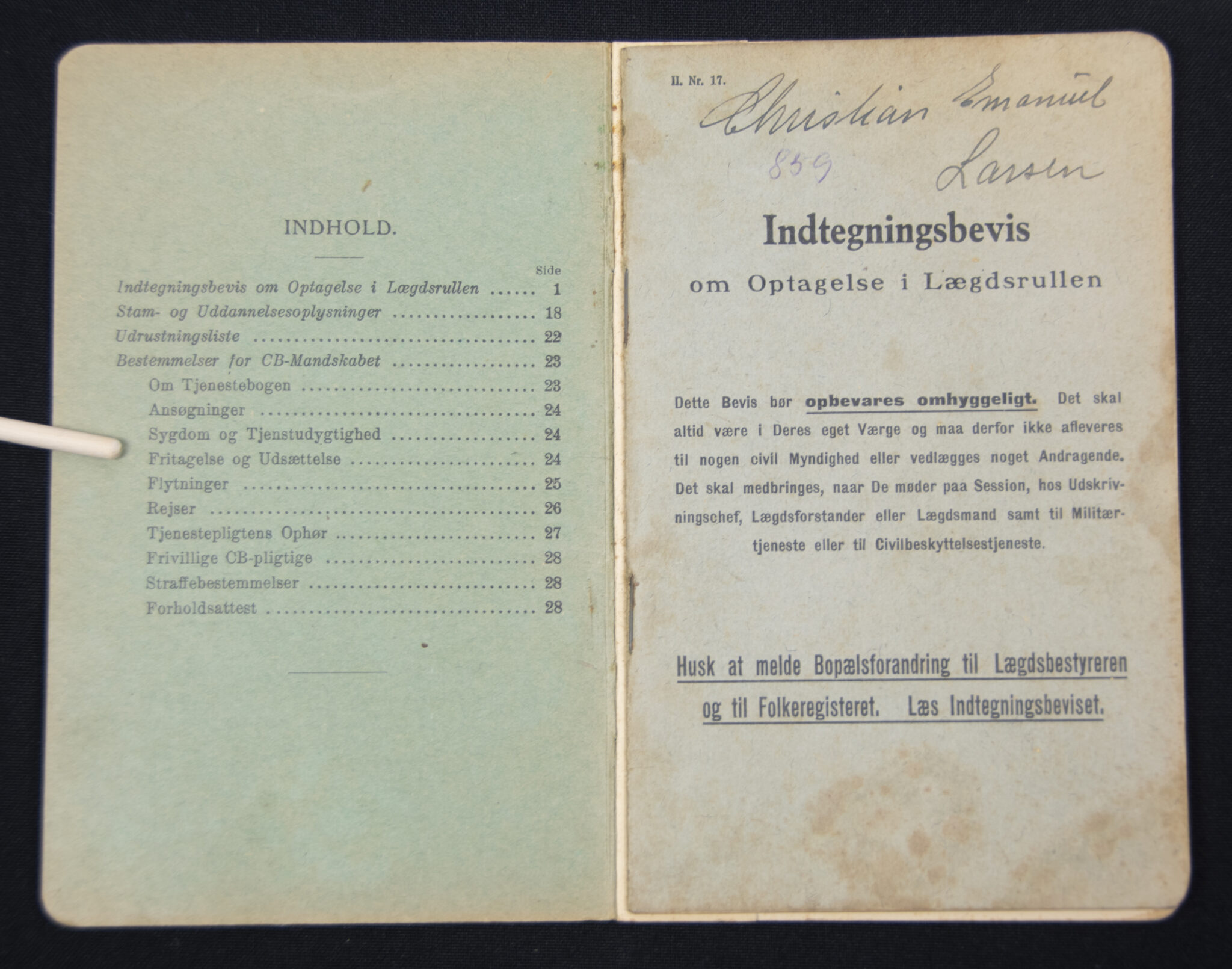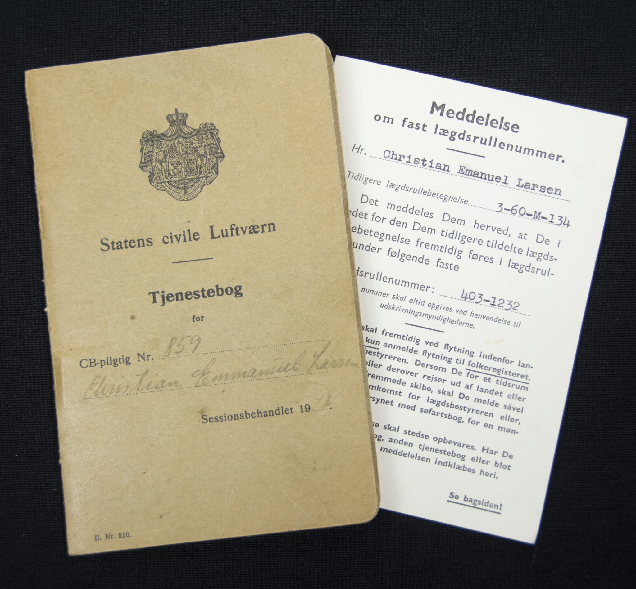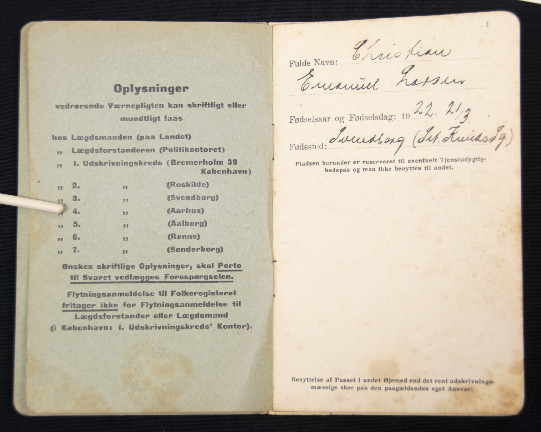Danish civil Air Defense pass + photo (1939).