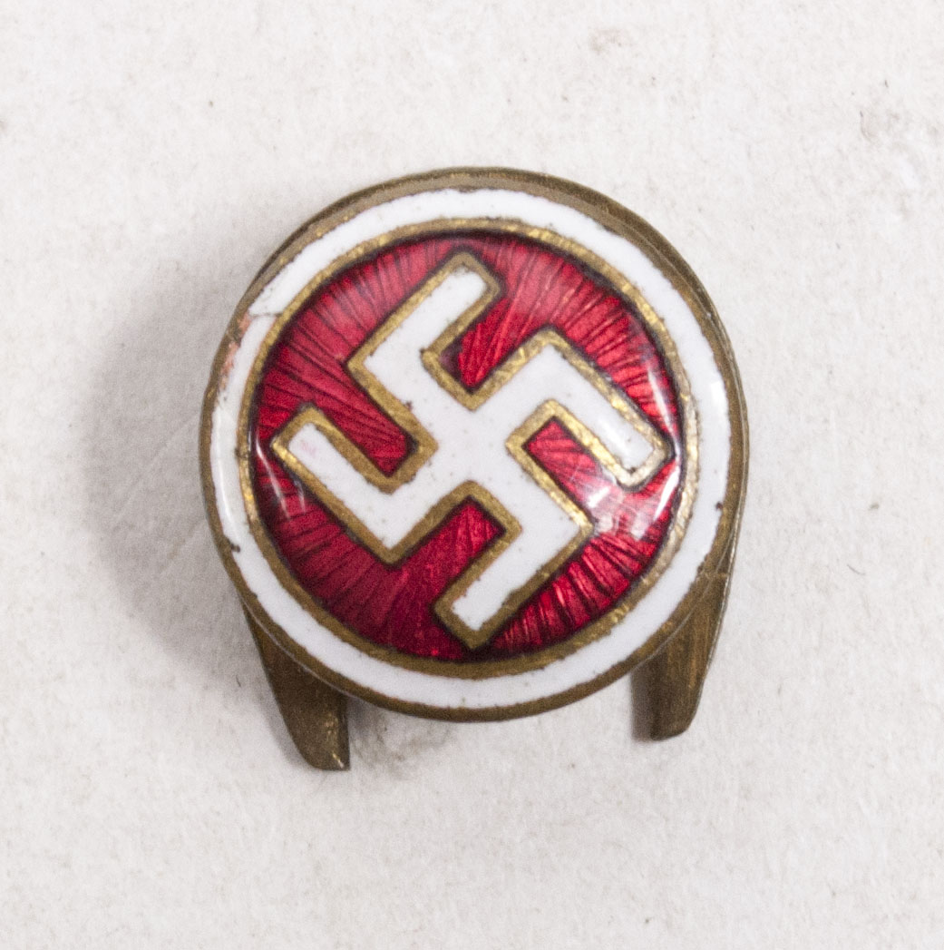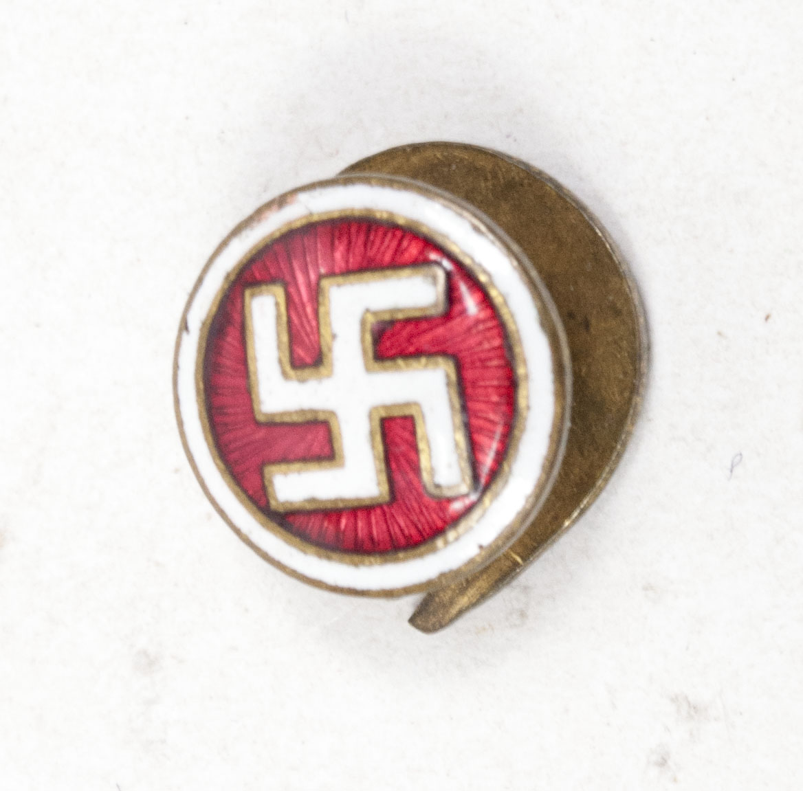 (Denmark) DNSAP – Danmarks Nationalsocialistiske Arbejderparti translucent enamel memberbadge (small buttonhole variation).