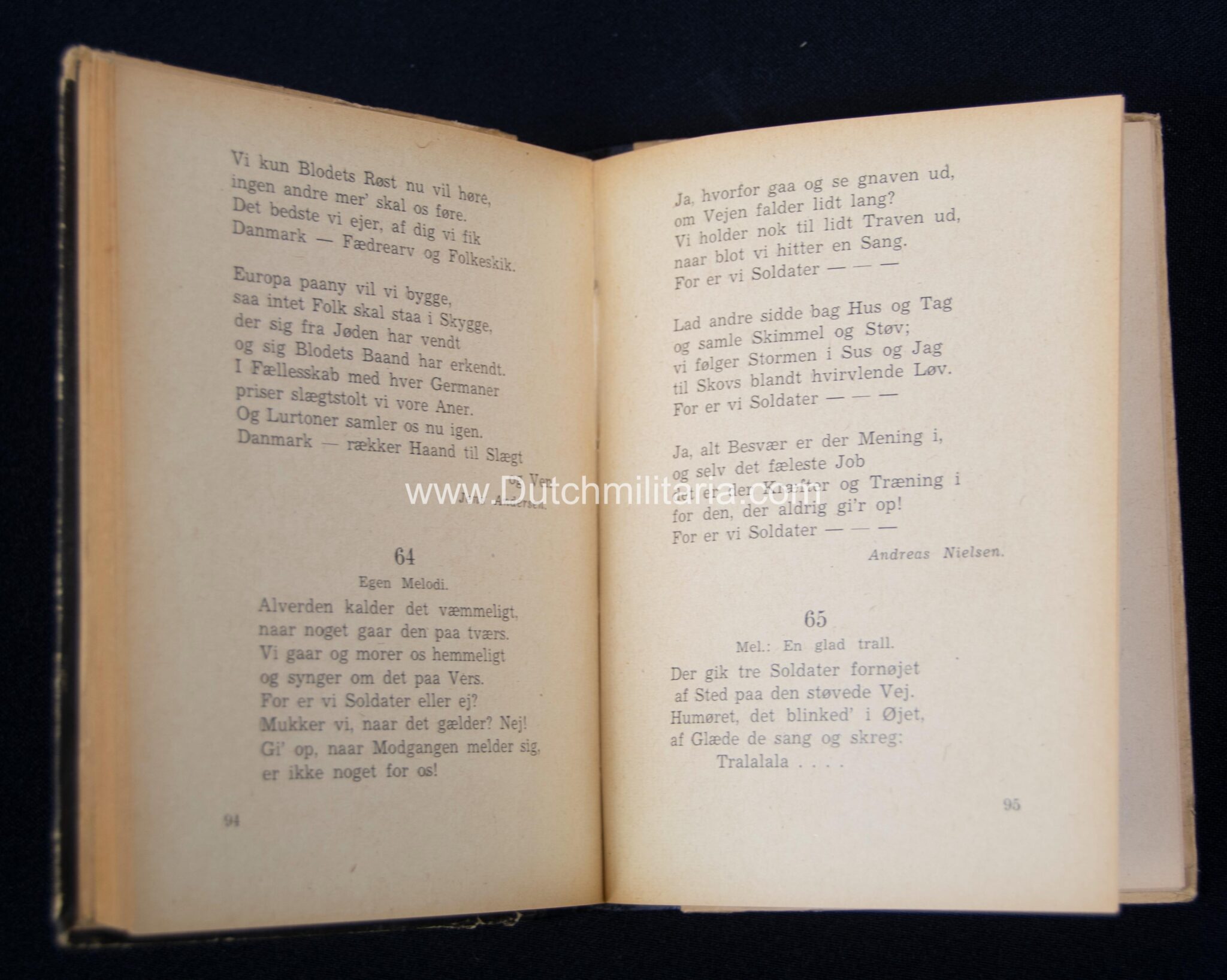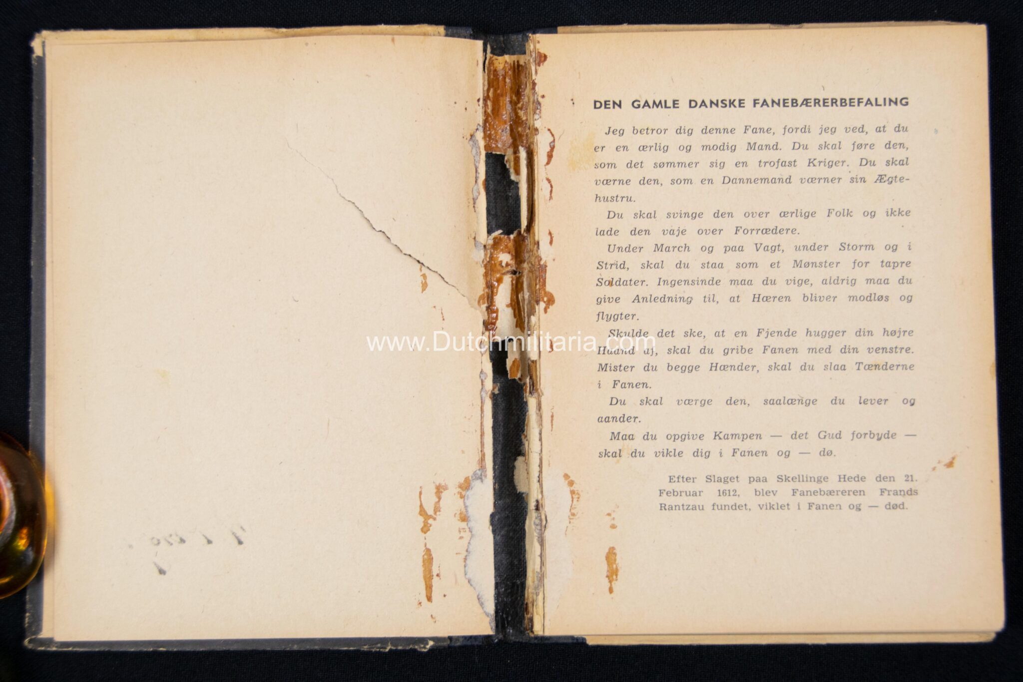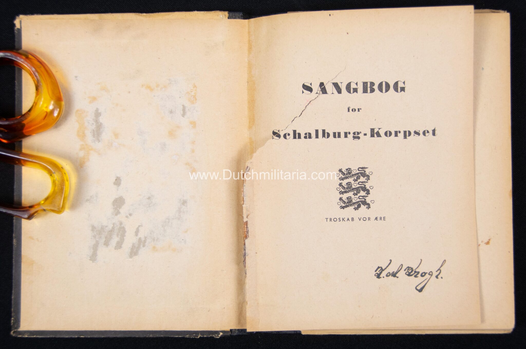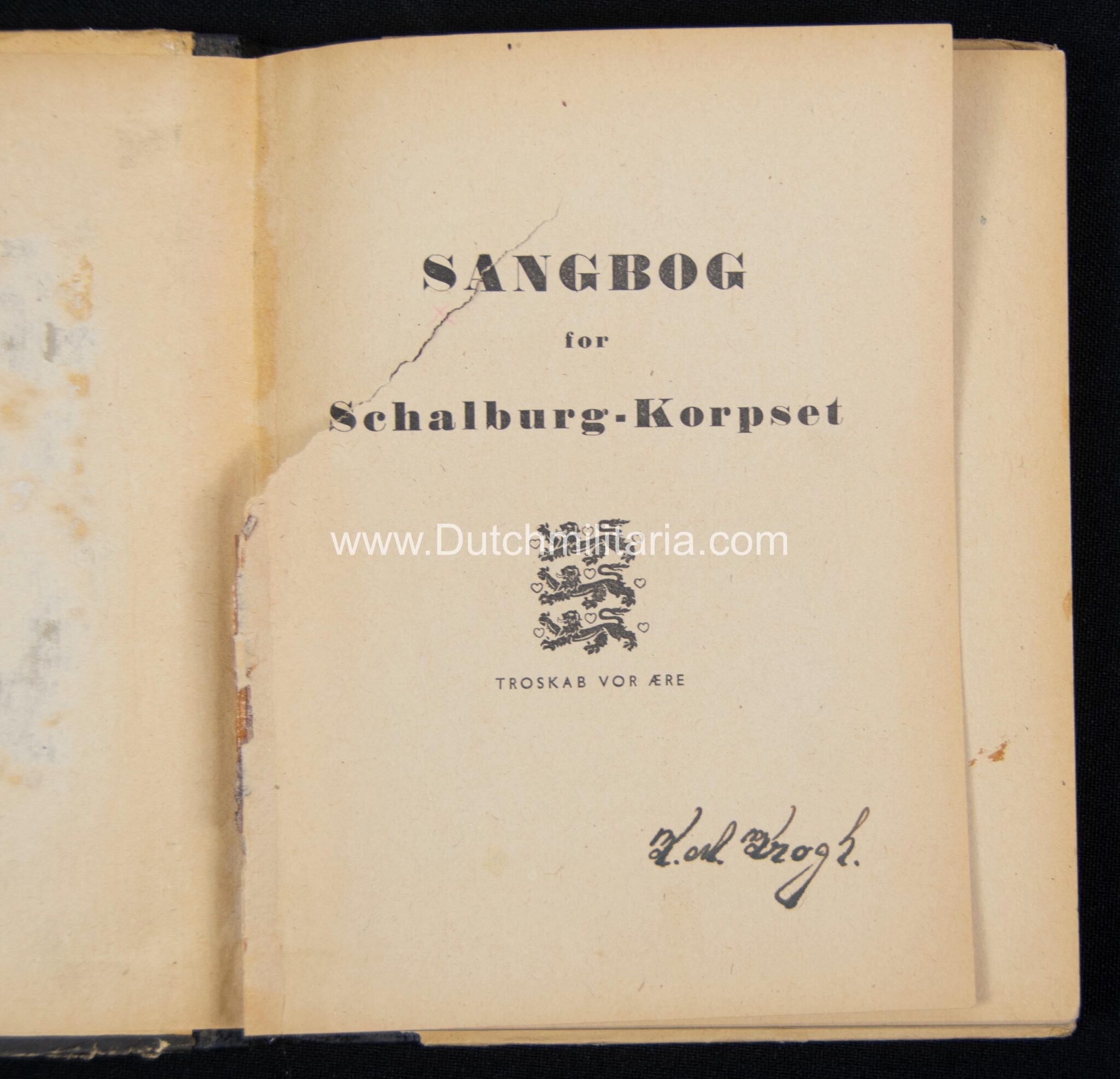 The best item in the group is ofcourse the danish SS Schalburgkorps songbook: “Sangbog for Schalburg-Korpset“. These songbooks are very very hard to find with only a handfull known in advanced danish collections. Since these were printed on bad wartime paper they are unfortunately all more or less damaged, this booklet being no exception with a bookblock that has come partially loose from the spine and a tear on the first page. It is however still a very rare booklet of which only less than a handfull is known, even in Denmark itself. On the international collectorsmarket or shows i have never before encountered one in all of my collecting life (spanning almost 3 decades). This one comes directly from denmark from a collectorsfriend who got it recently out of the woodwork. These books are rare in any condition as such!