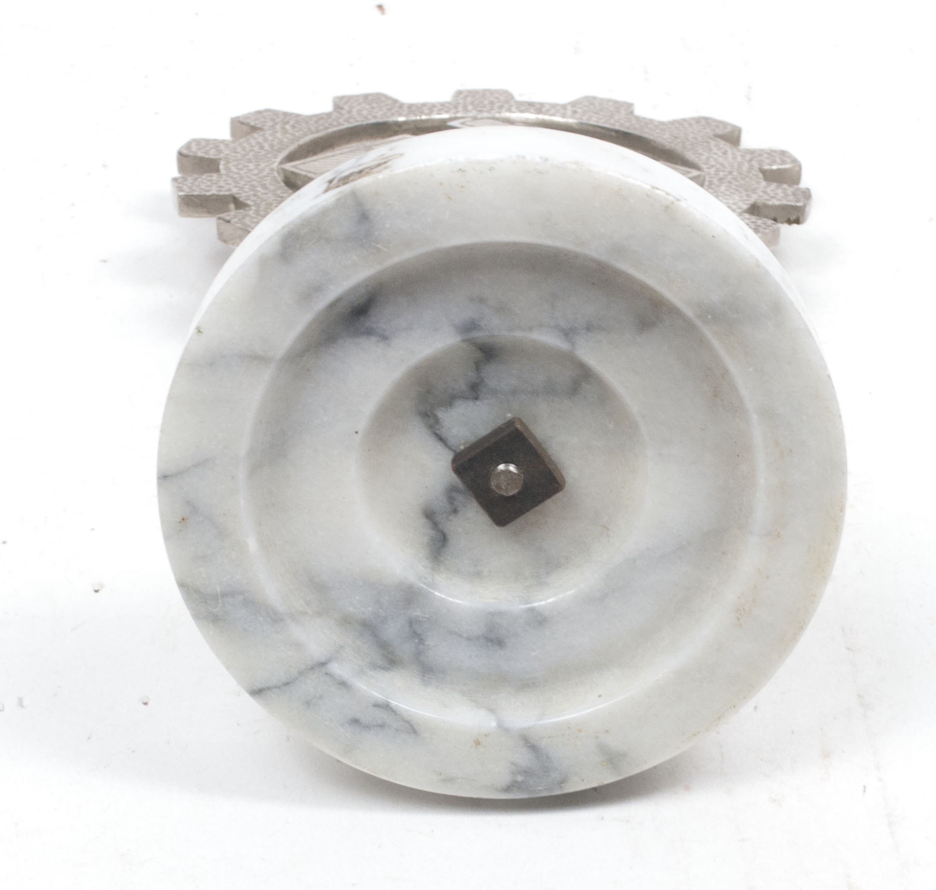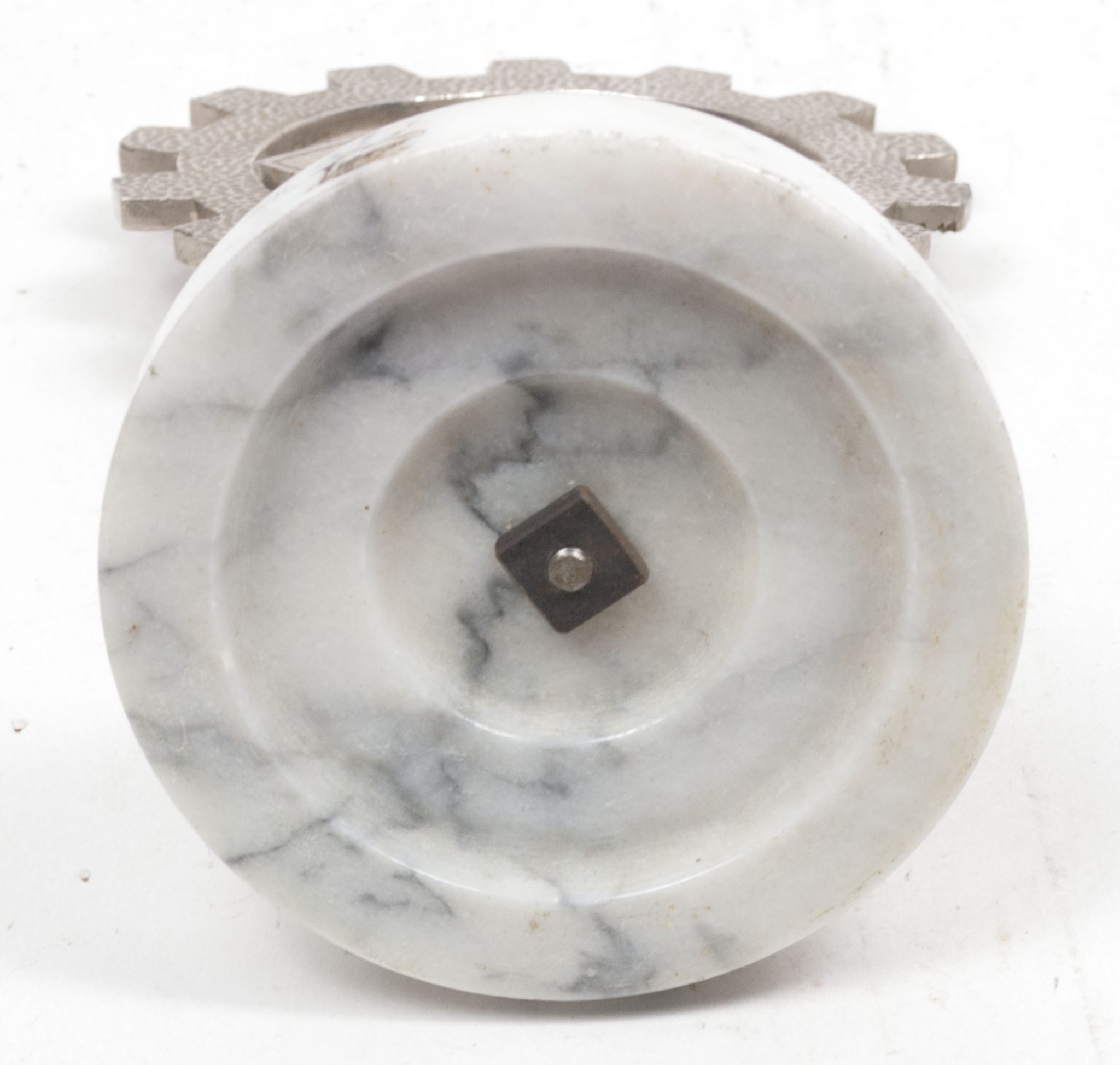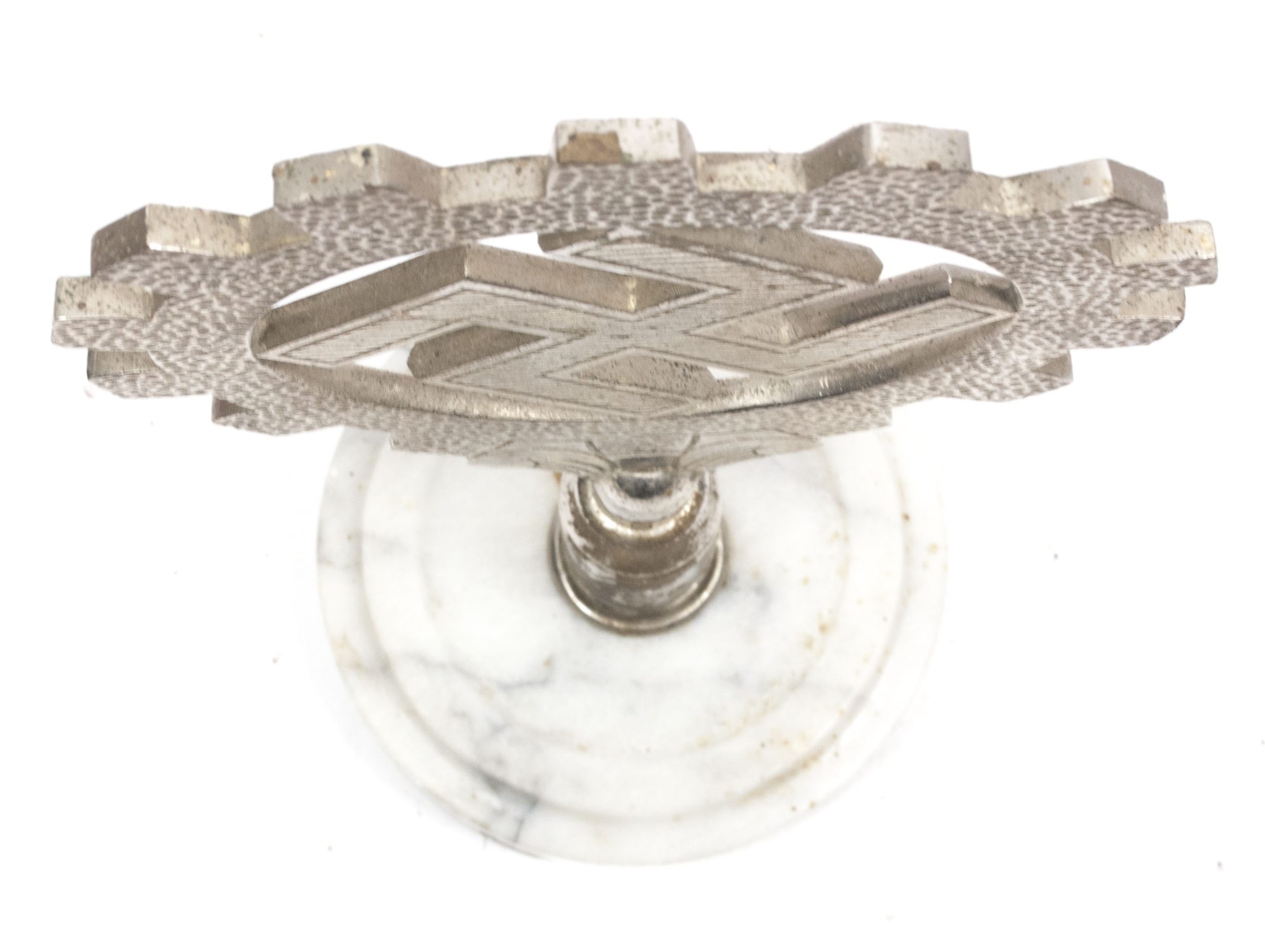 On round white marble foot. The foot is probably added postwar to make it into a stand.