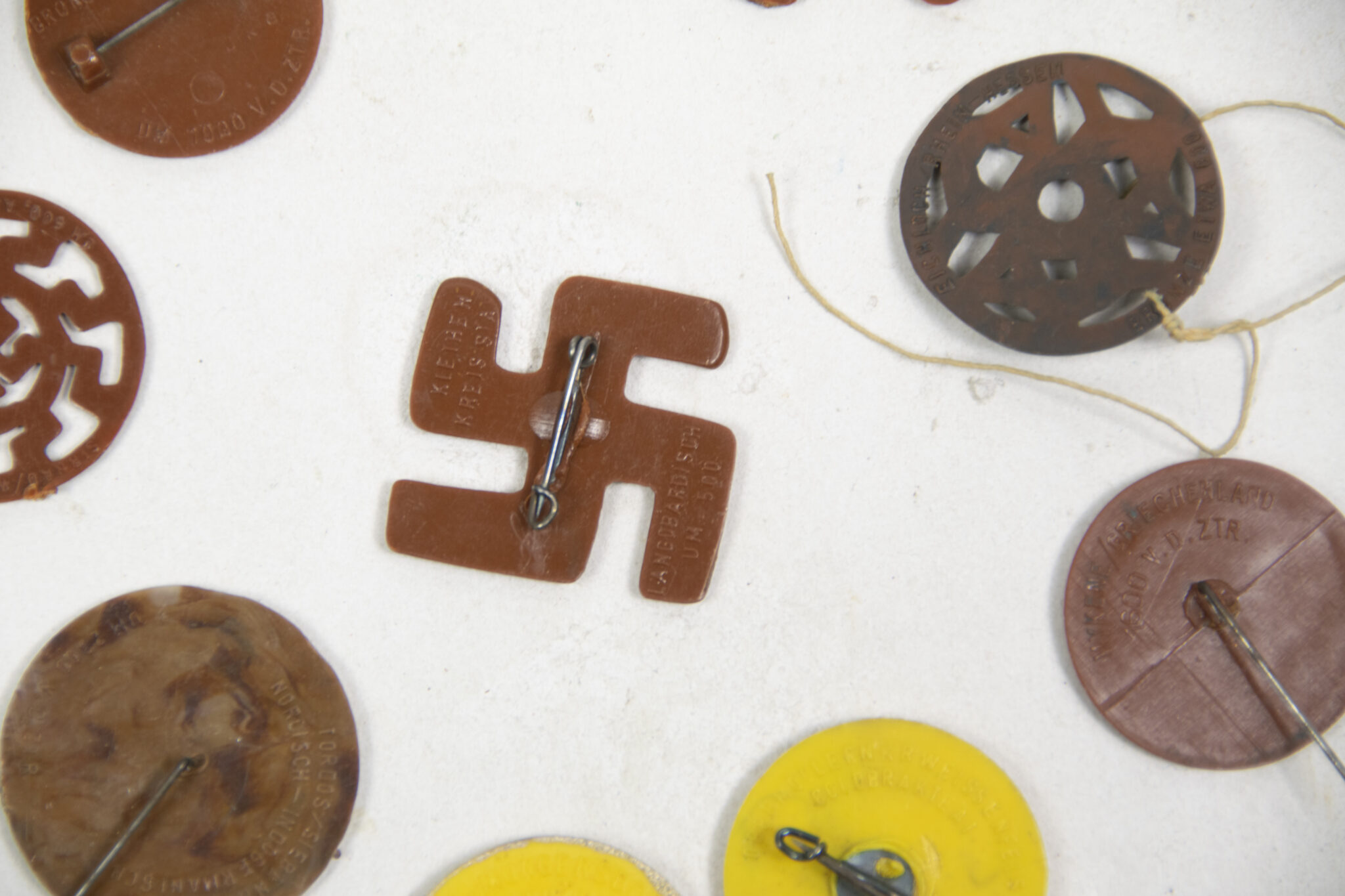 Deutsche Kulturvölker complete series 10 badges ancient German sunwheel / swastika designs