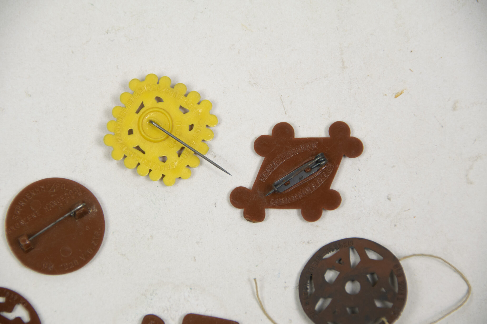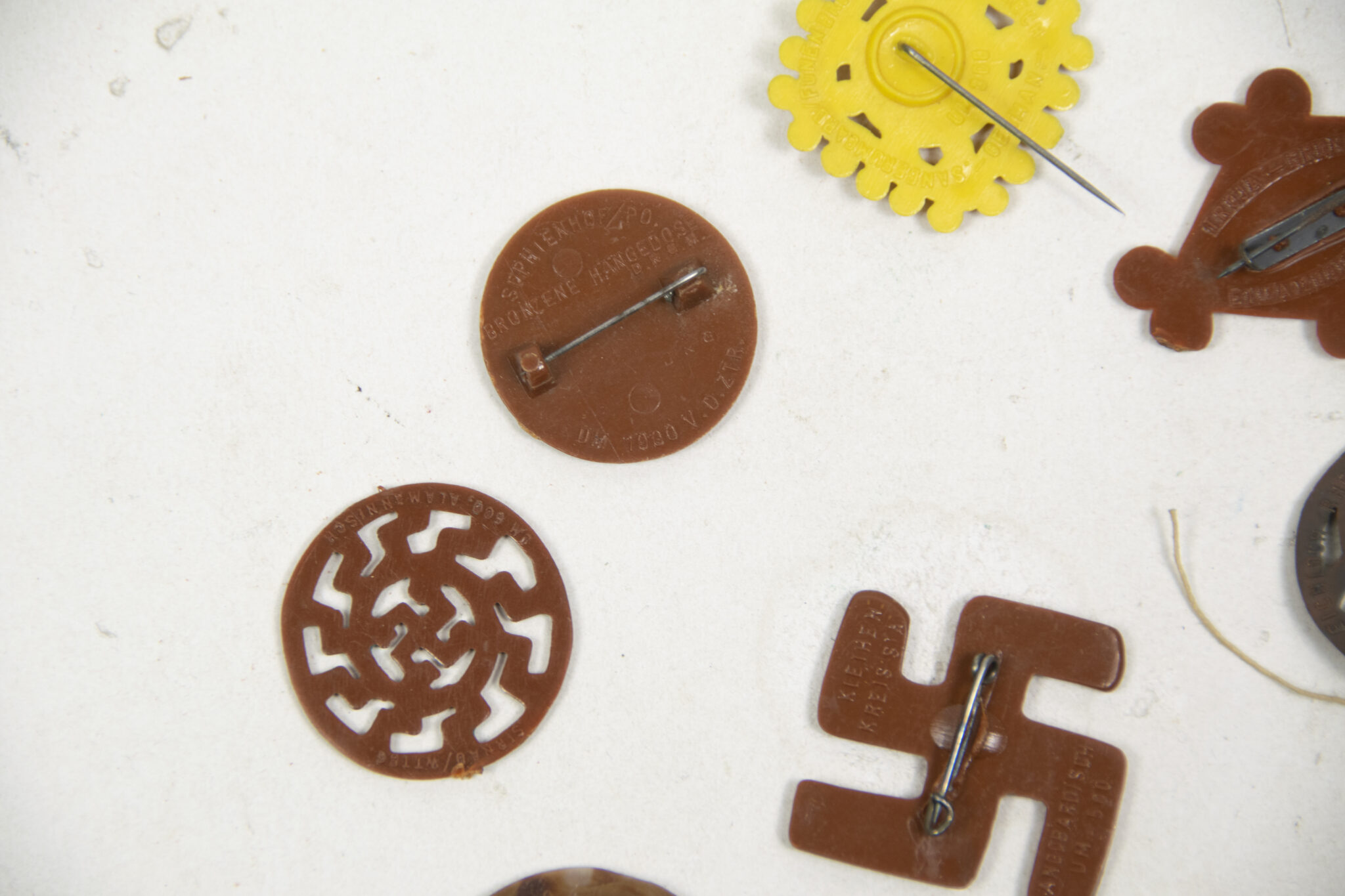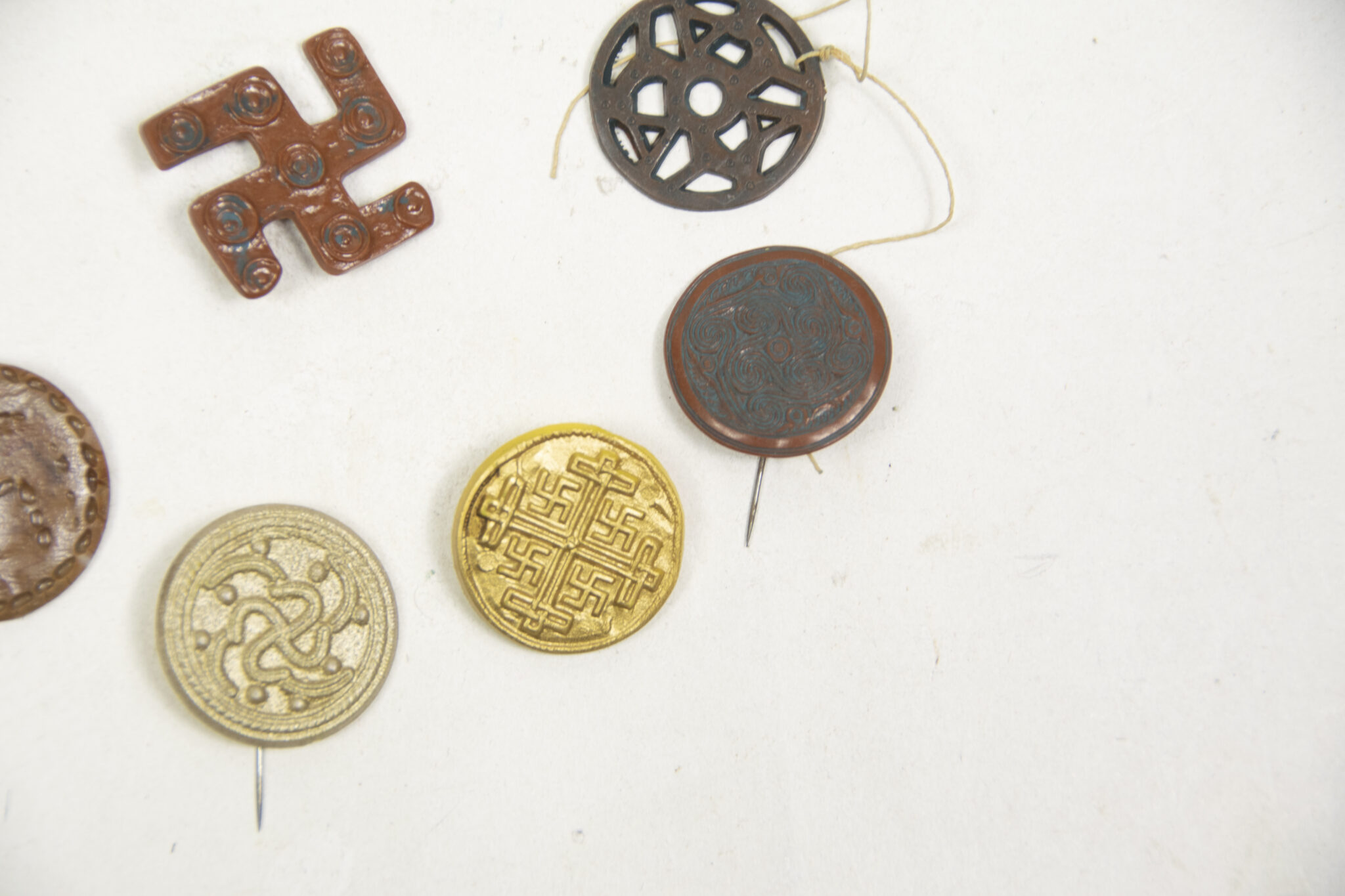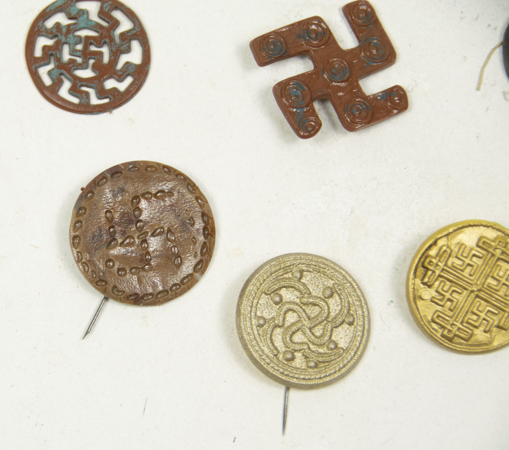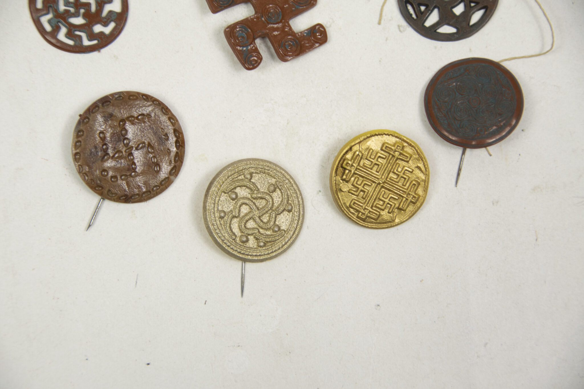 Category: WW2 German Badges and Memberpins Tag: Deutsche Kulturvölker complete series 10 badges ancient German sunwheel swastika designs