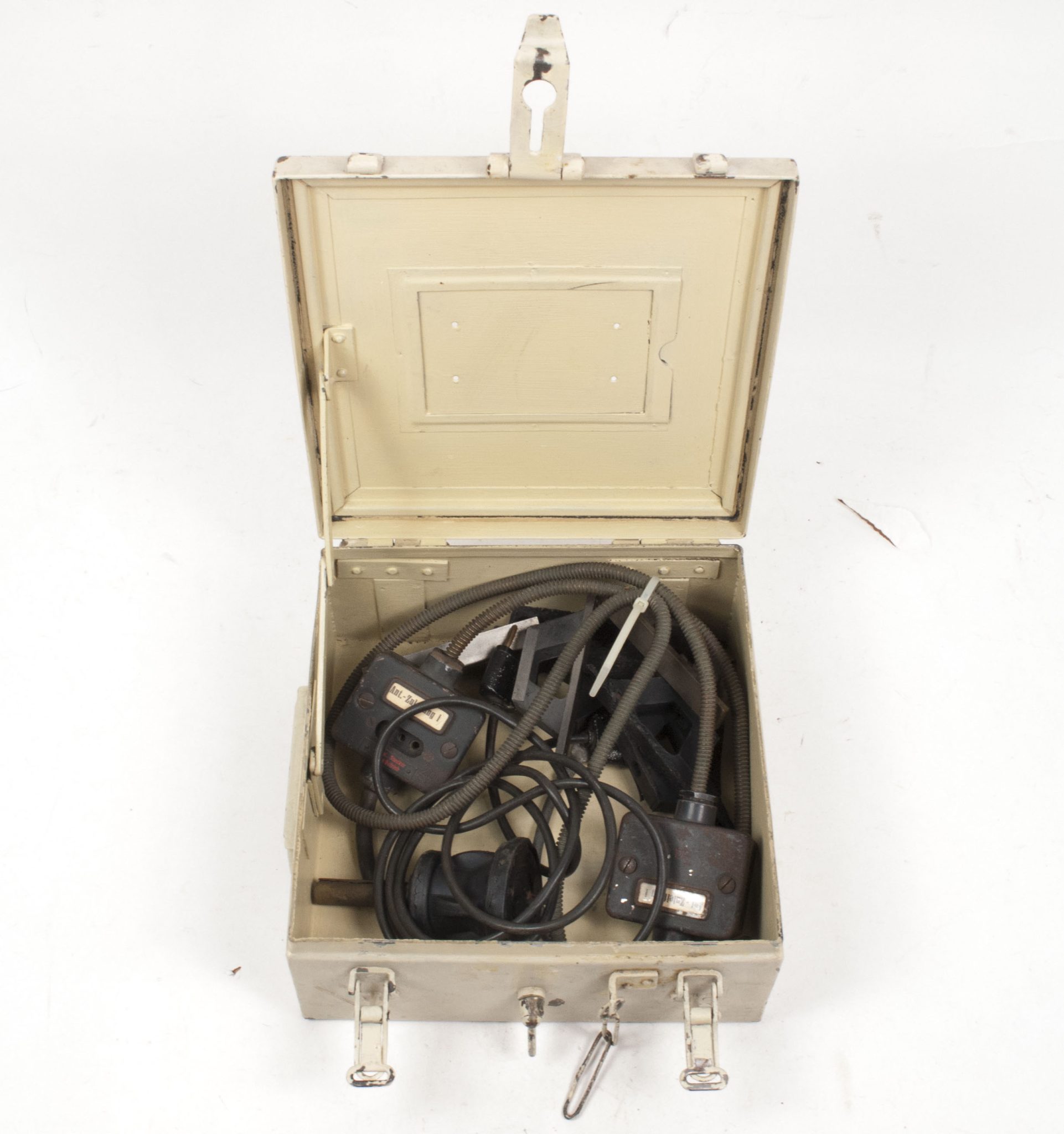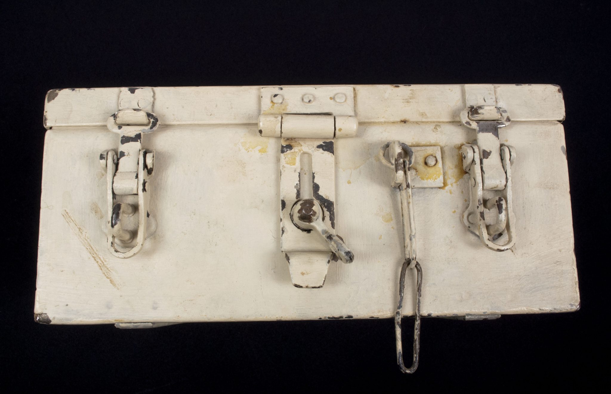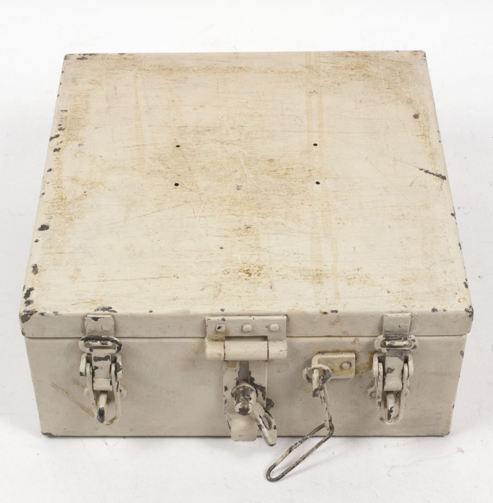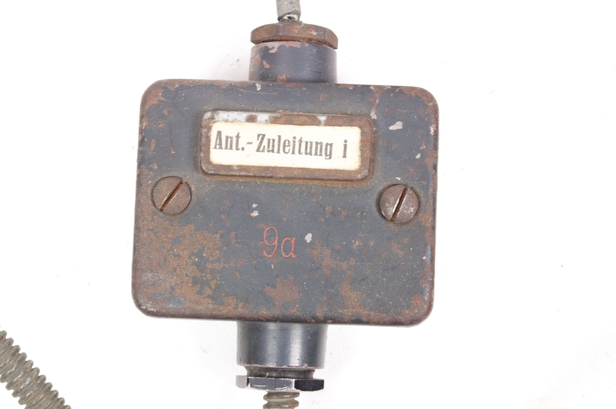 This is a very rare metallic box which was used on Deutscher Panzerfahrzeugen [Panzer Vehicles] containing the so called “Antennen-Zuleitung“, which means the in German Panzer vehicles used cable system between the radio and antenna.