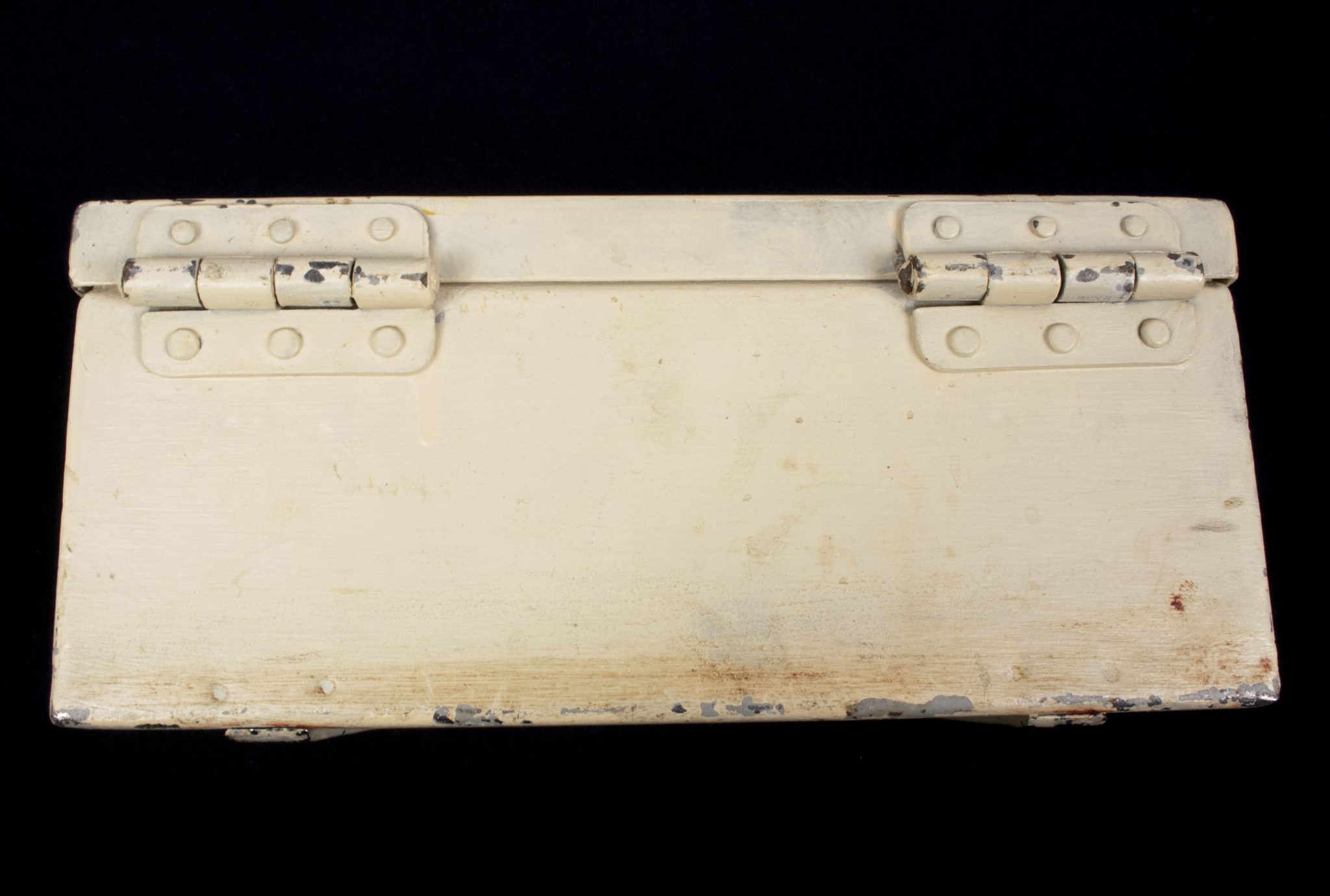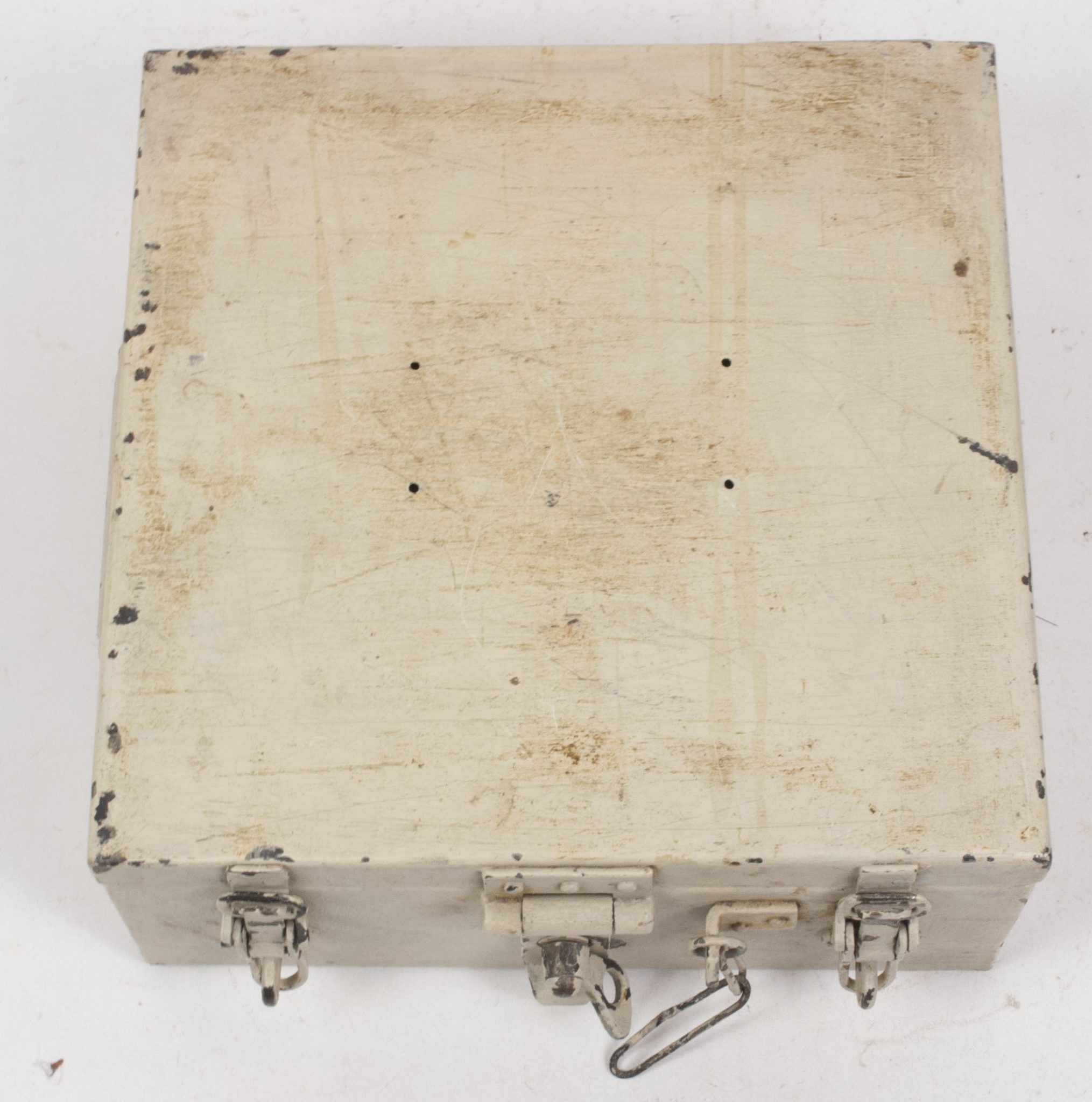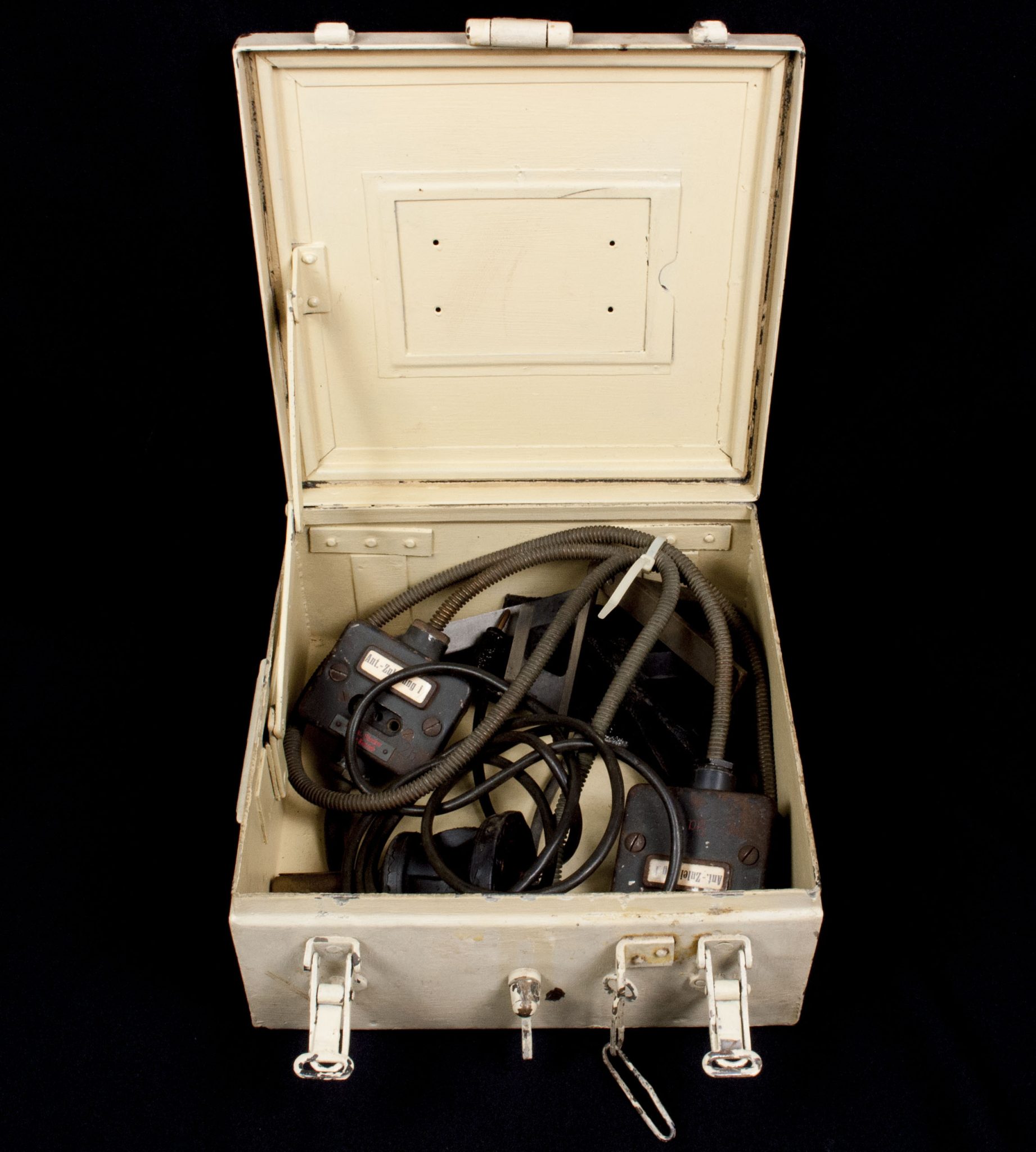 This is a very rare metallic box which was used on Deutscher Panzerfahrzeugen [Panzer Vehicles] containing the so called “Antennen-Zuleitung“, which means the in German Panzer vehicles used cable system between the radio and antenna.