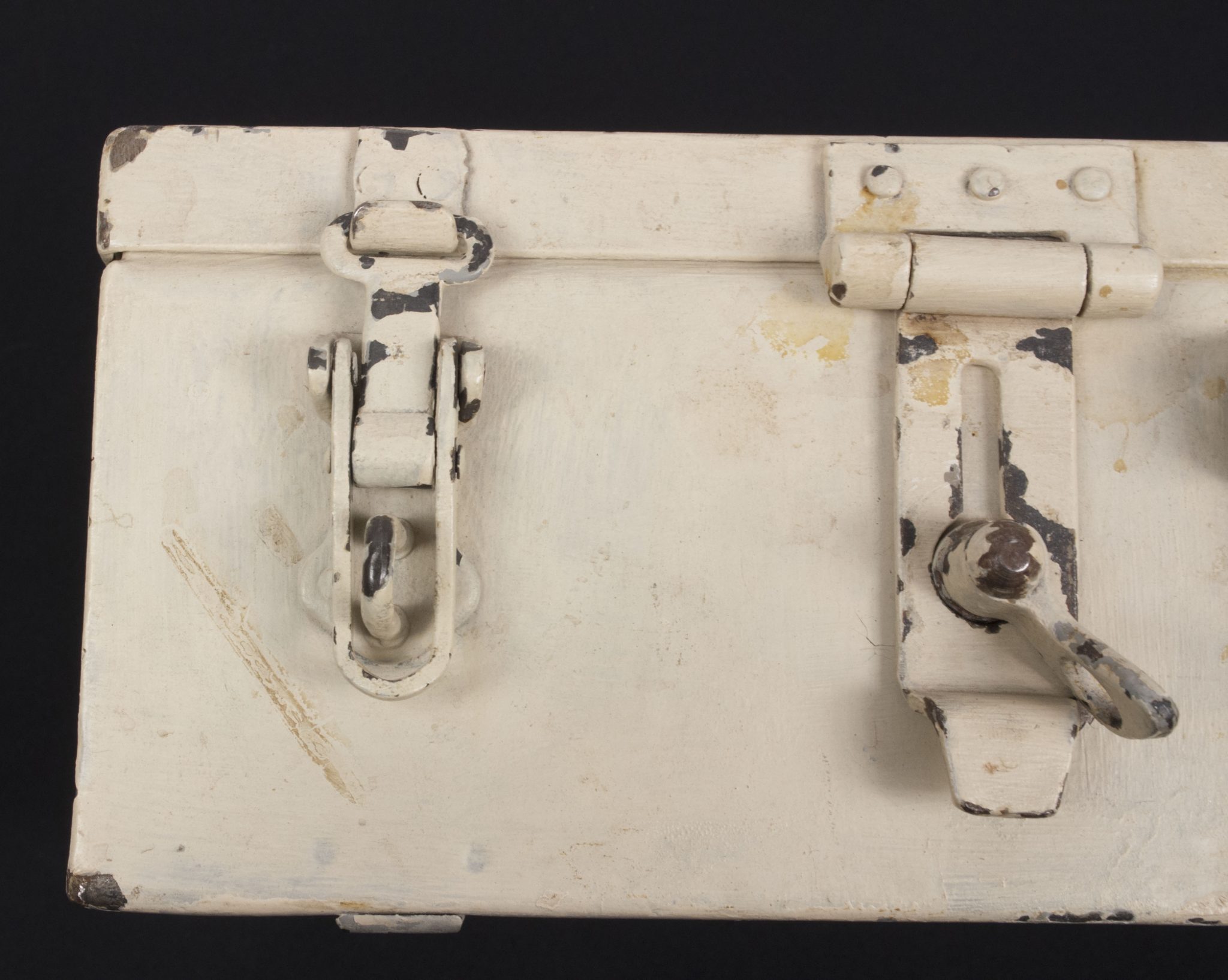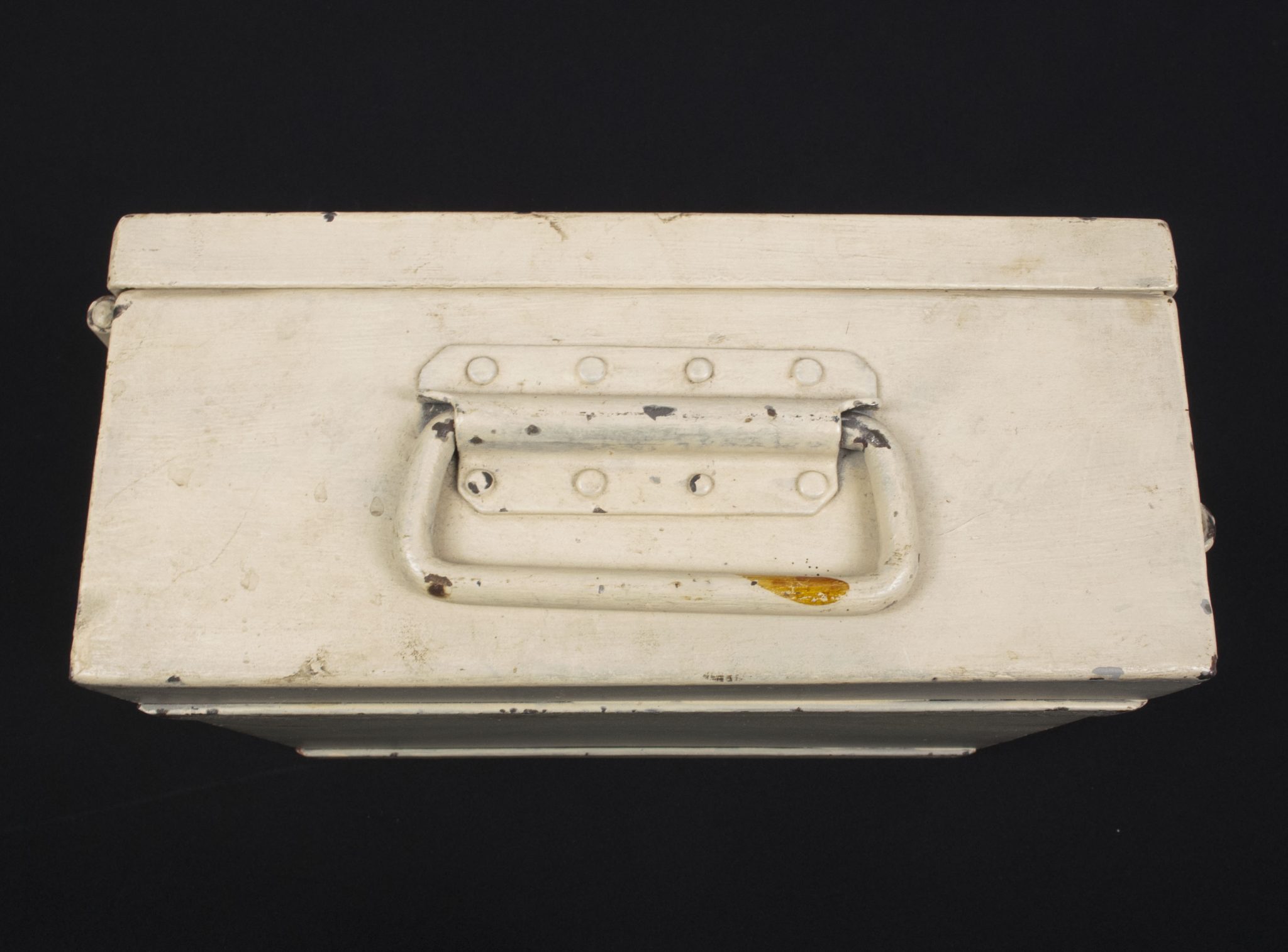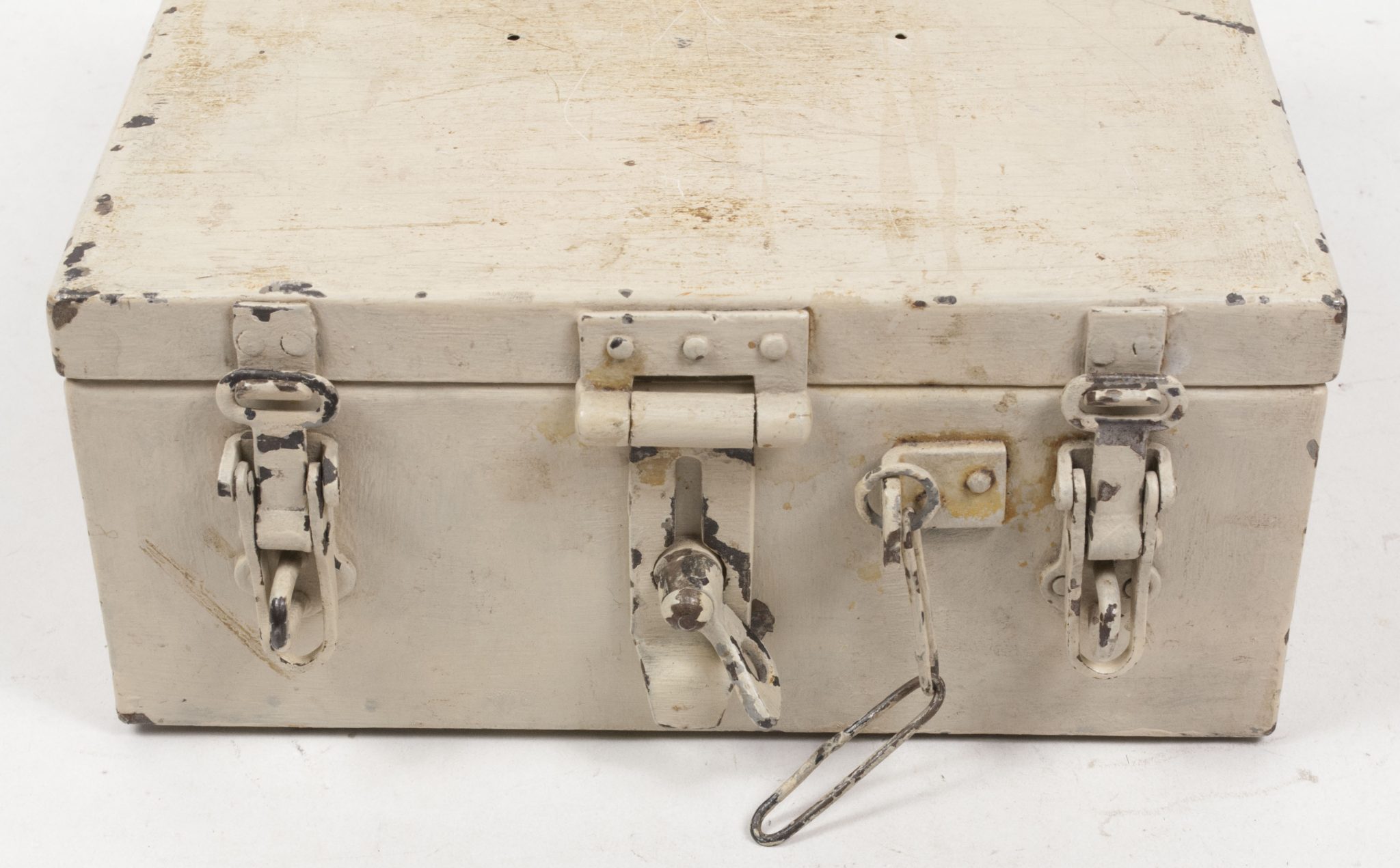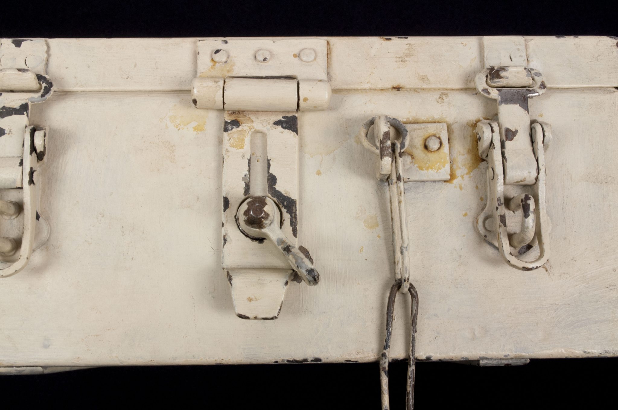 This is a very rare metallic box which was used on Deutscher Panzerfahrzeugen [Panzer Vehicles] containing the so called “Antennen-Zuleitung“, which means the in German Panzer vehicles used cable system between the radio and antenna.