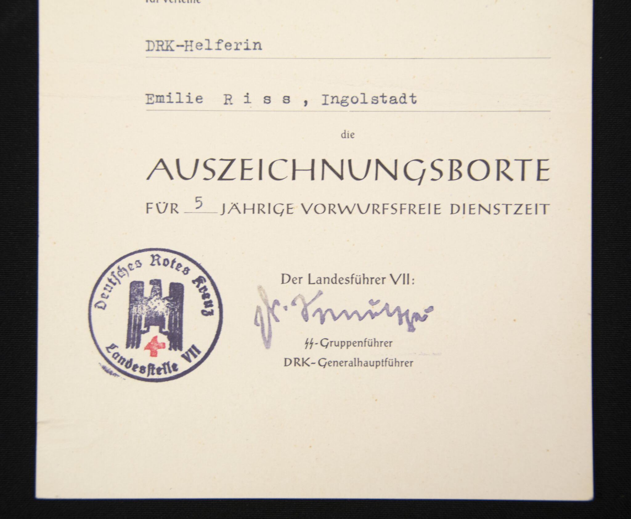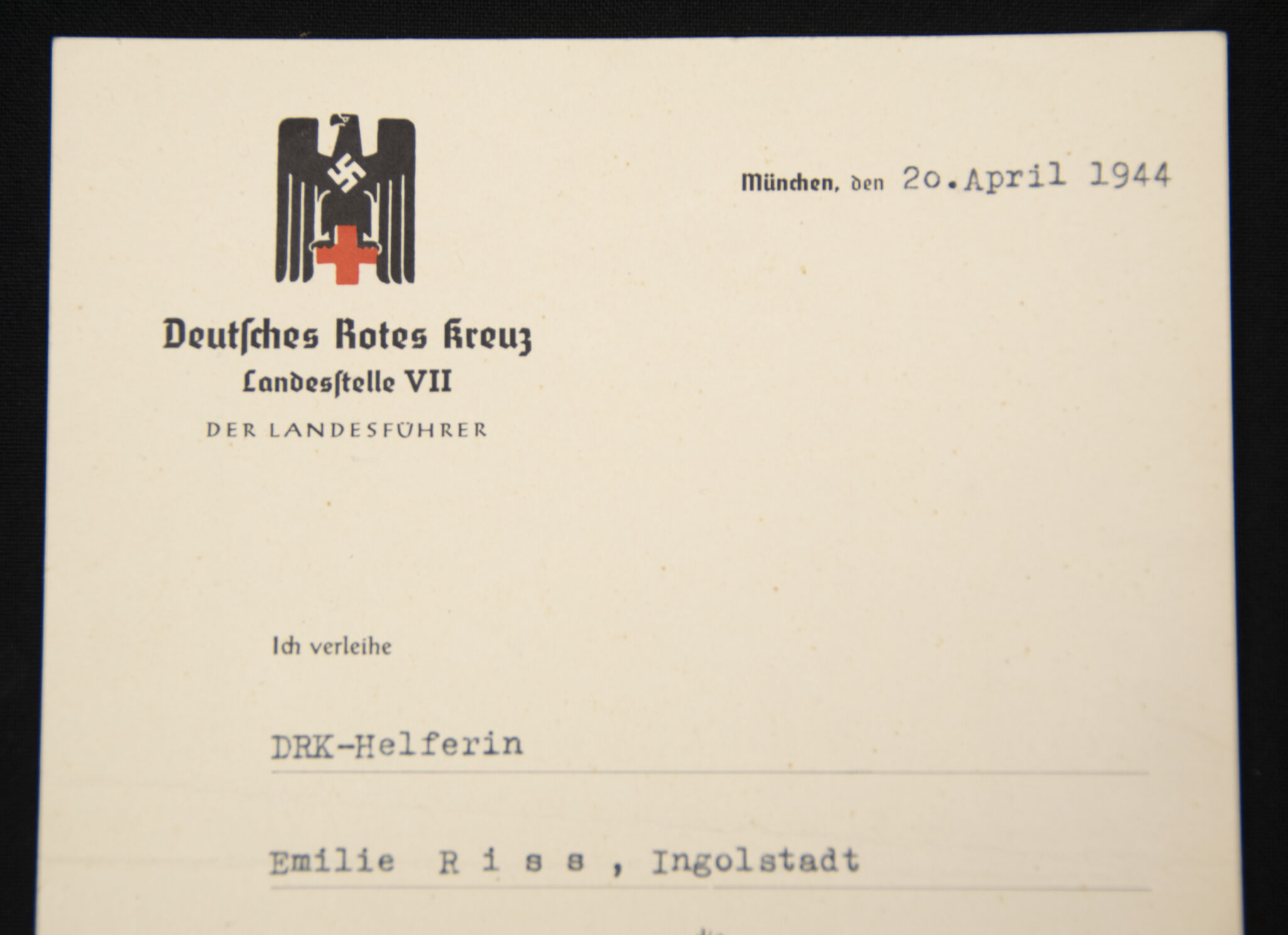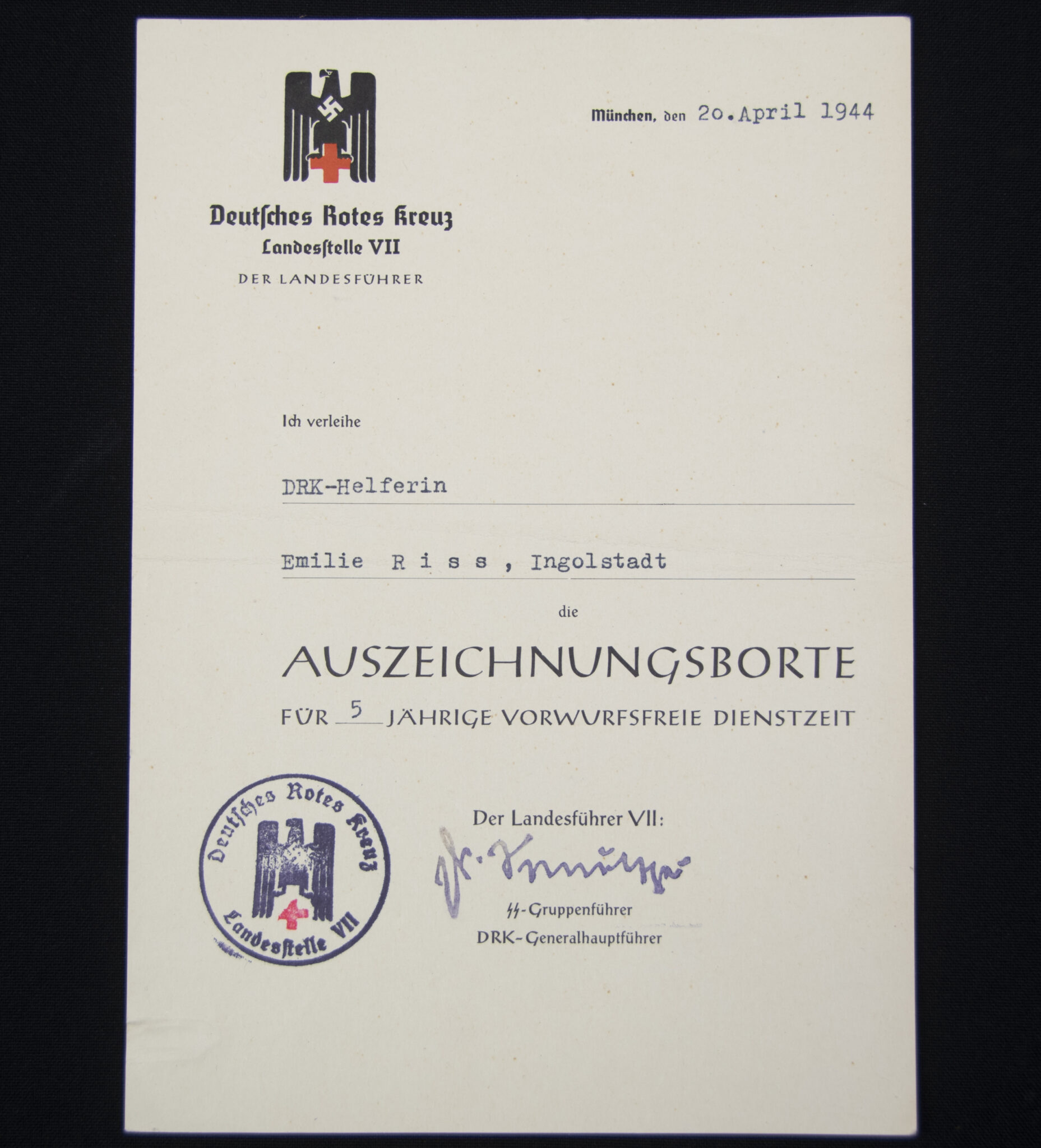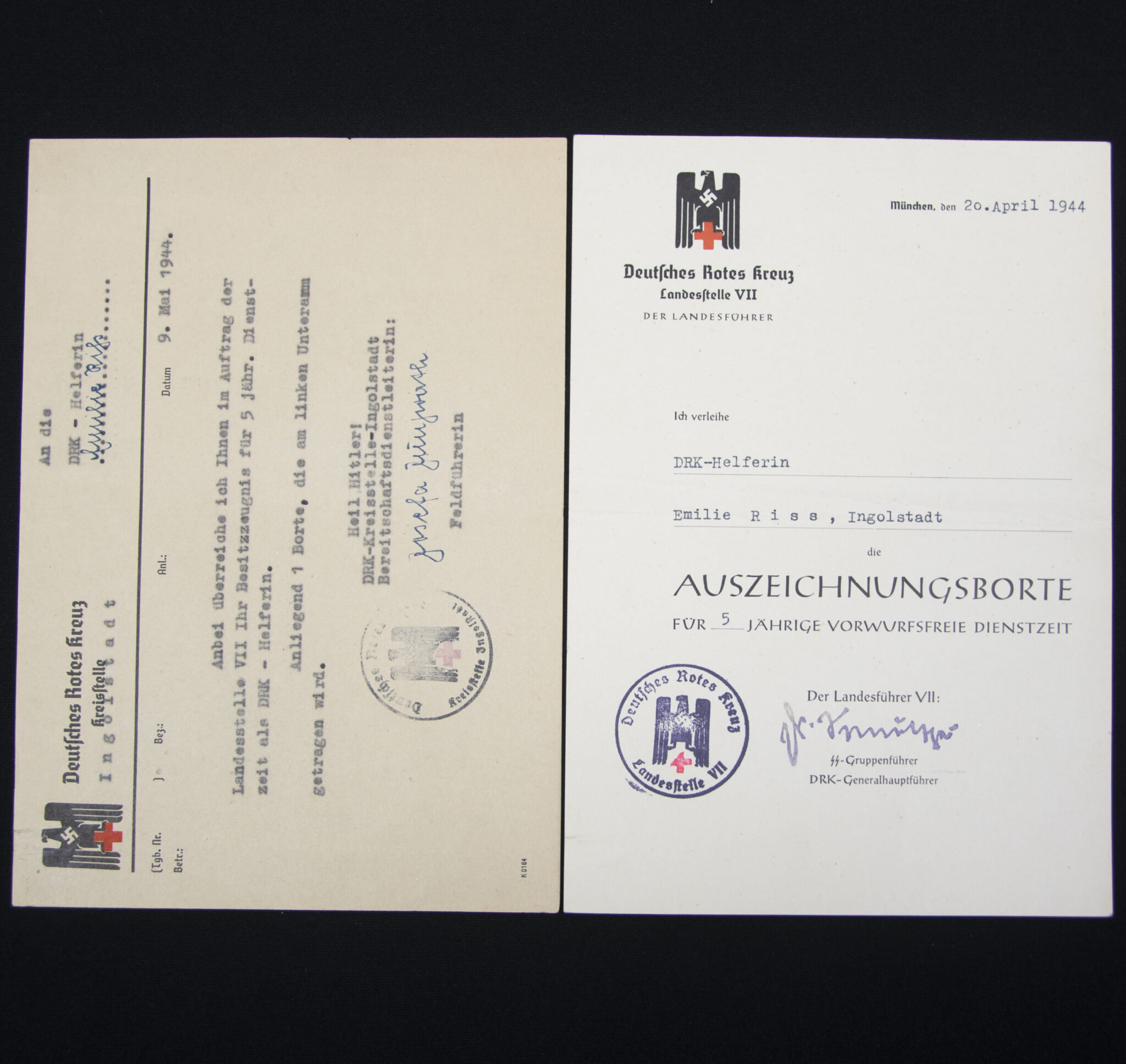 Two documents from the same DRK-Helferin Emilie Riss from Ingolstadt.
