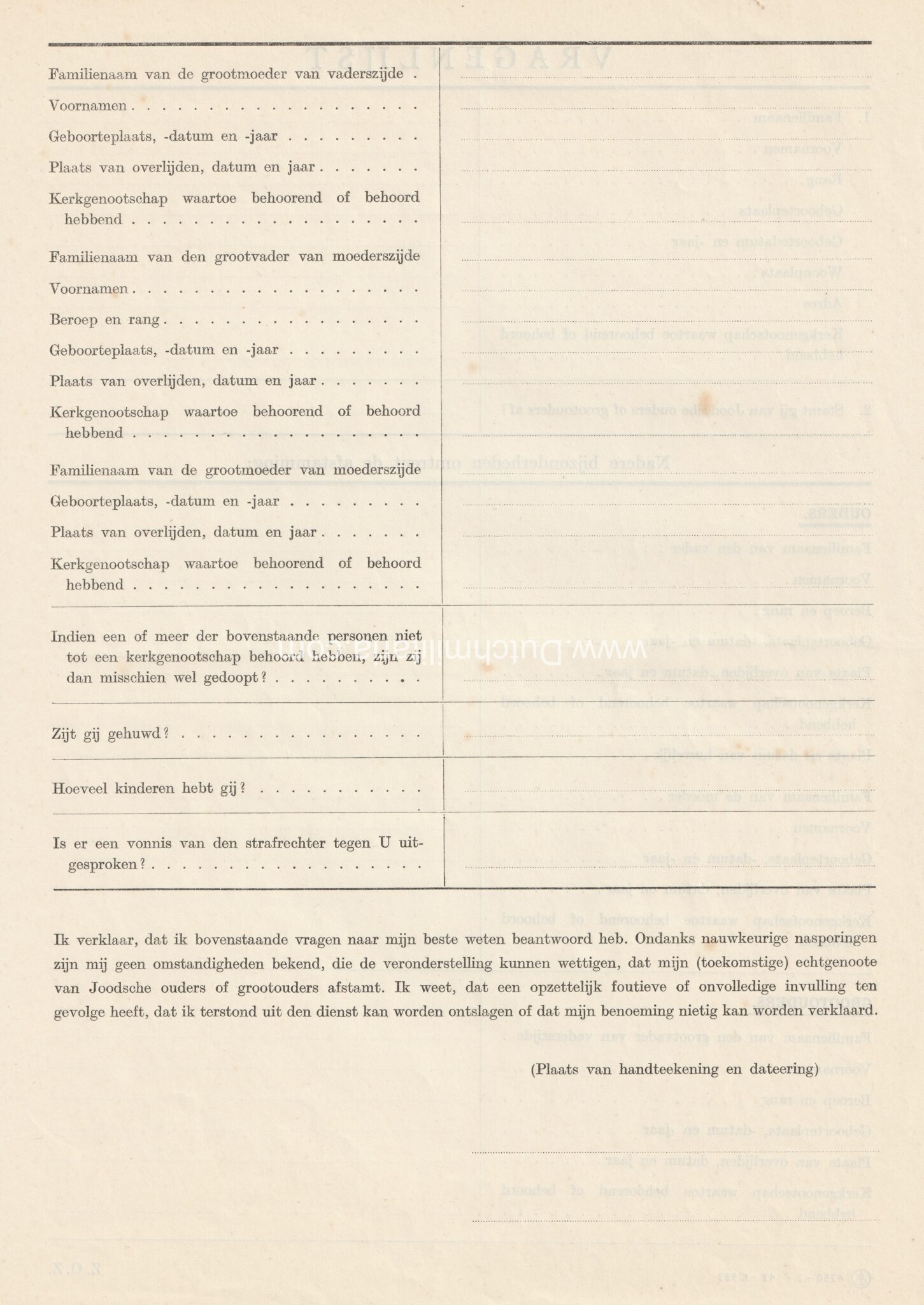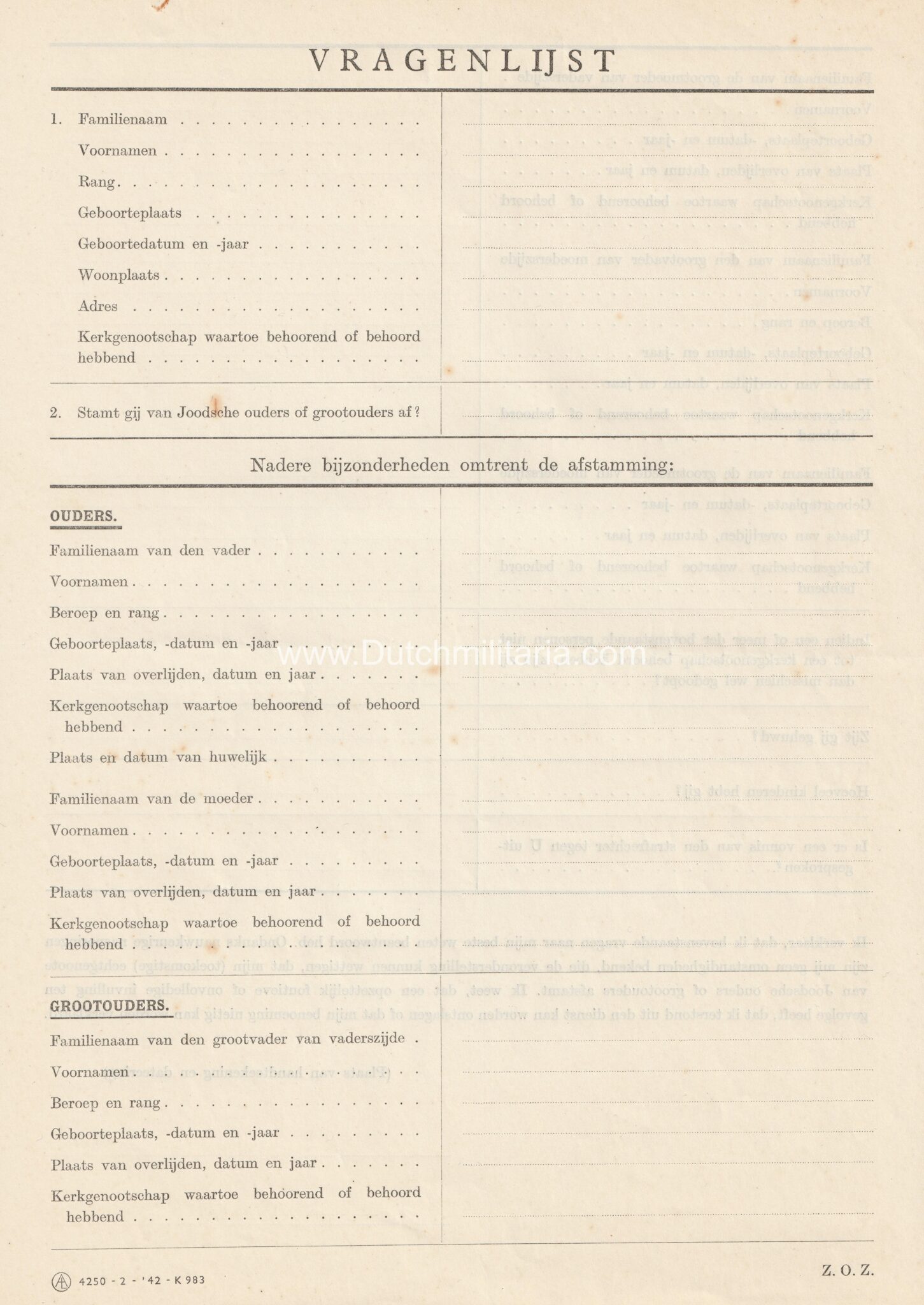 Category: Passes, Documents and Citations Tag: (Document) Jewish descent questionnaire - rare