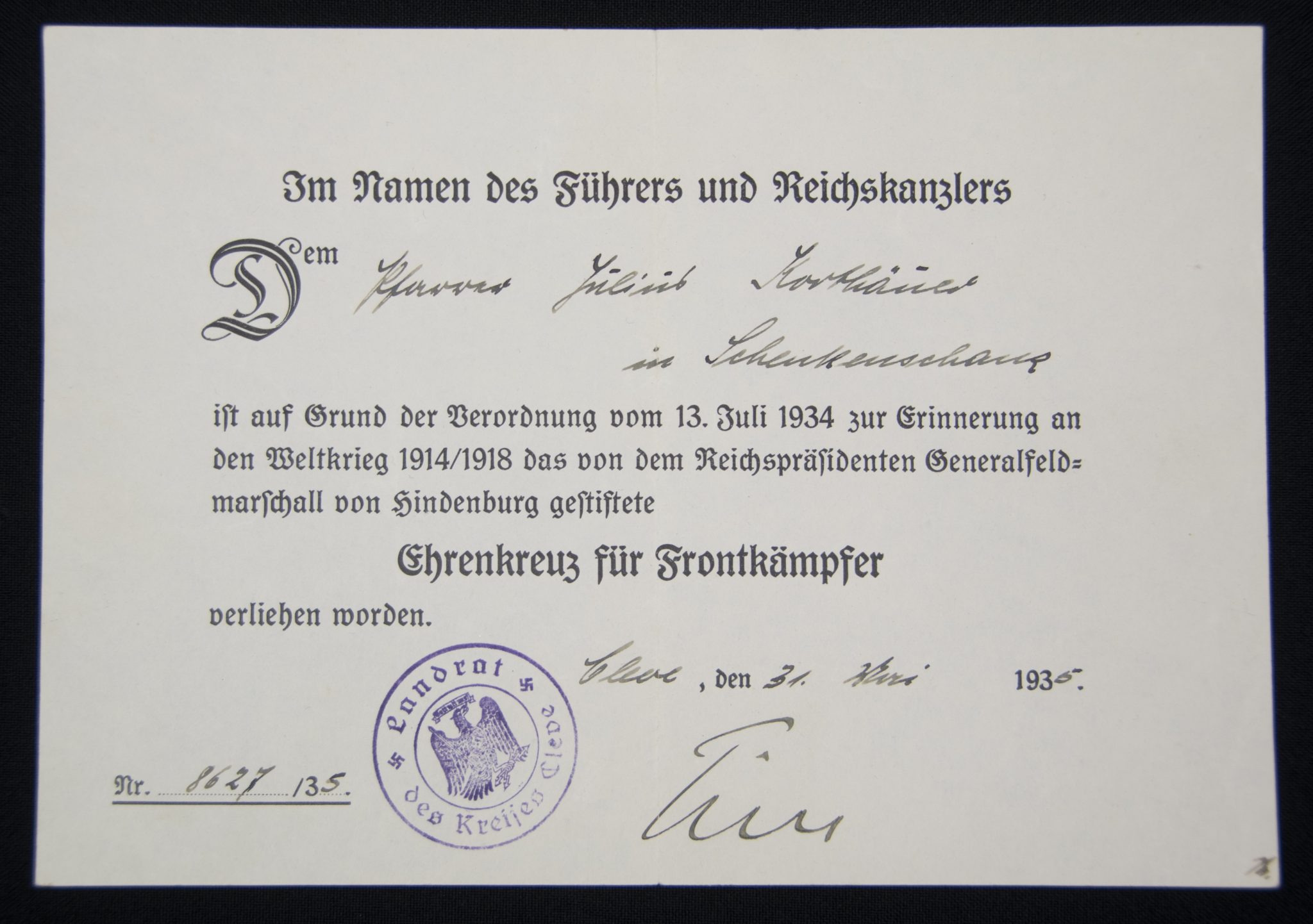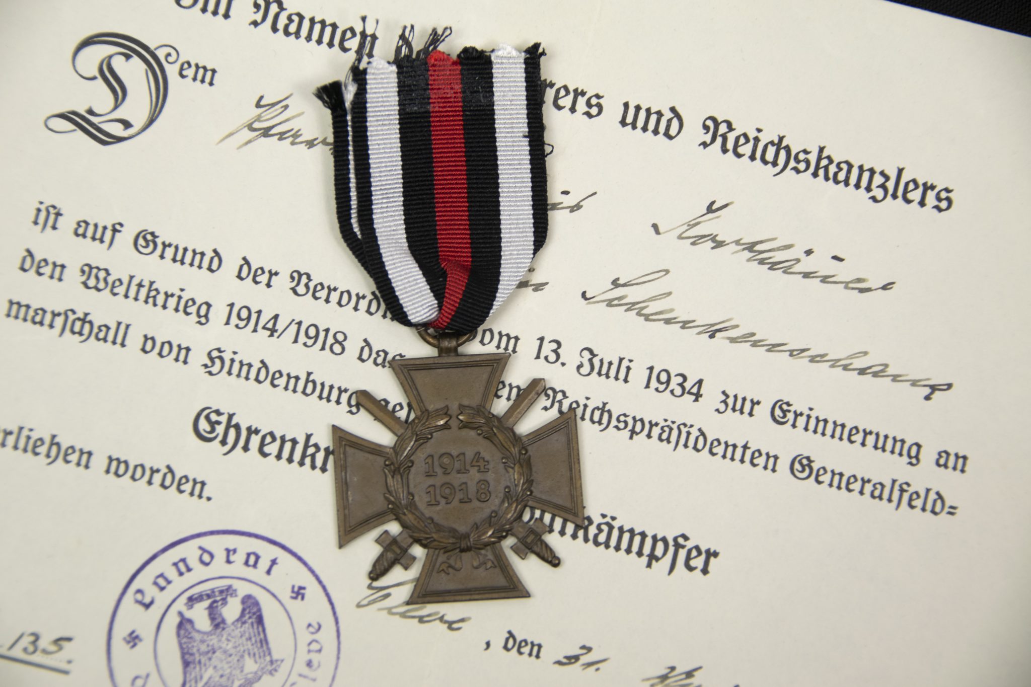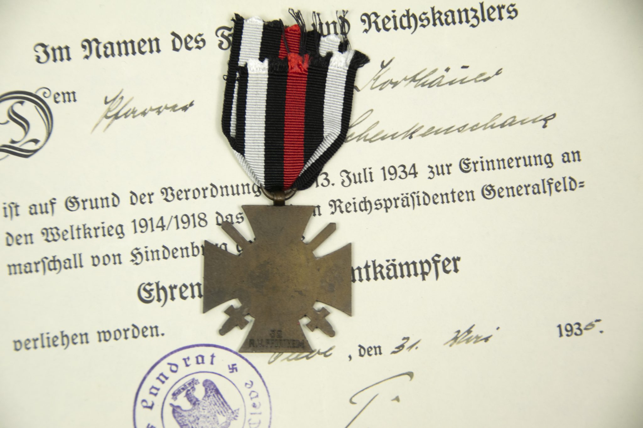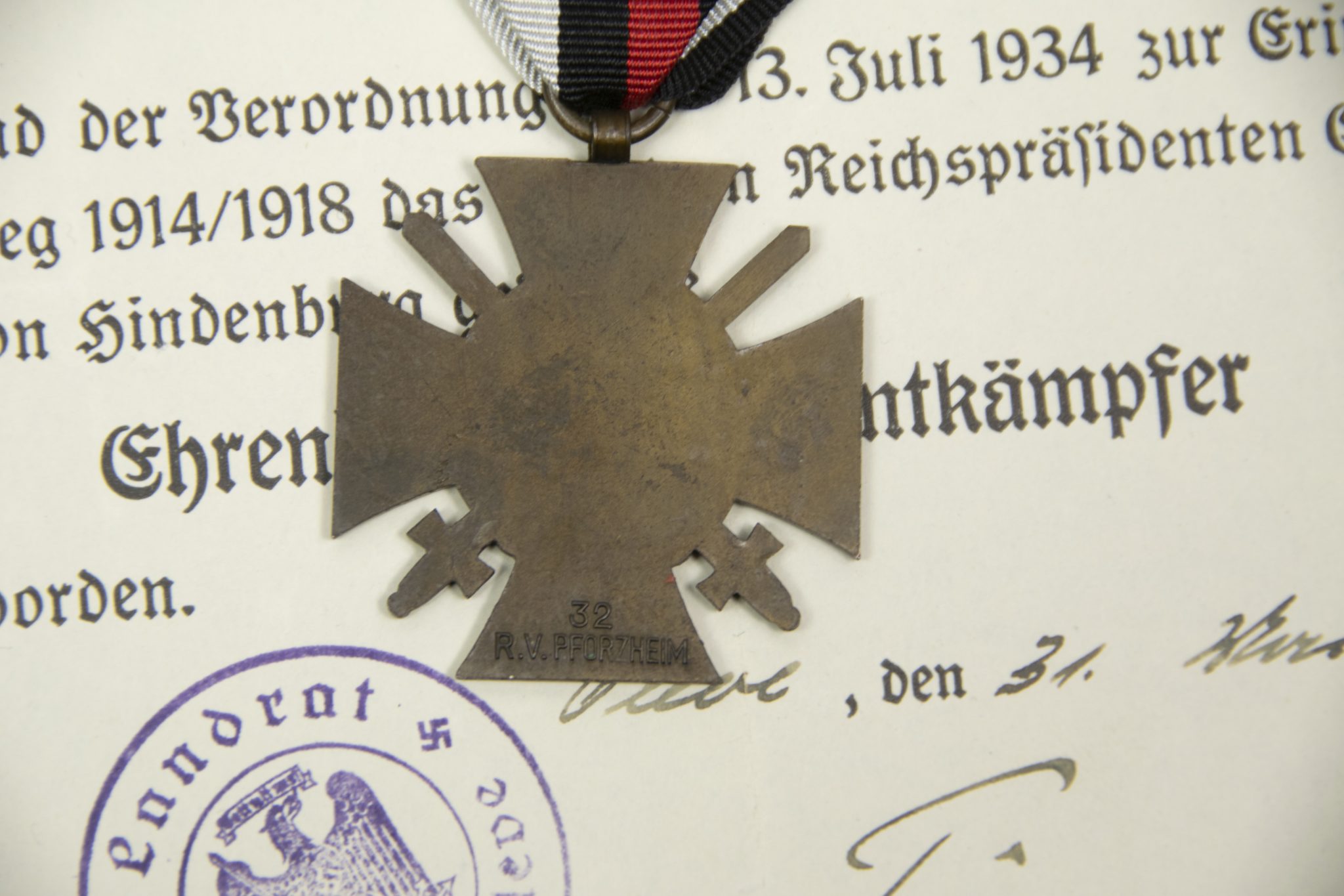 Ehrenkreuz für Frontkämpfer + citation