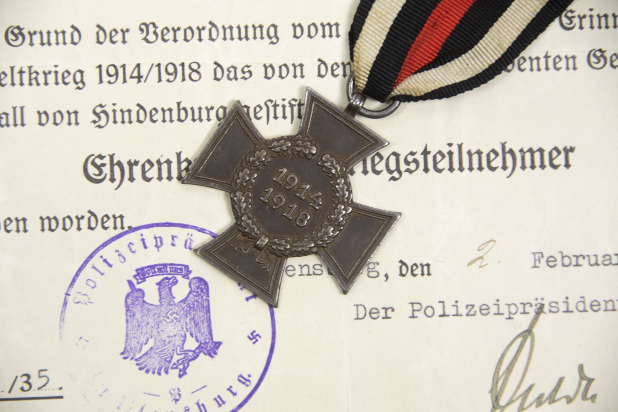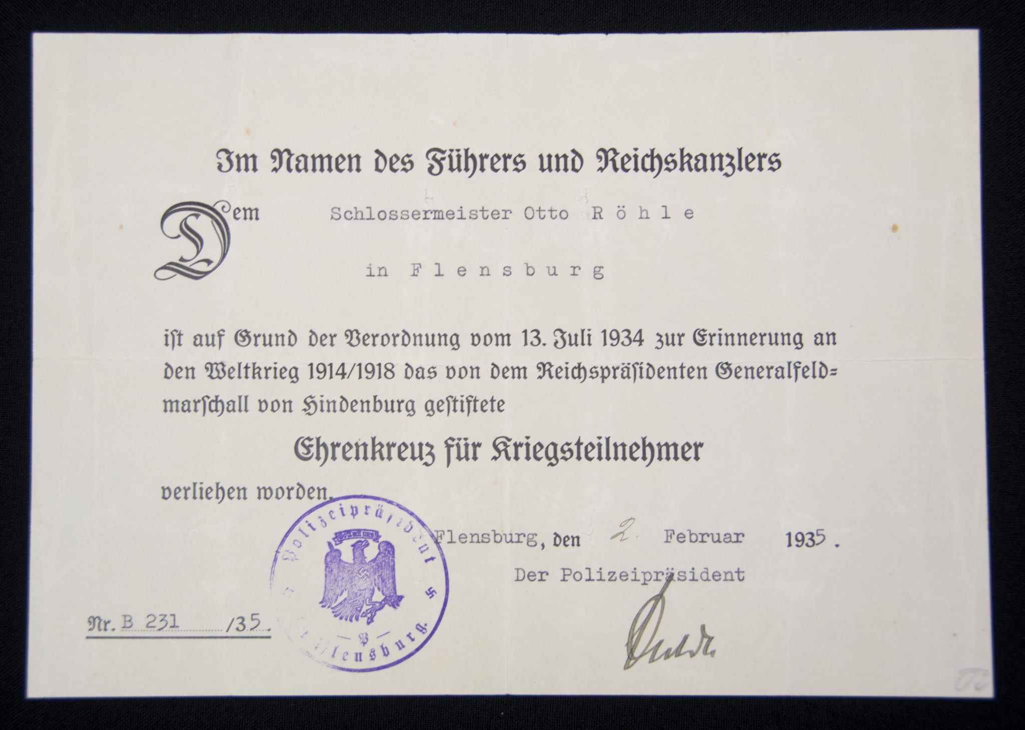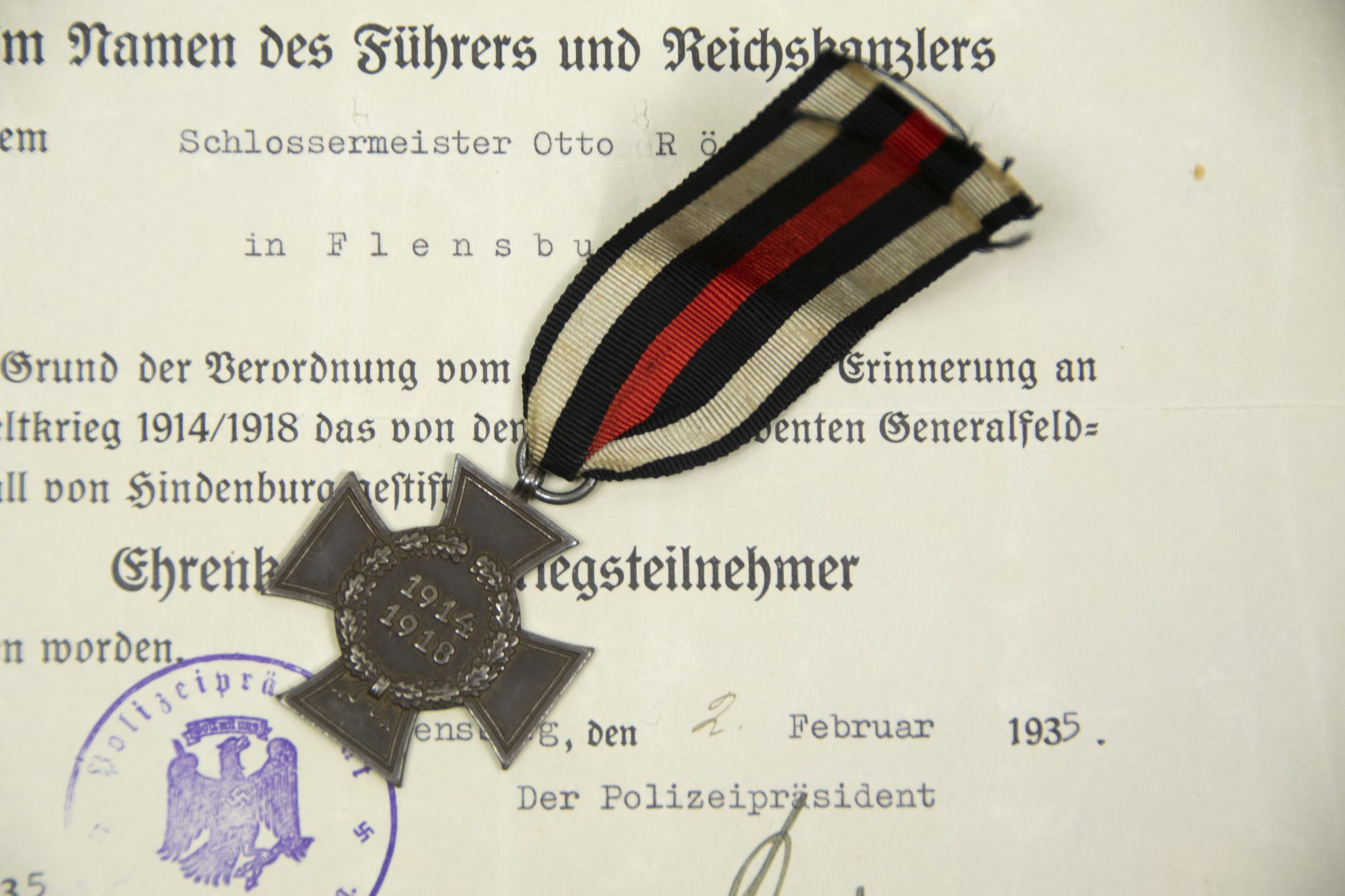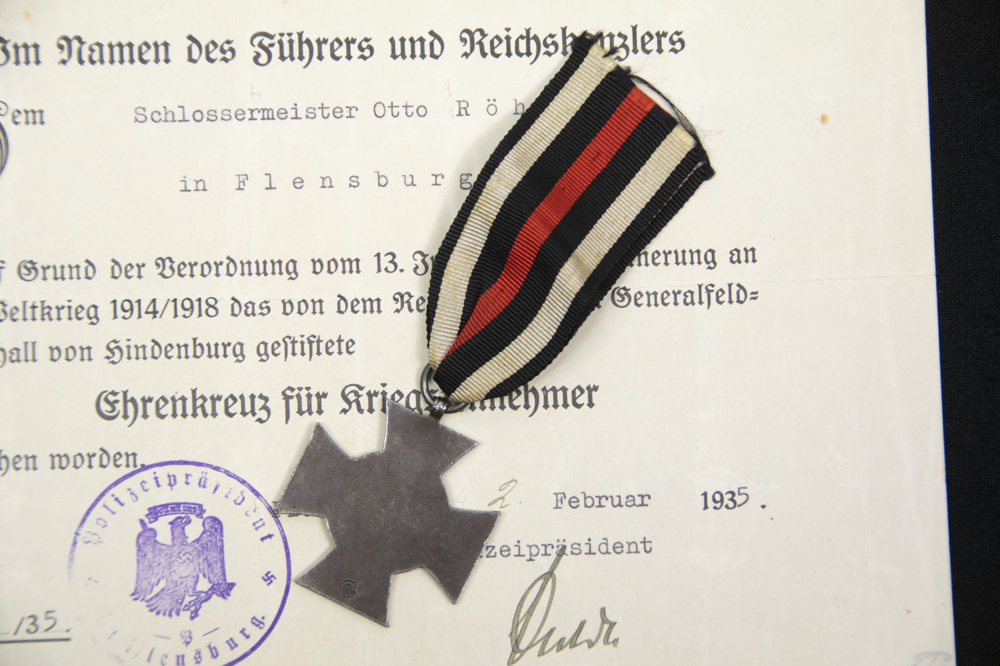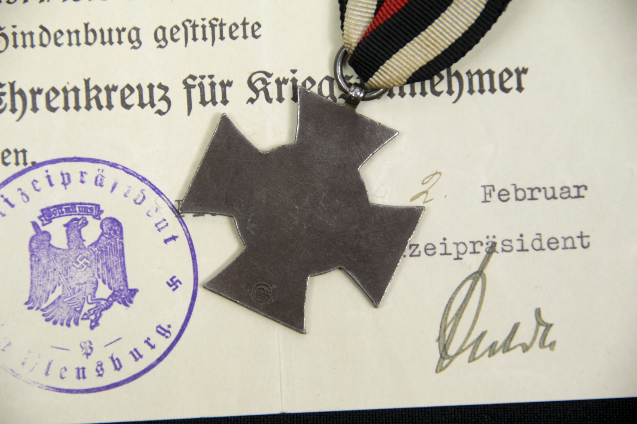 Ehrenkreuz für Nichtkämpfer + citation (Flensburg).