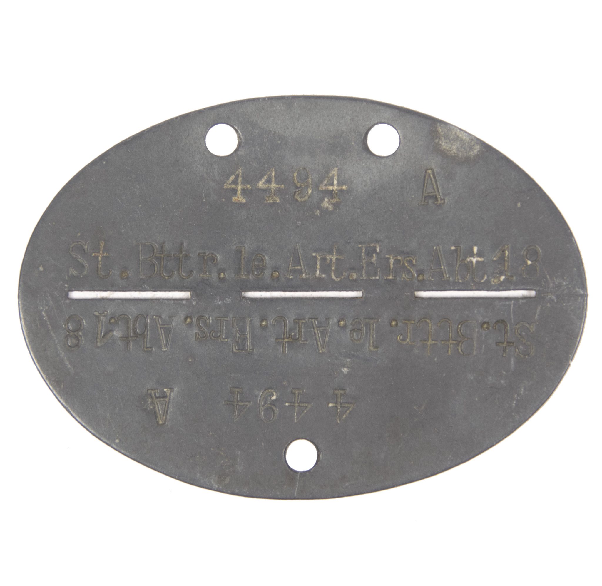 Erkennungsmarke (EKM) St. Bttr. 1e.Art.Ers.Abt.18.