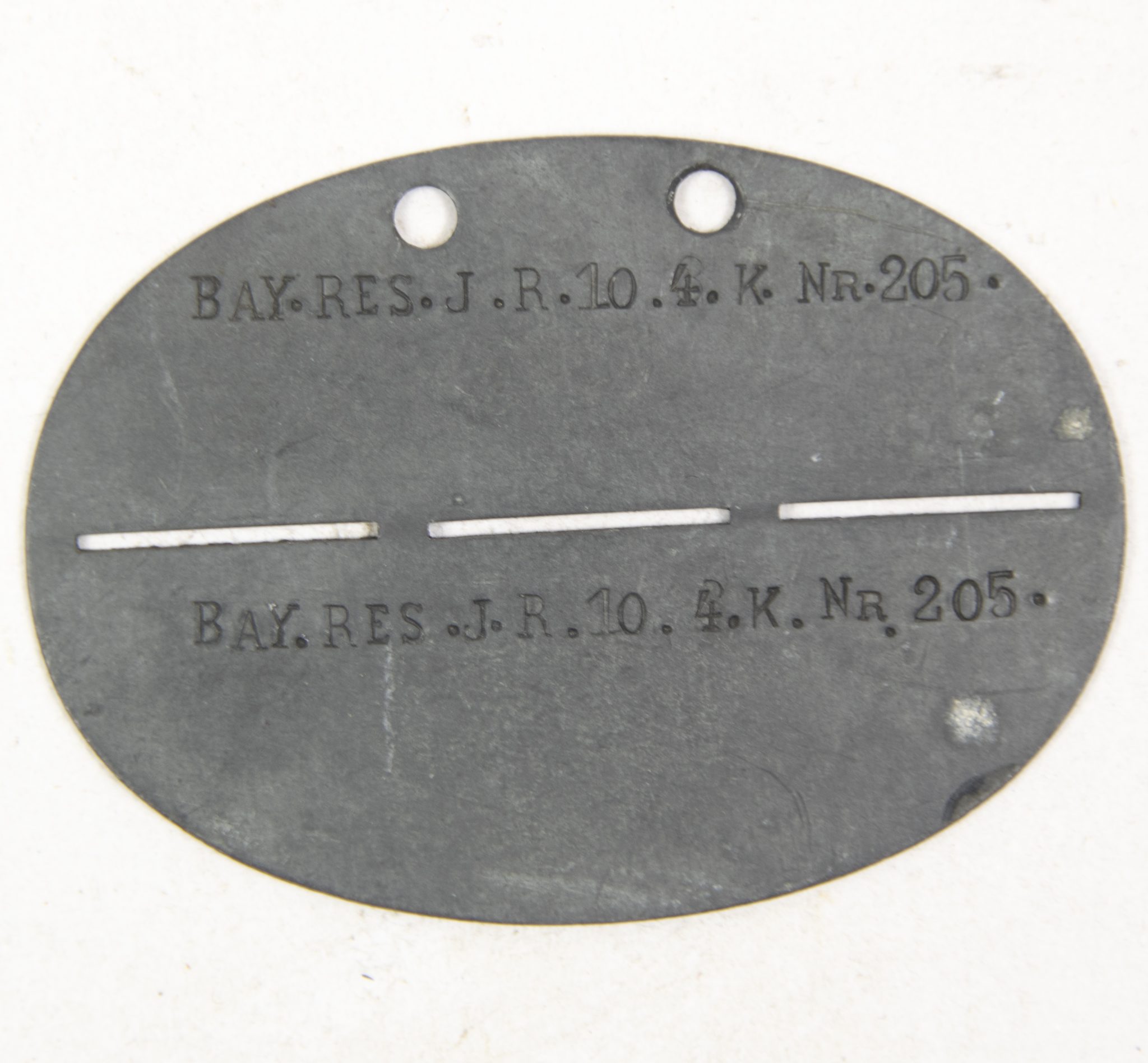 Erkennungsmarke (EKM) World War I Bay.Res.I.R.10.4.K.Nr.205.