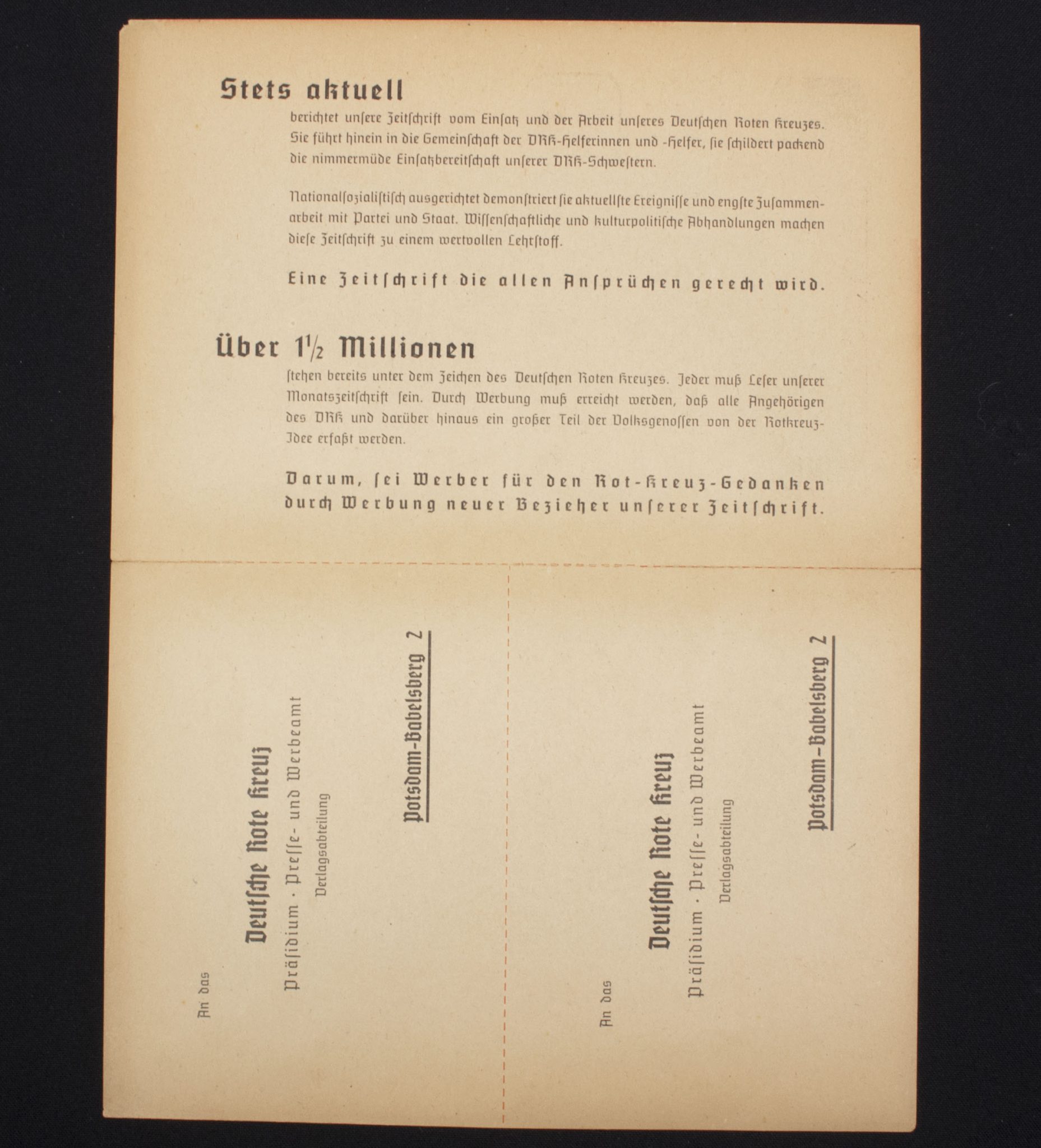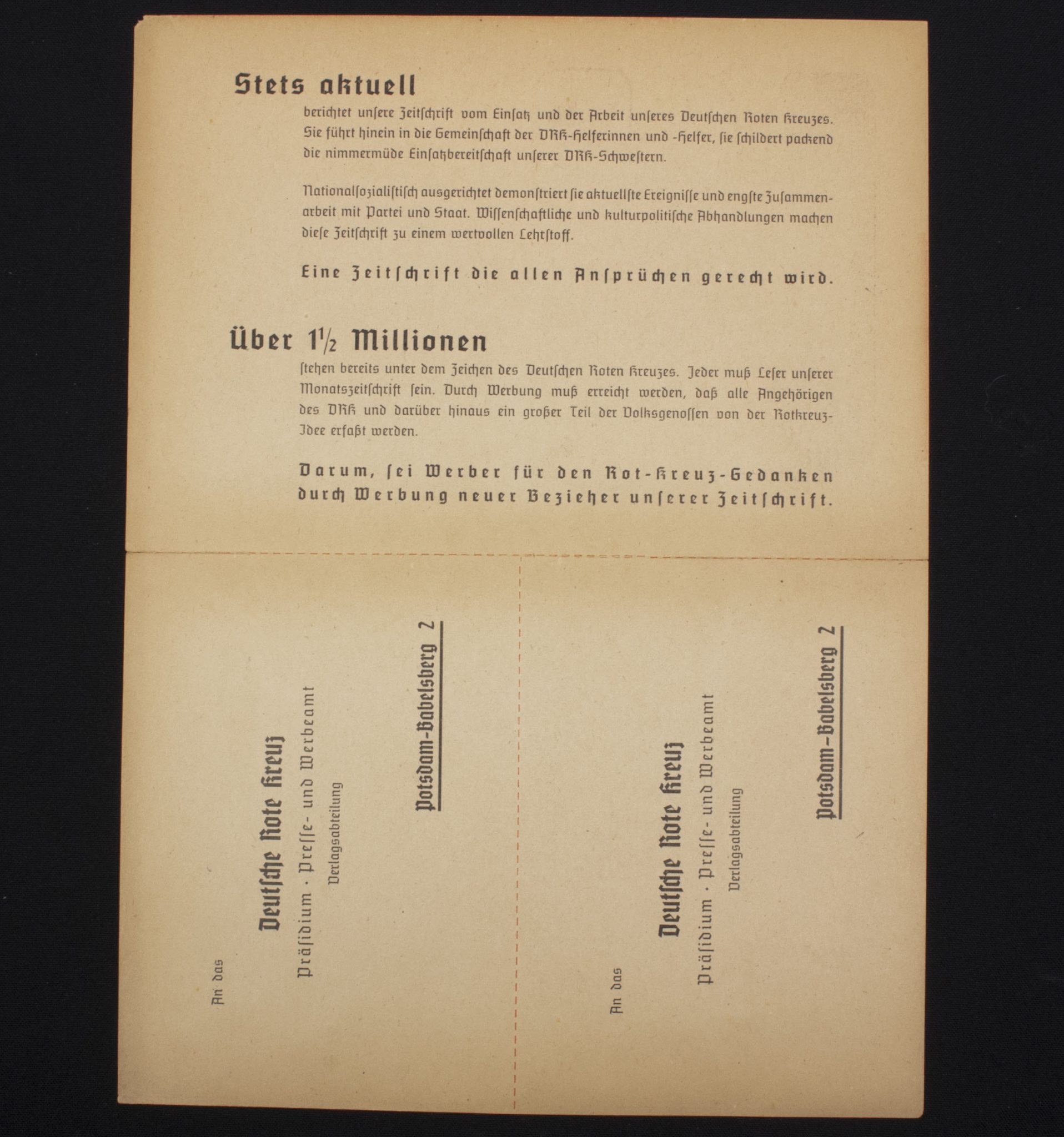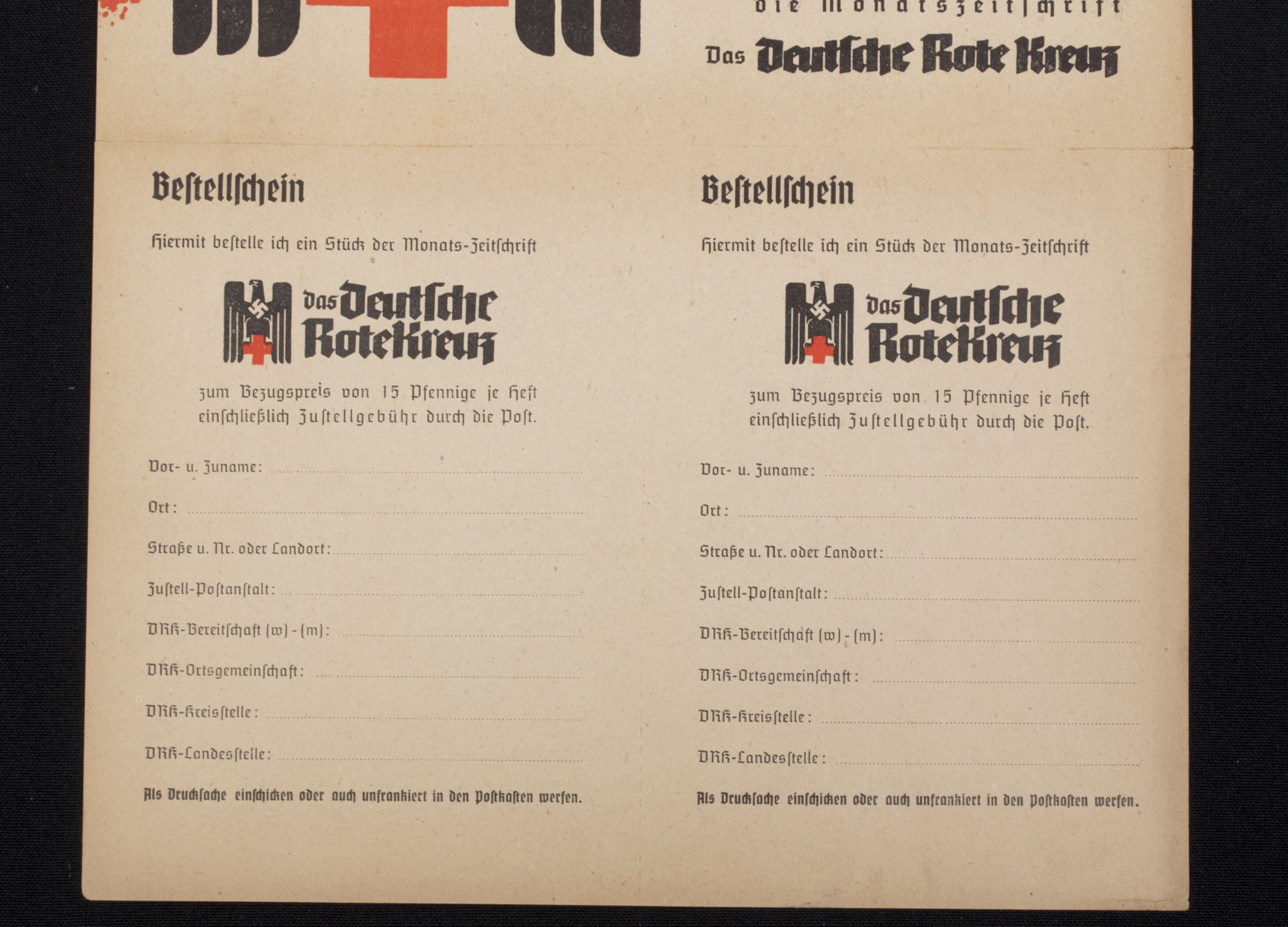 This is the complete application form for the DRK magazine. The folds are a bit weak, but is is all complete.
