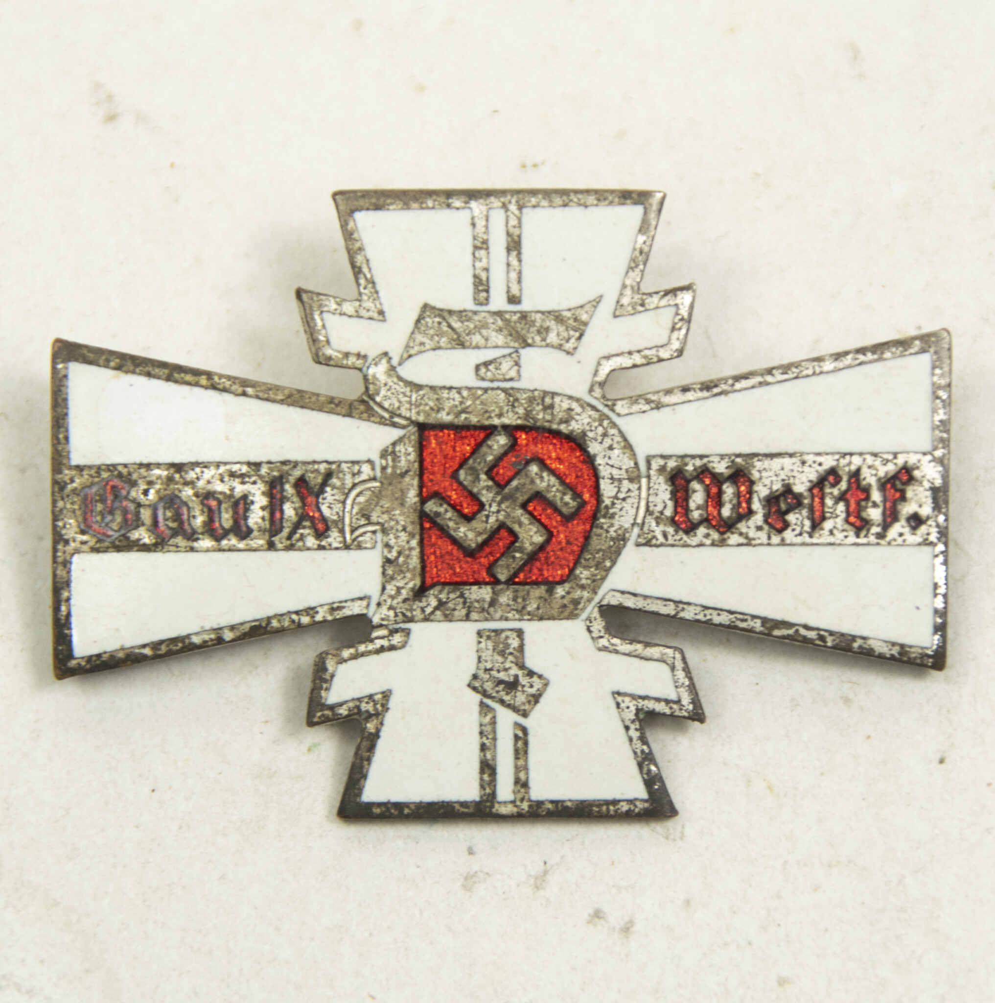 Enameled, in good condition. A quite large badge in hand.