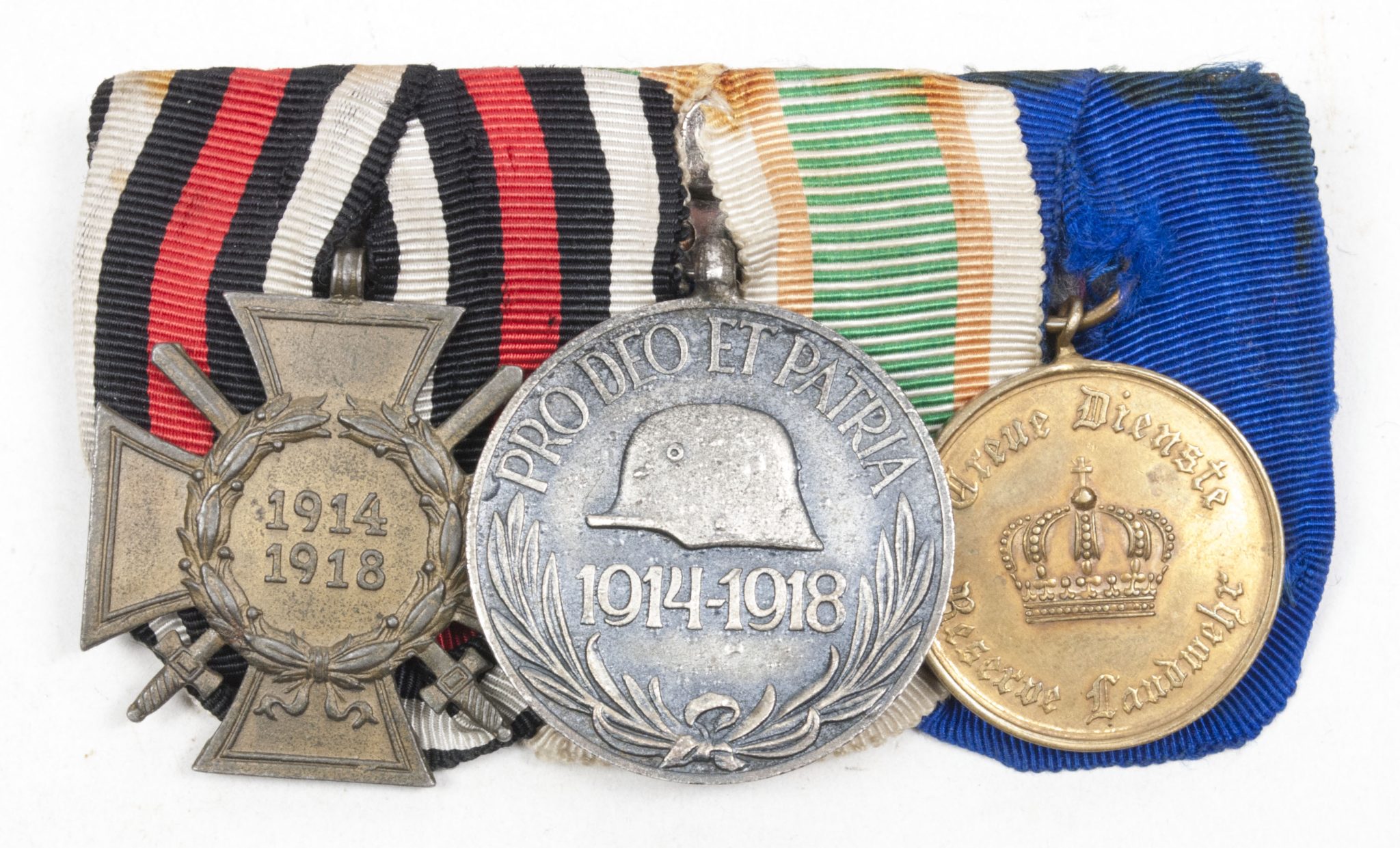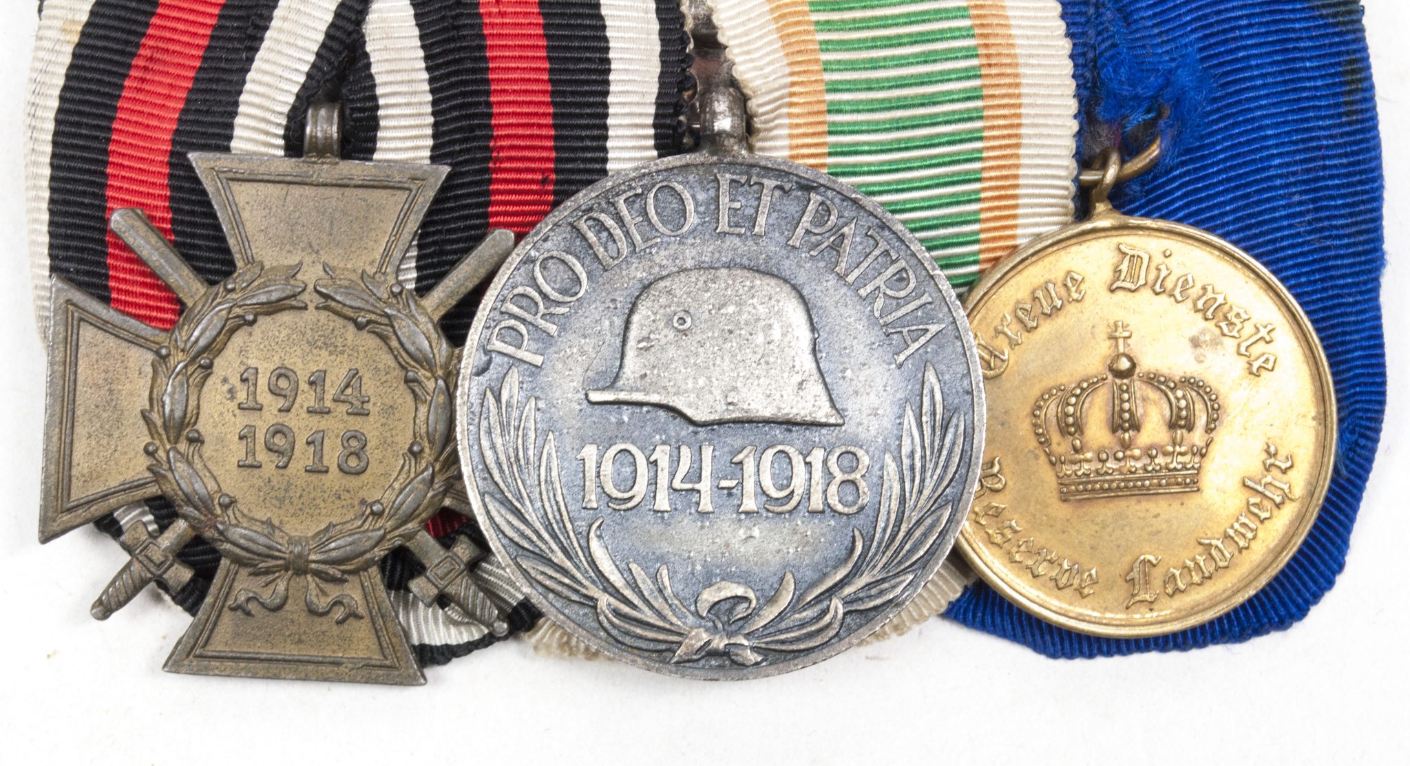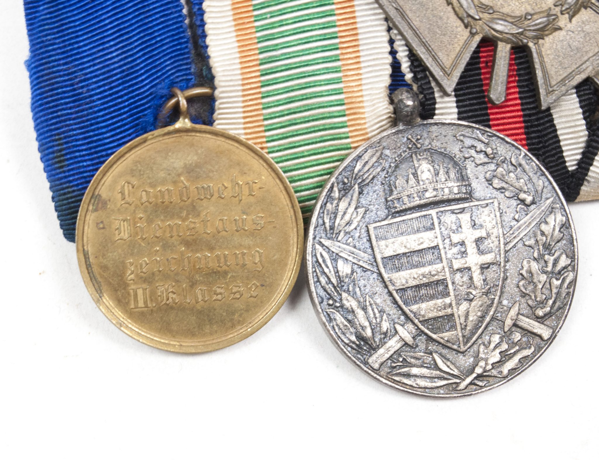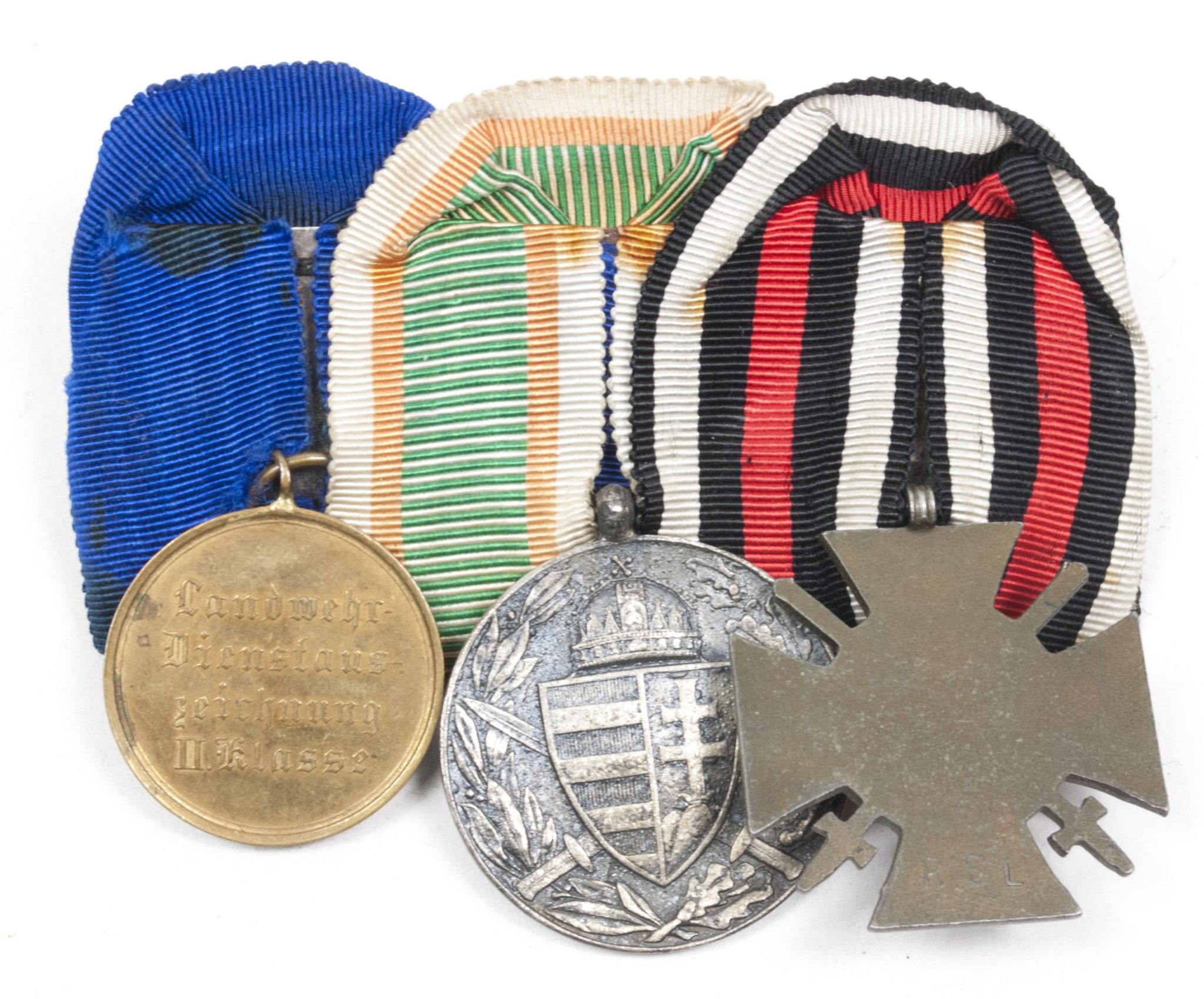 German medalbar with Frontkämpfer Kreuz + WWIHungarian commemorative medal + Treue Dienste Reserve Landwehr.