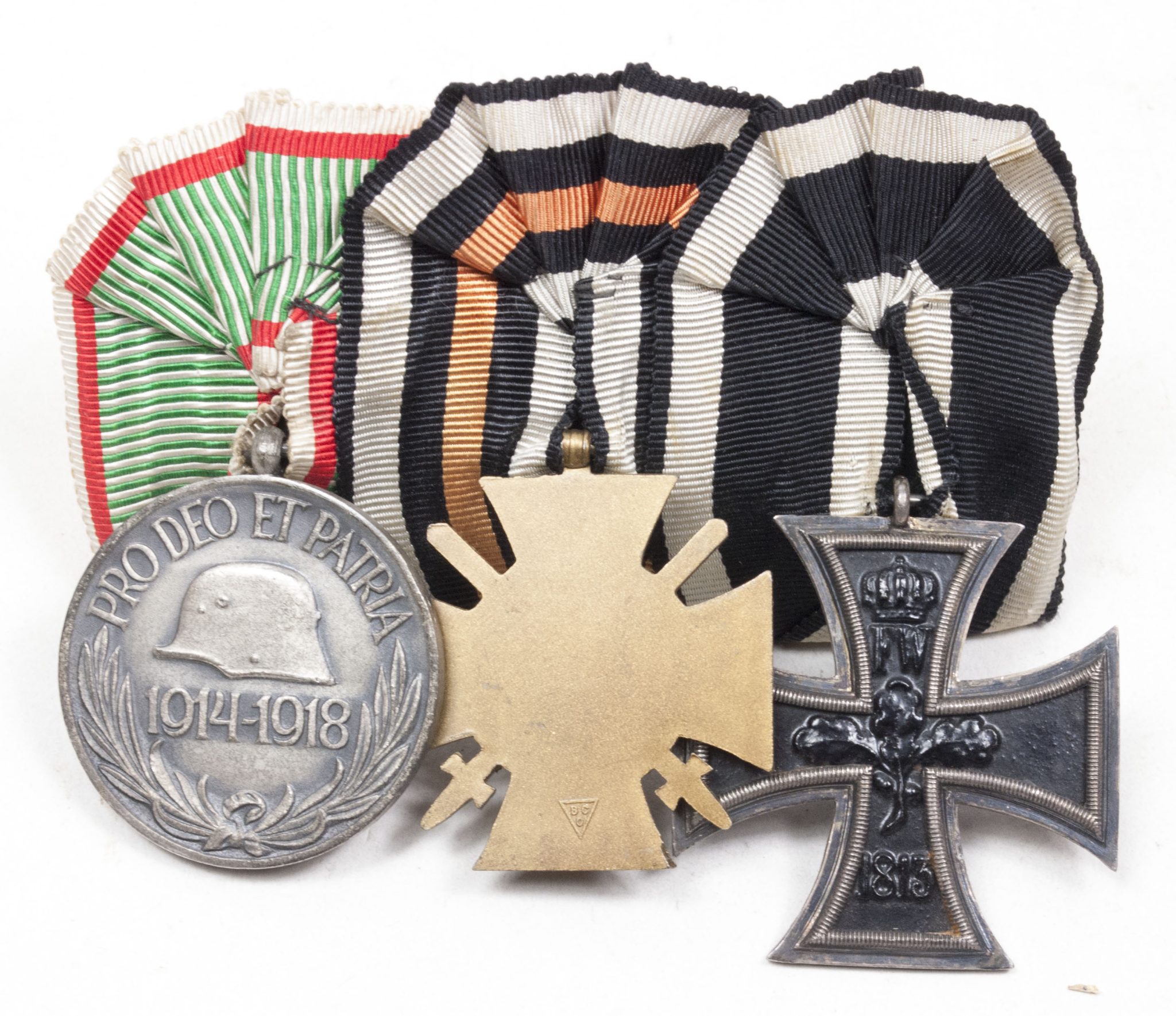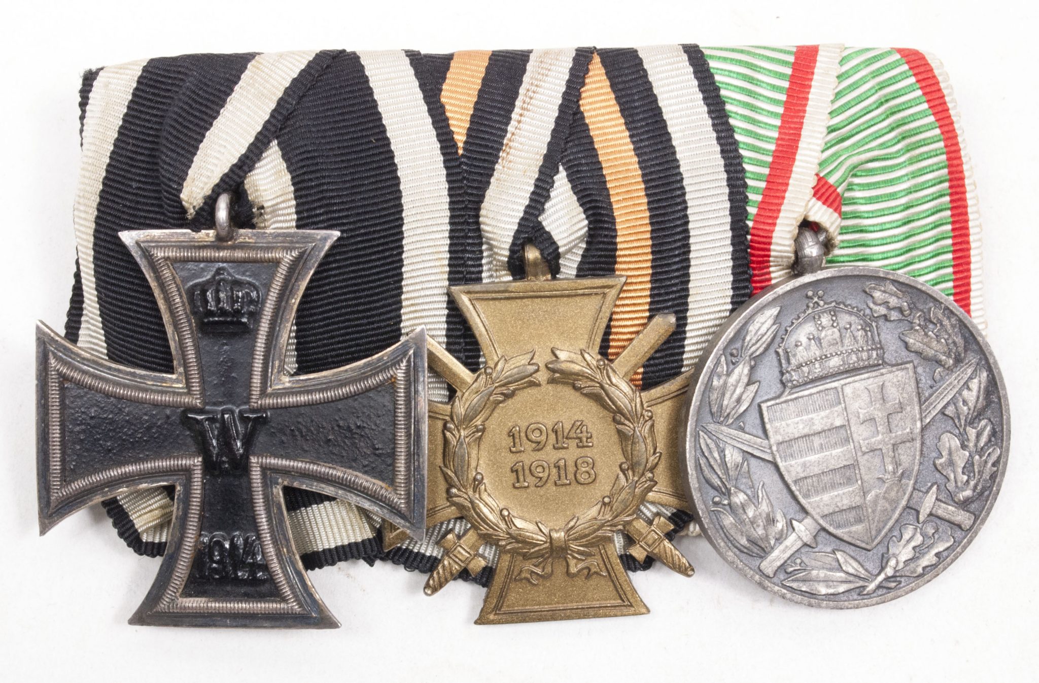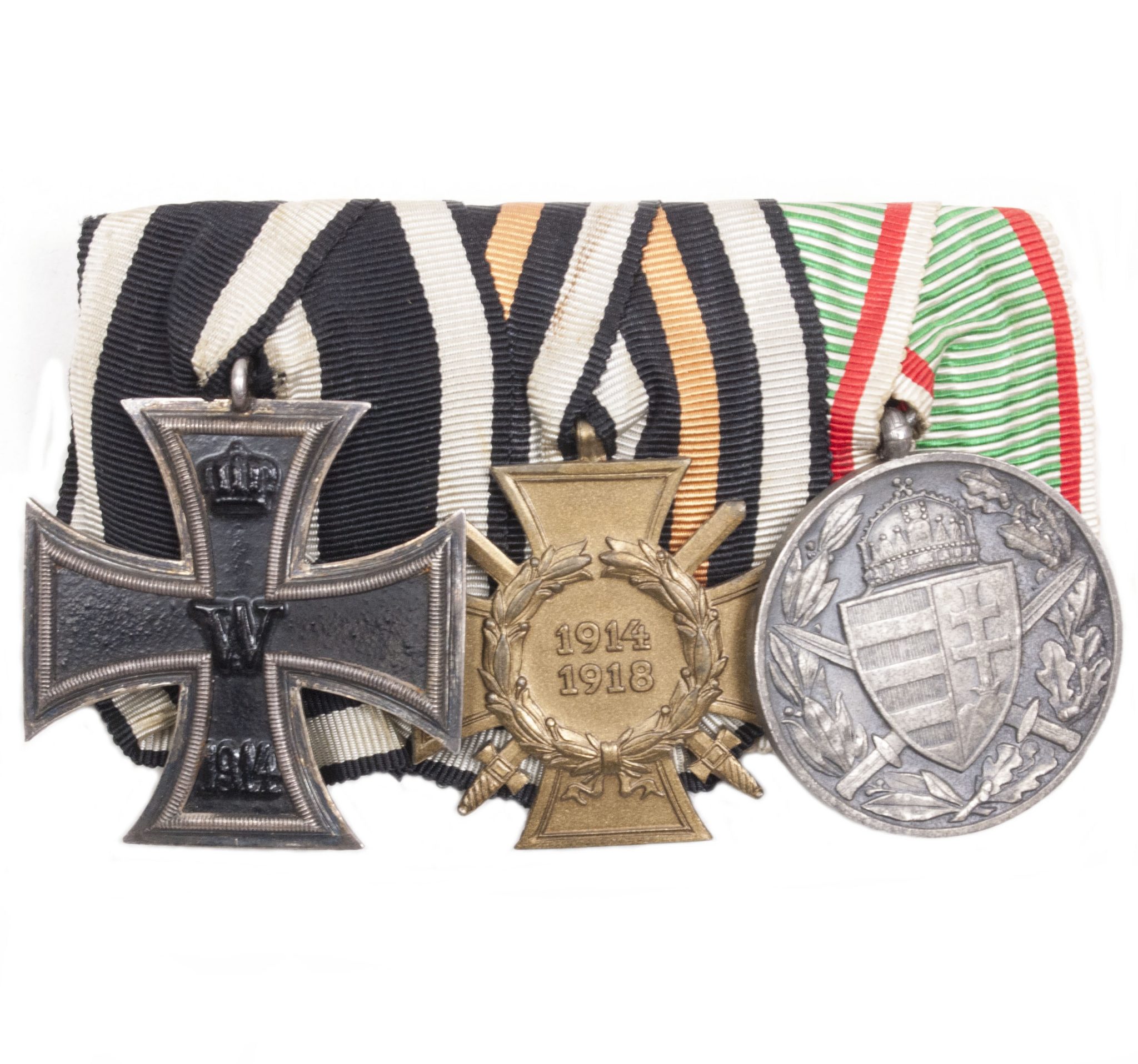 German medalbar with Iron Cross, Frontkämpfer Ehrenkreuz, Hungarian WWI commemorative medal.
