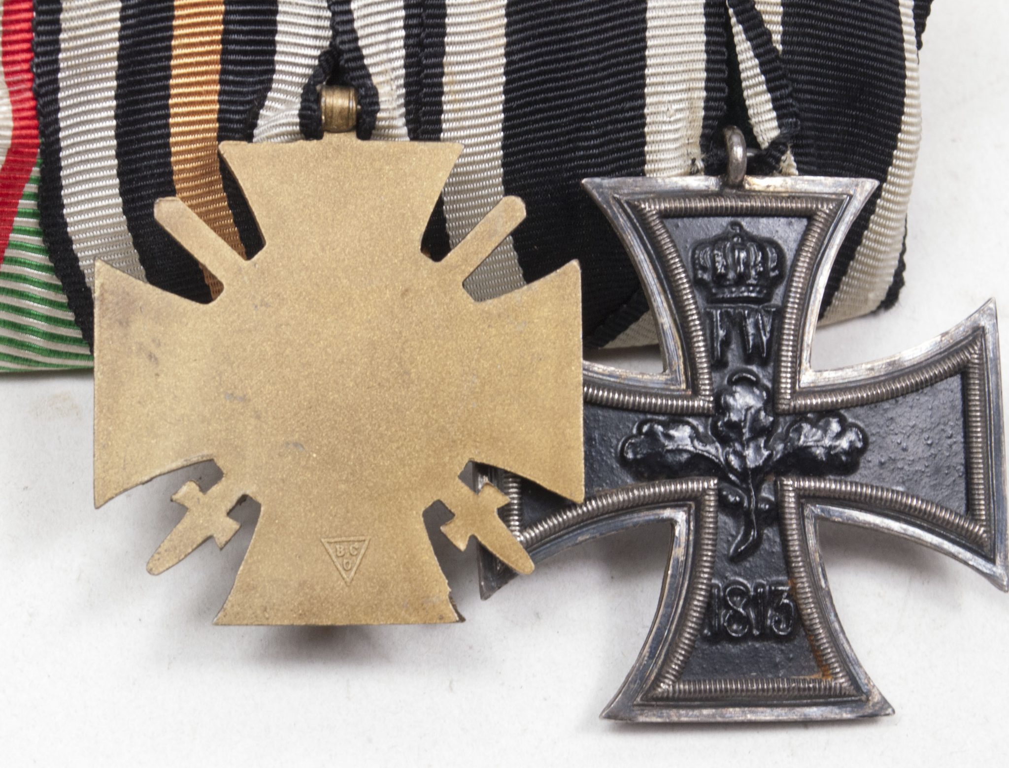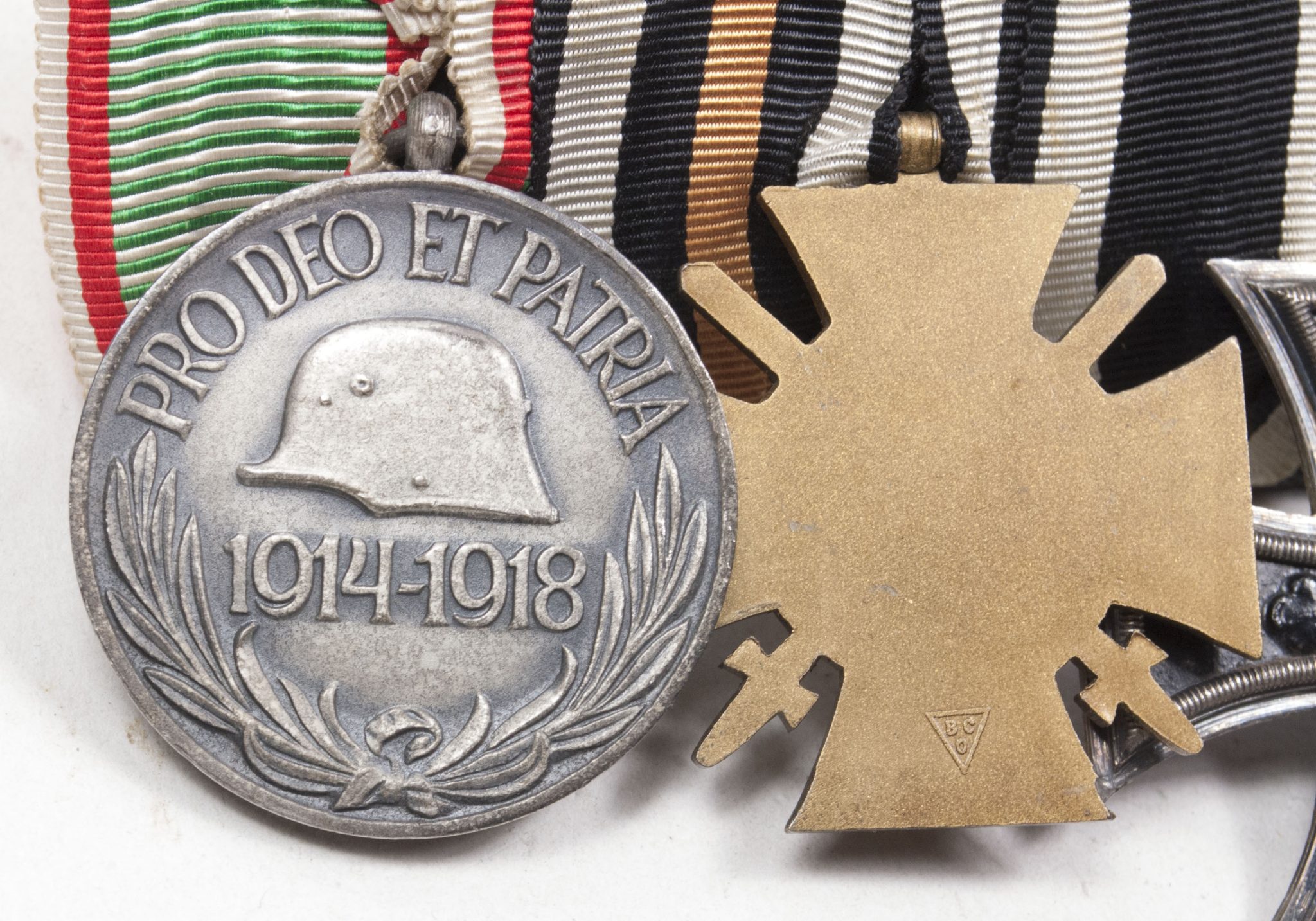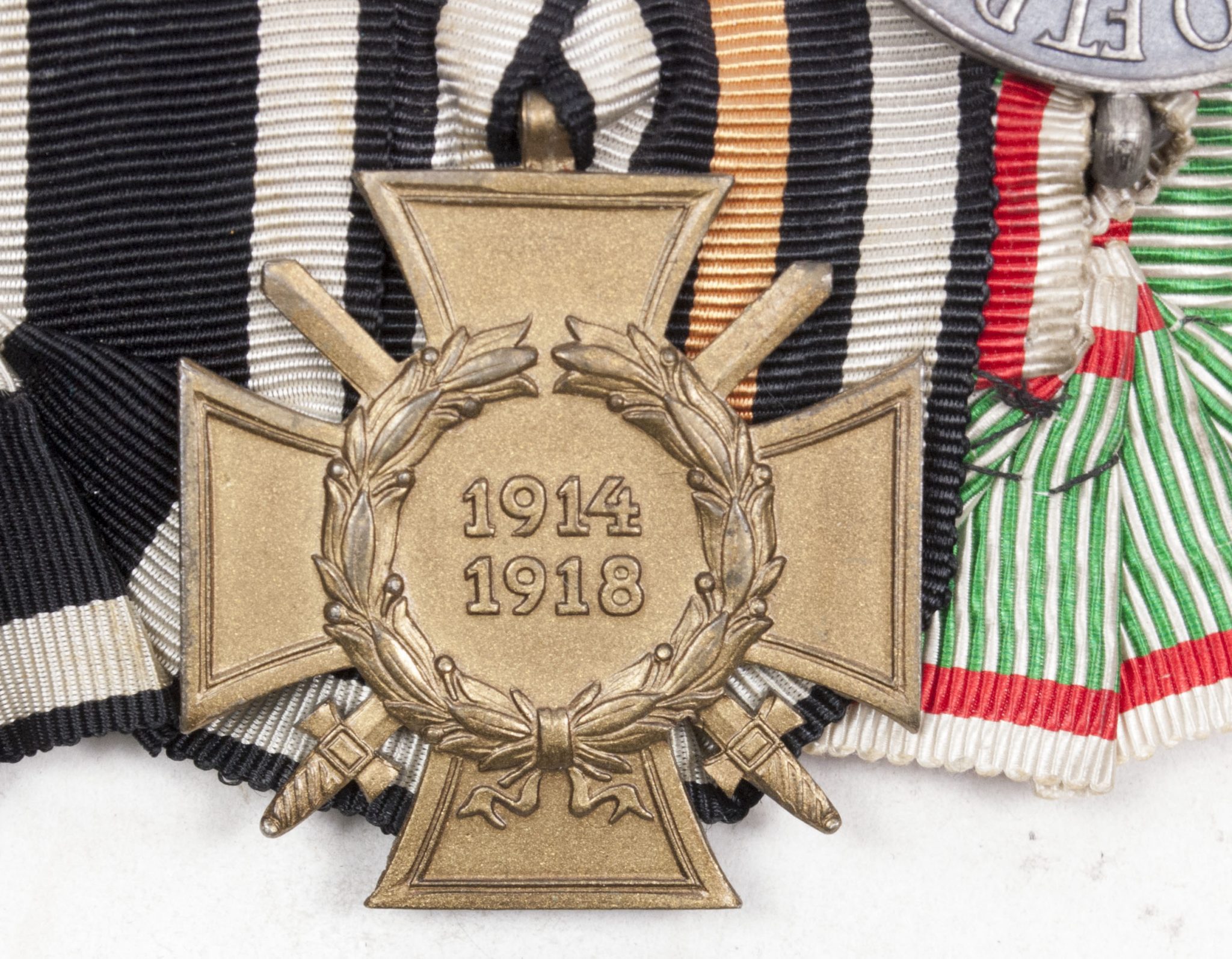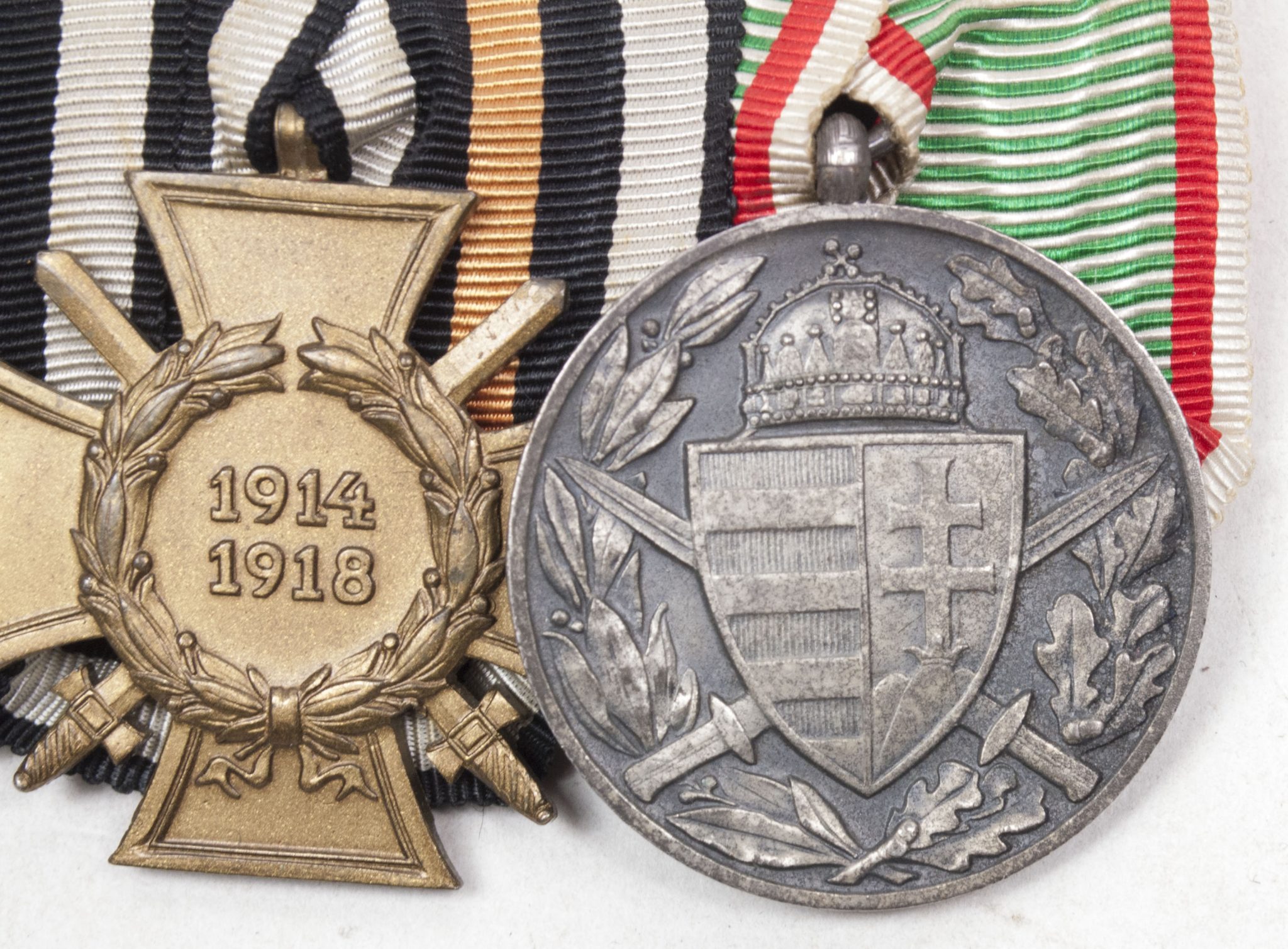 German medalbar with Iron Cross, Frontkämpfer Ehrenkreuz, Hungarian WWI commemorative medal.