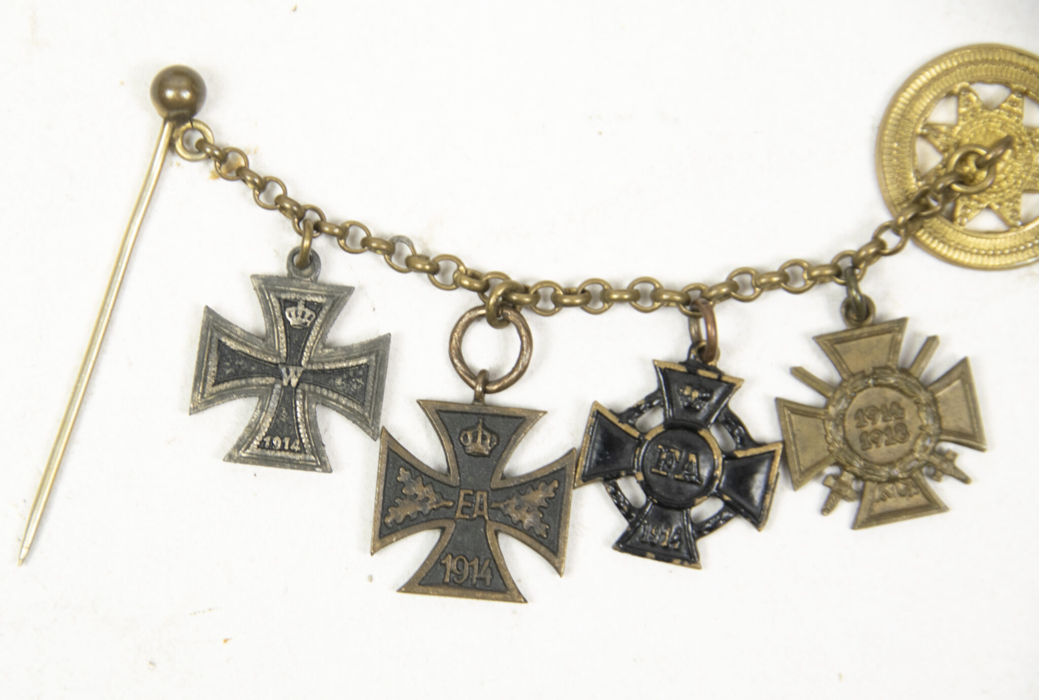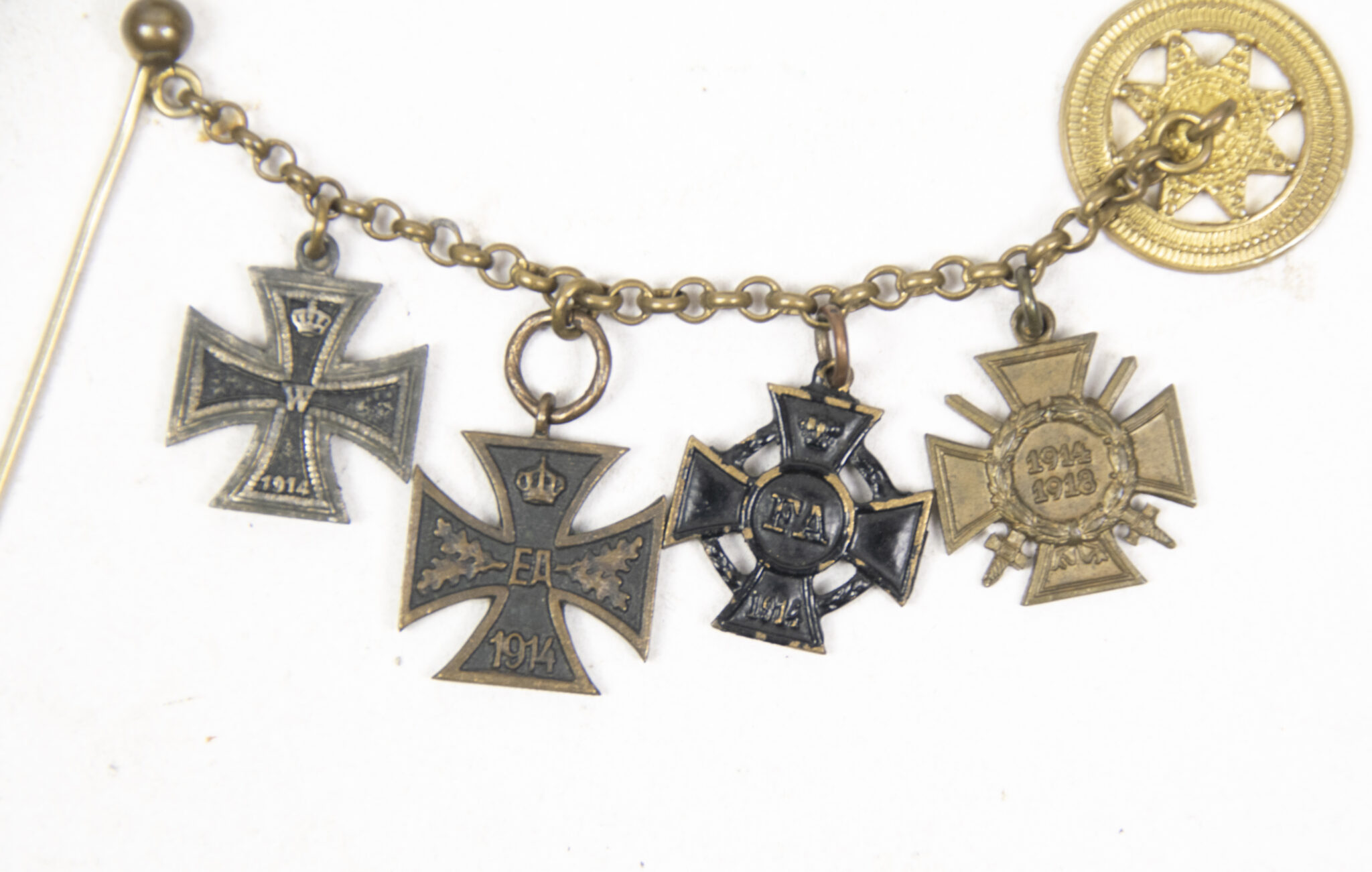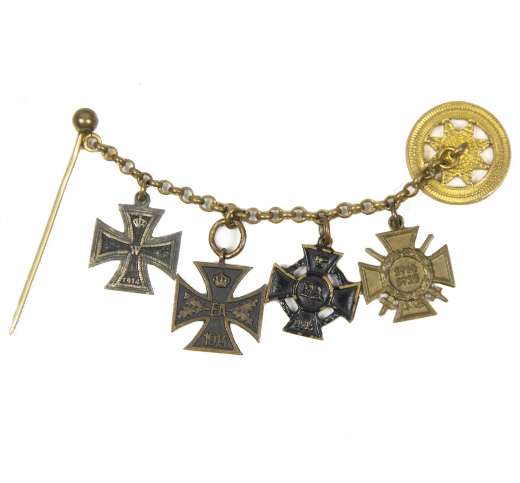 German World War I Braunschweig Frackkette mini medals with Ek2 + Ernst August Kreuz + Friedrich August Kreuz + Frontkämpfer Ehrenkreuz.
