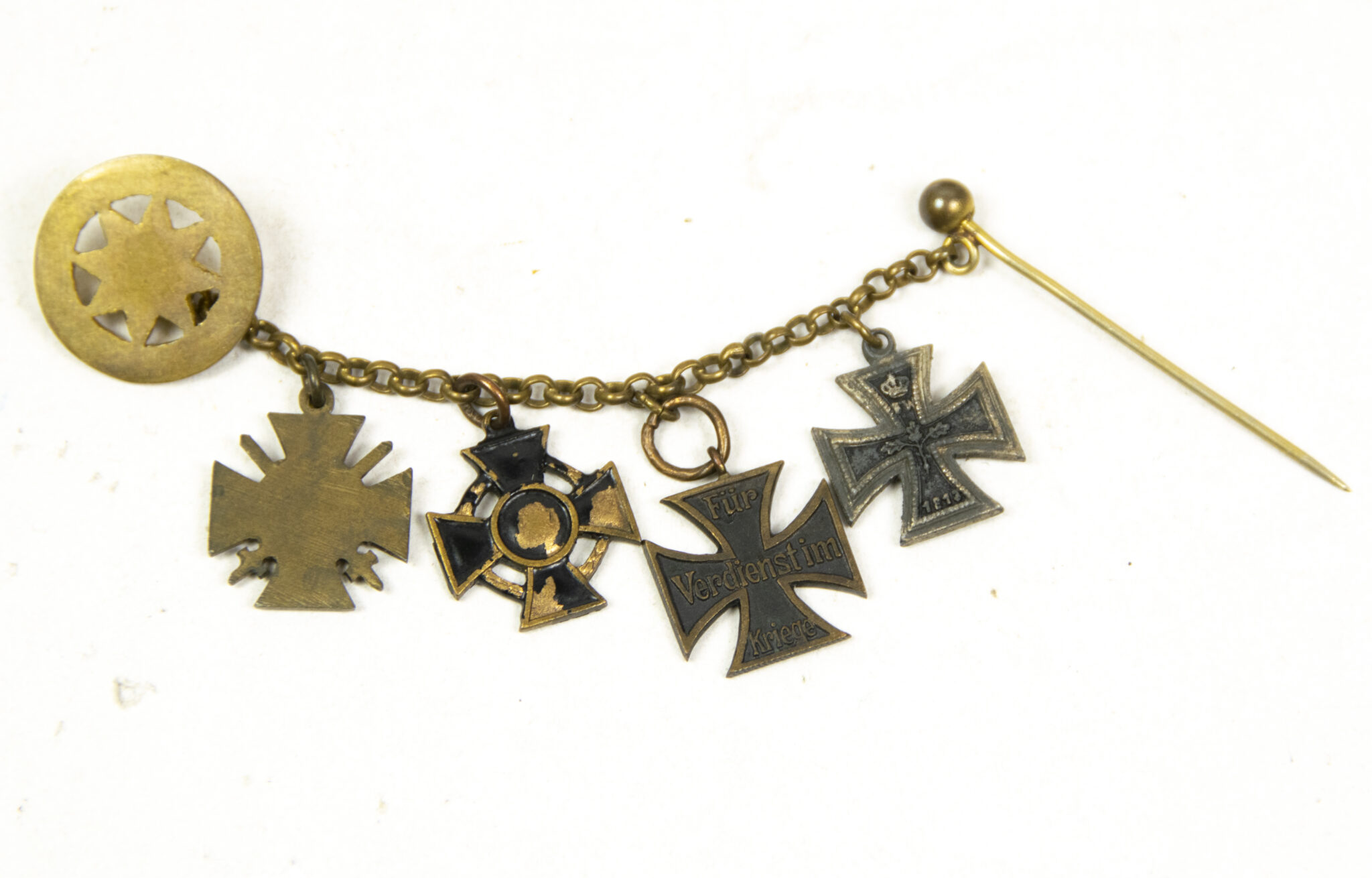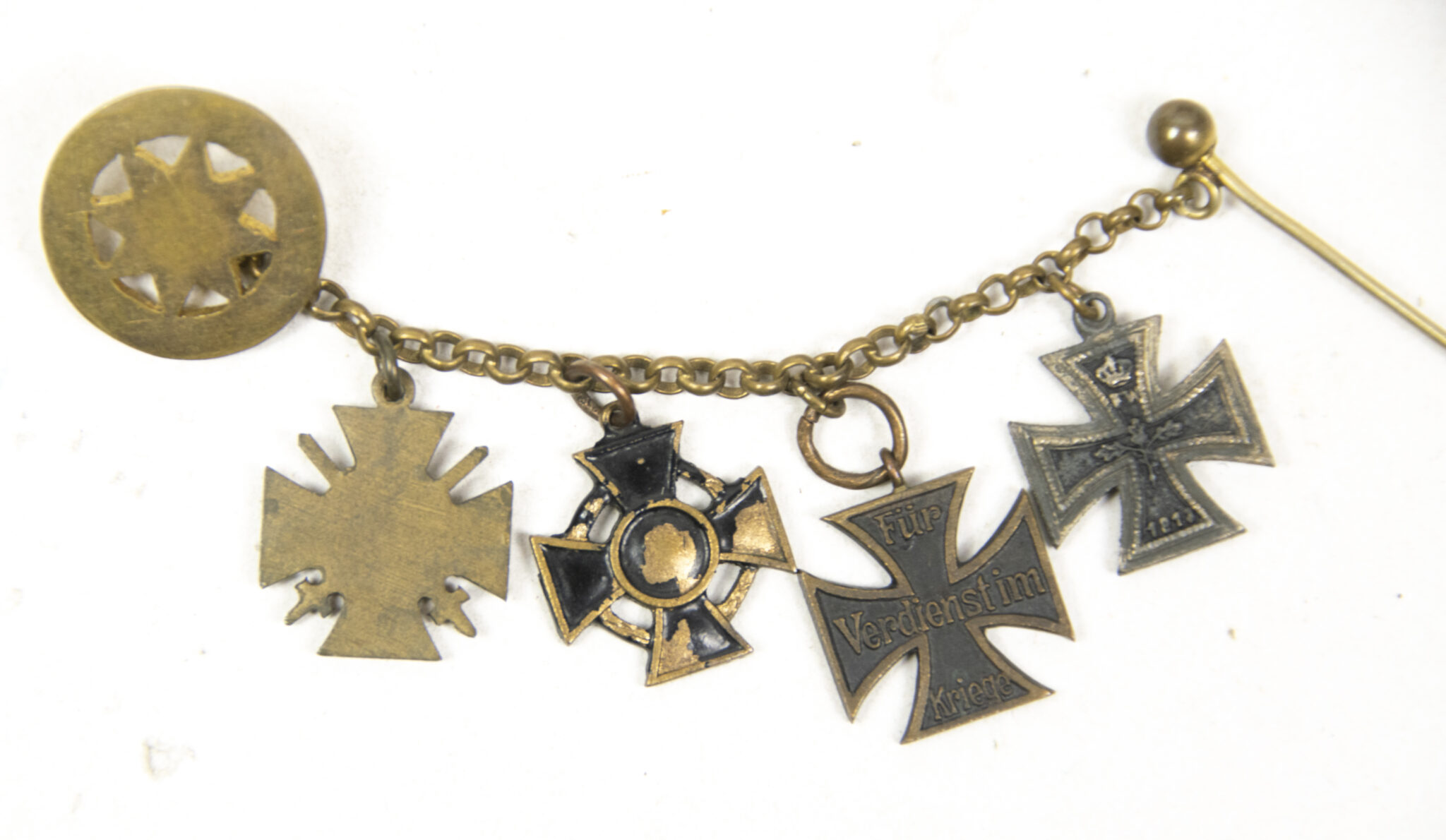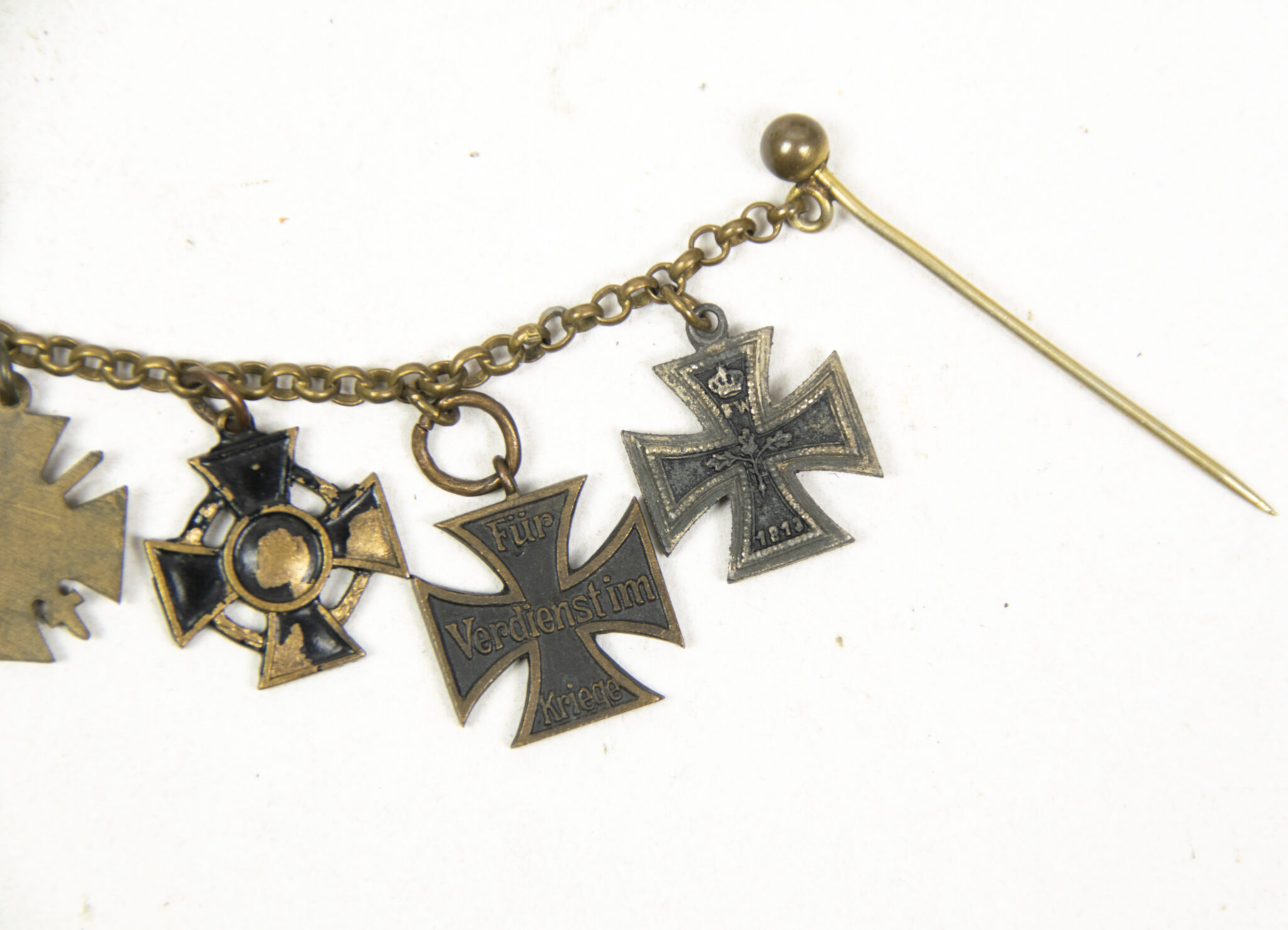German World War I Braunschweig Frackkette mini medals with Ek2 + Ernst August Kreuz + Friedrich August Kreuz + Frontkämpfer Ehrenkreuz.