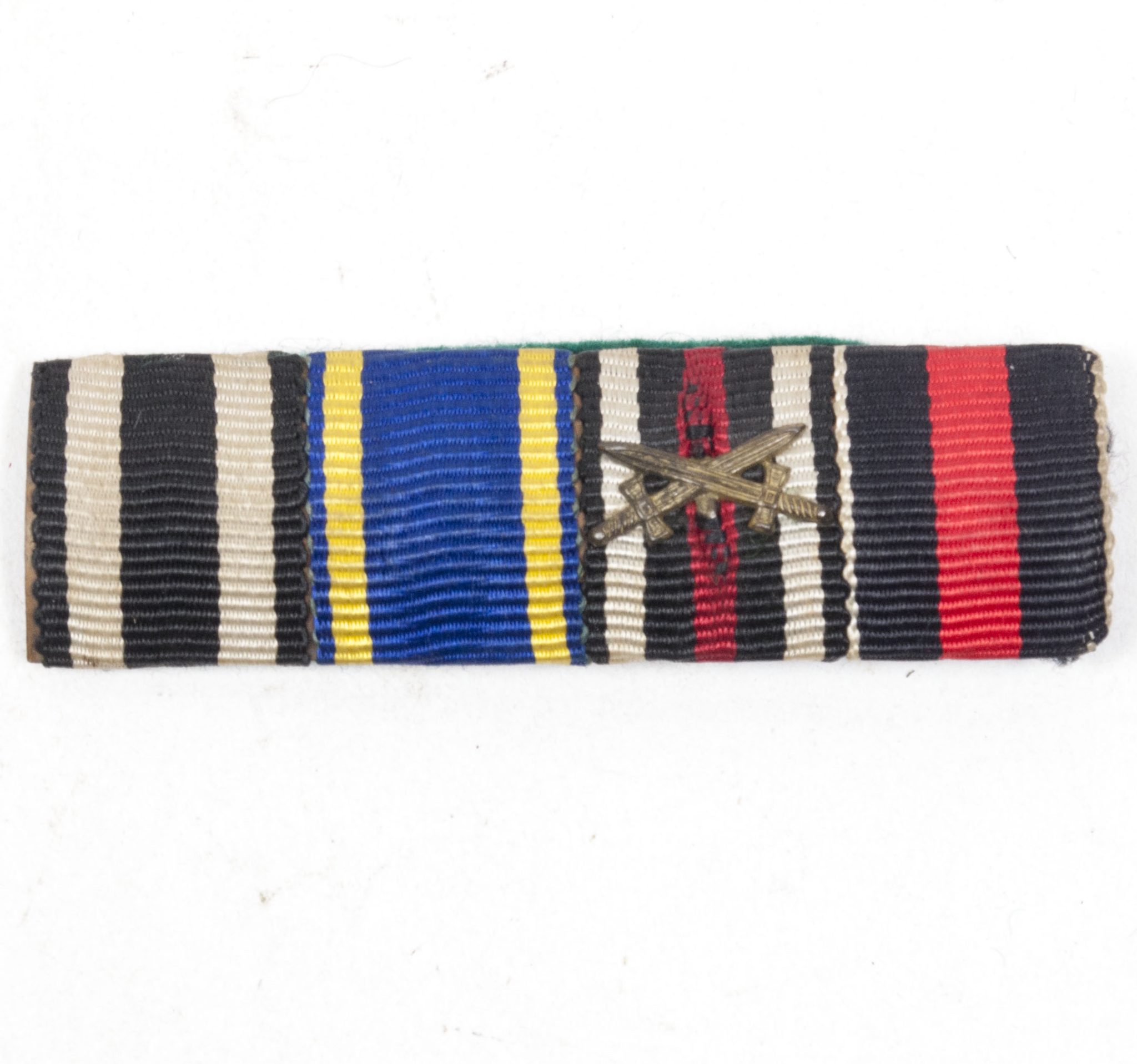 German WW1/WWII ribbon with Ek2 + Braunschweig Kriegsverdienstkreuz + Frontkämpfer Ehrenkreuz + Sudetenmedaille.