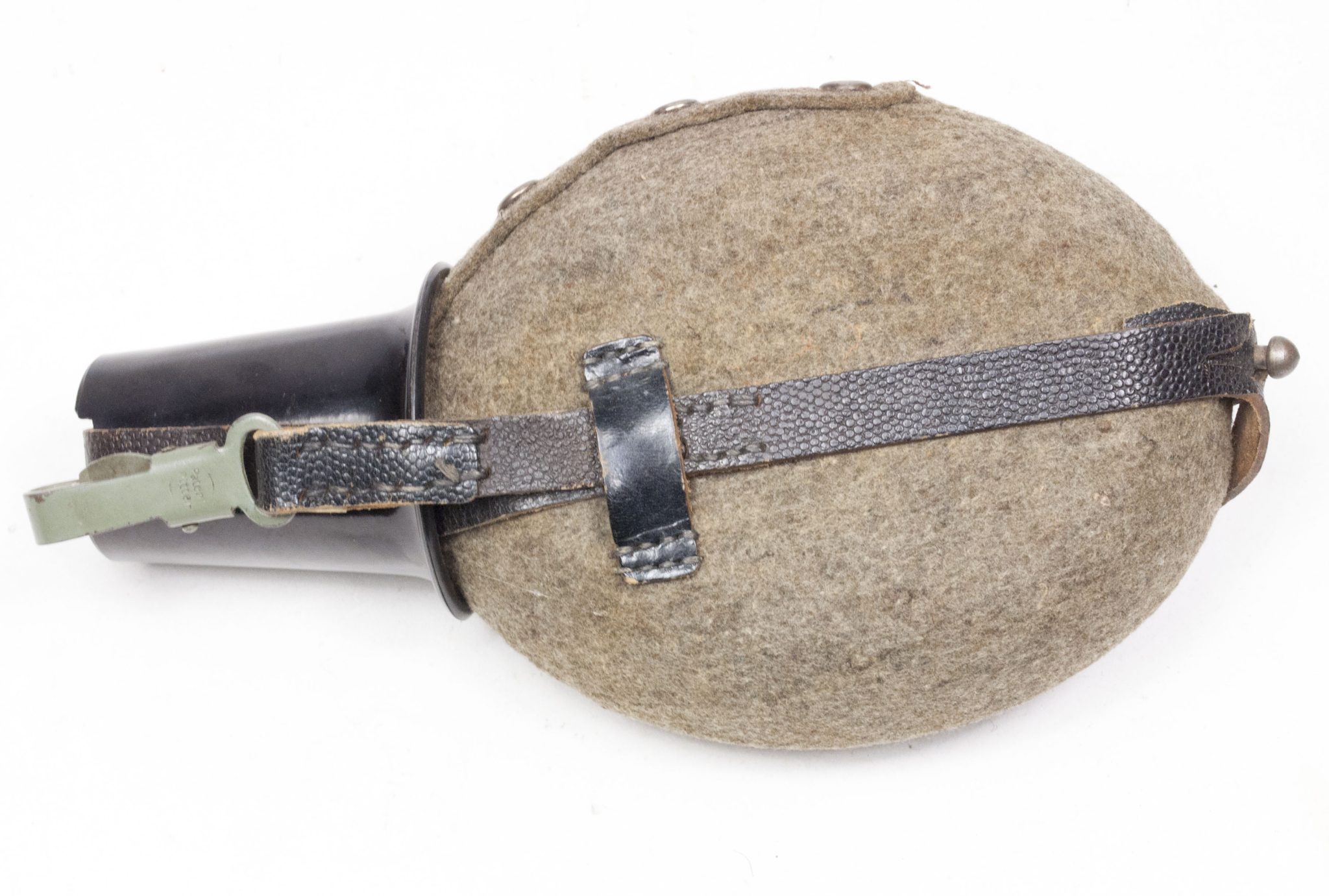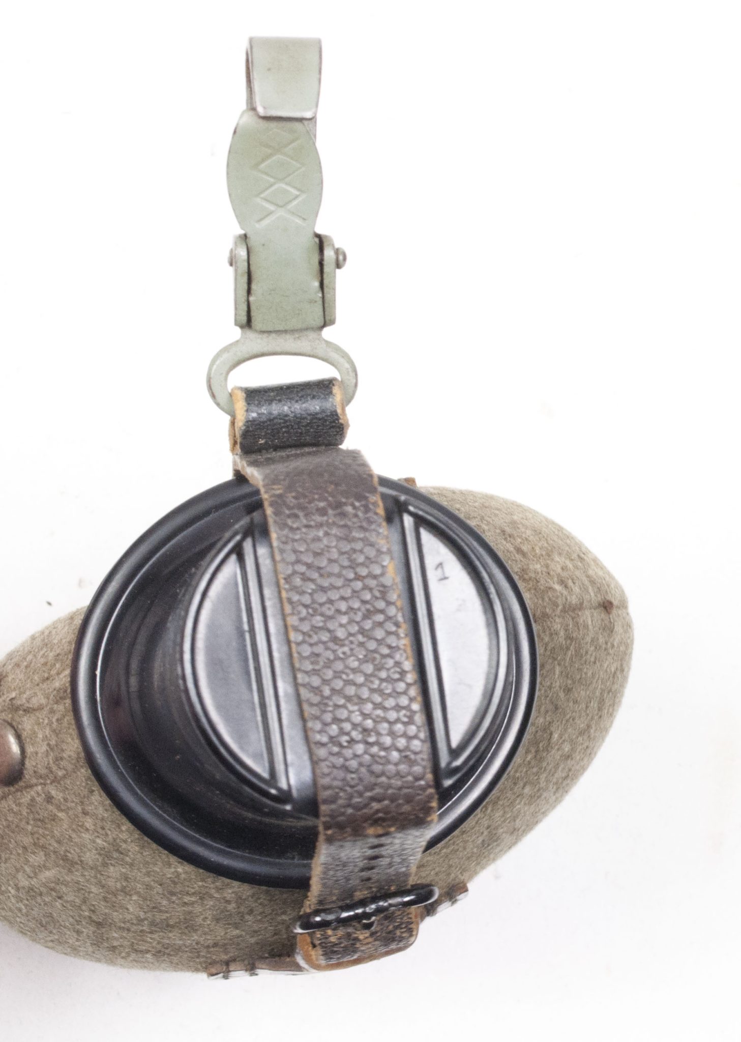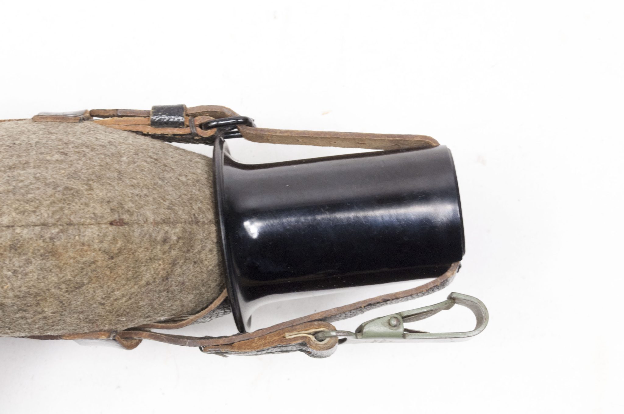 The cover is undamaged, the cup is undamaged, only one strap on the underside that holds the canteen damaged. Overal a more than nice canteen with cup.