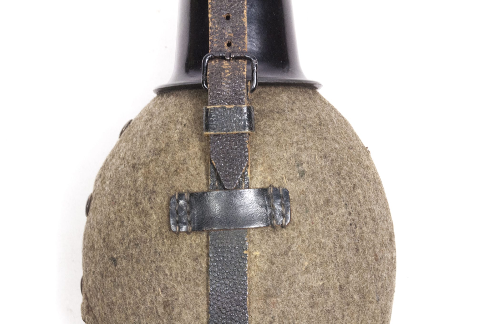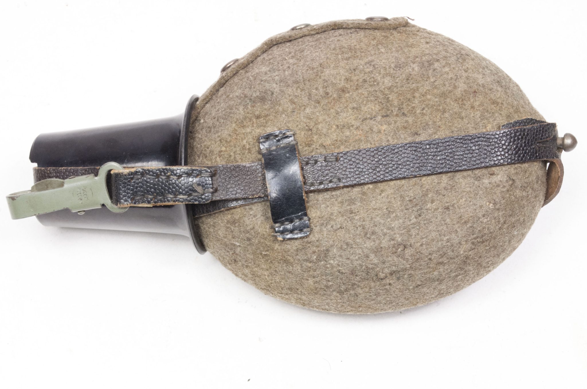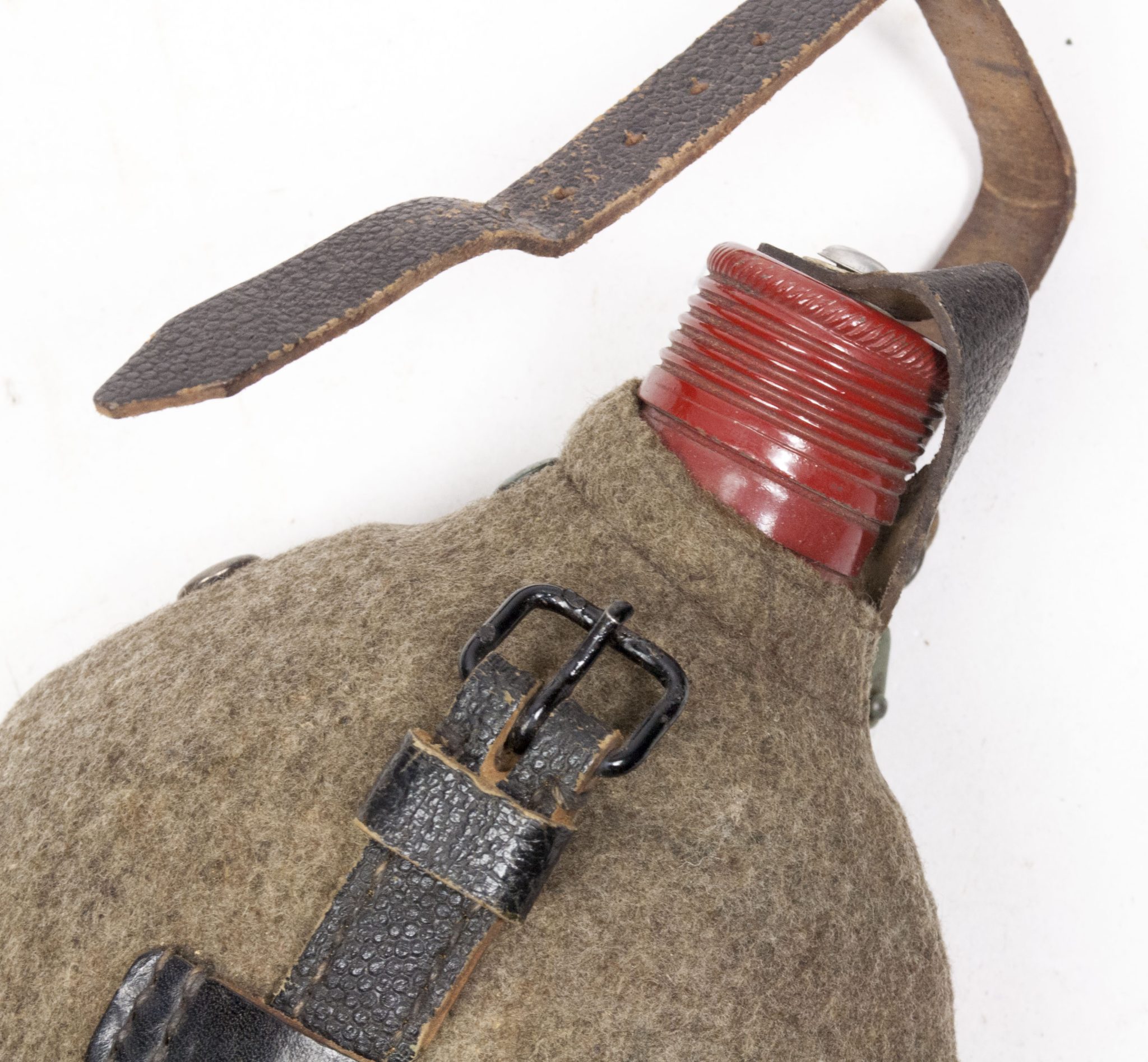 The cover is undamaged, the cup is undamaged, only one strap on the underside that holds the canteen damaged. Overal a more than nice canteen with cup.