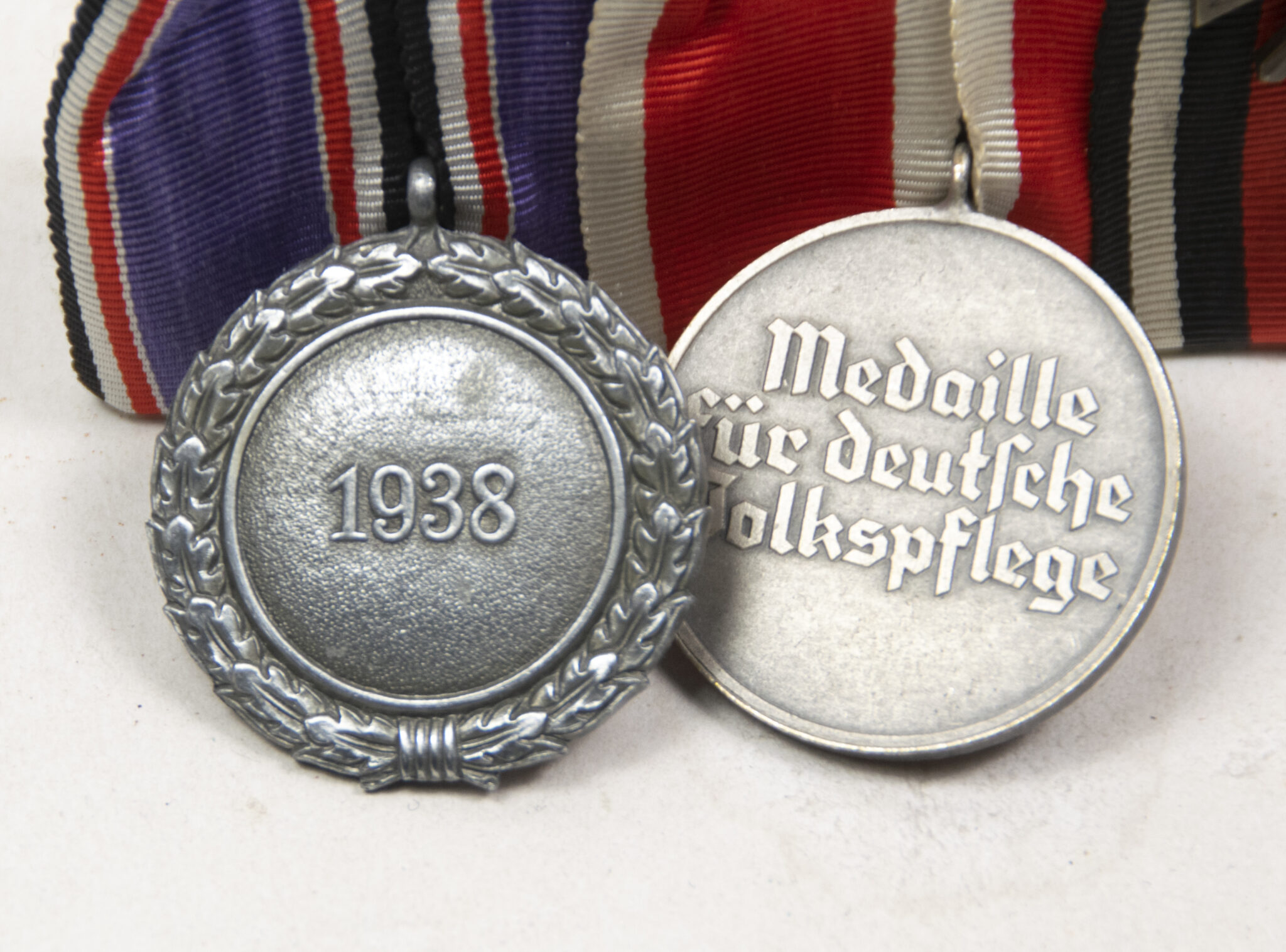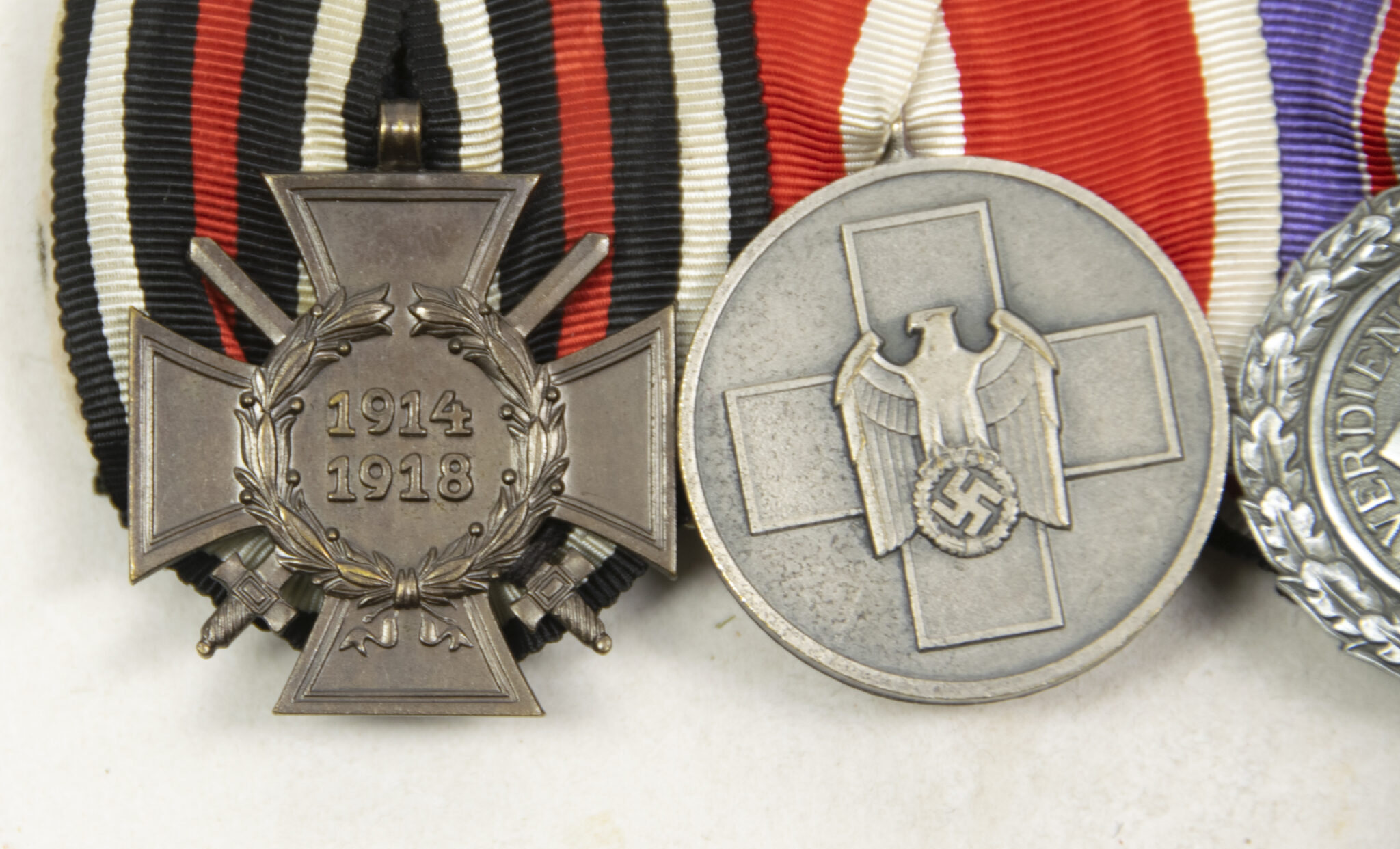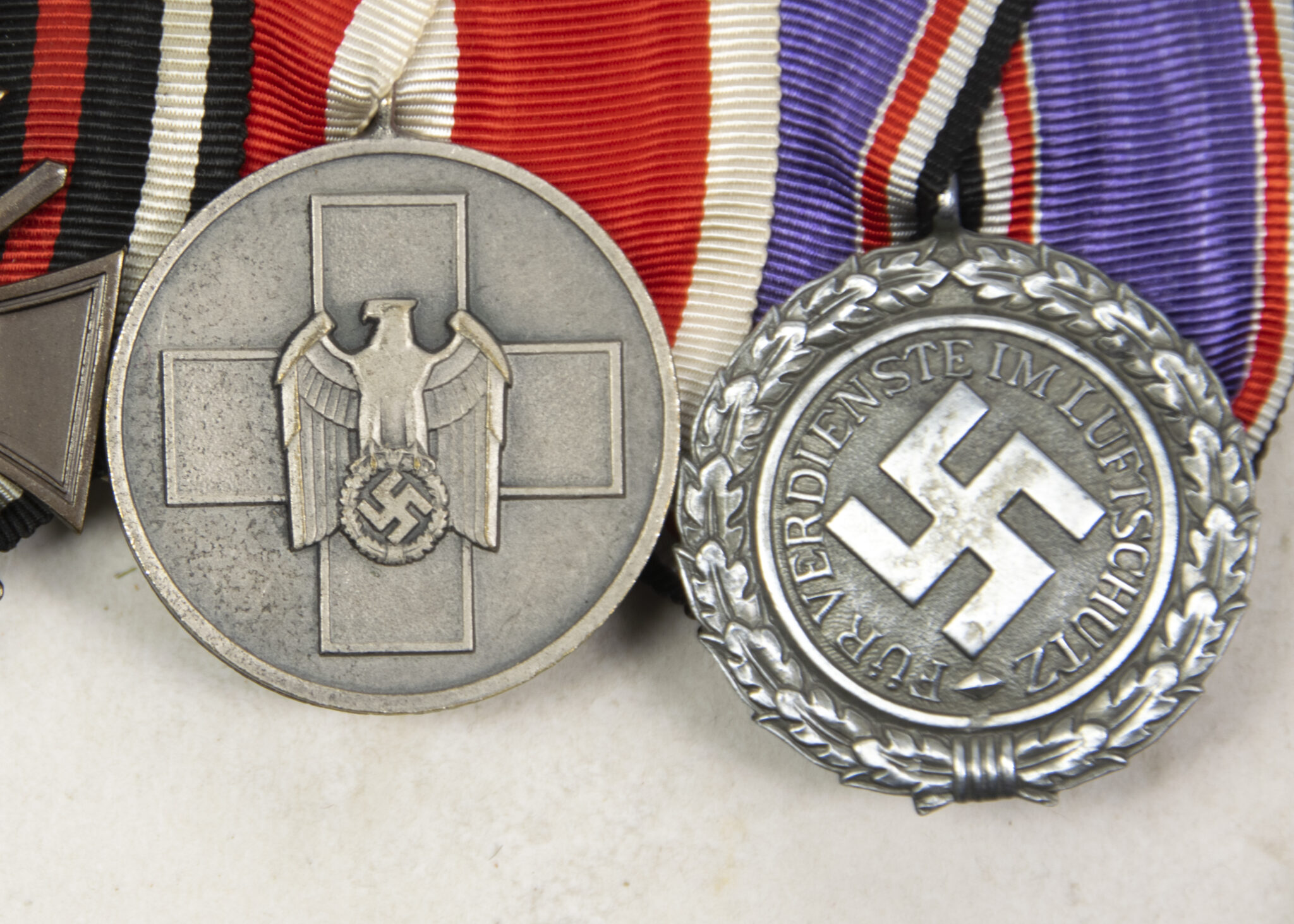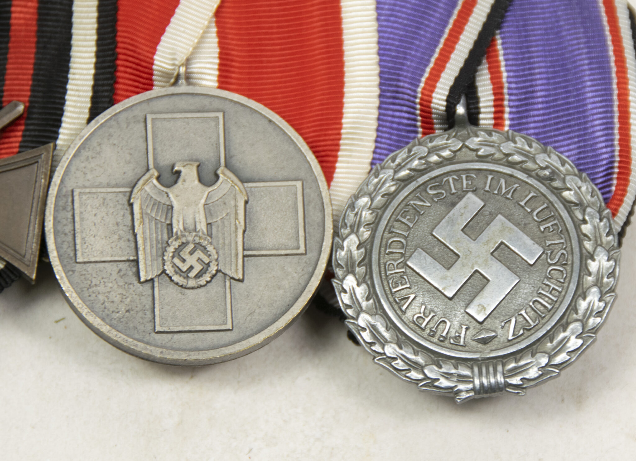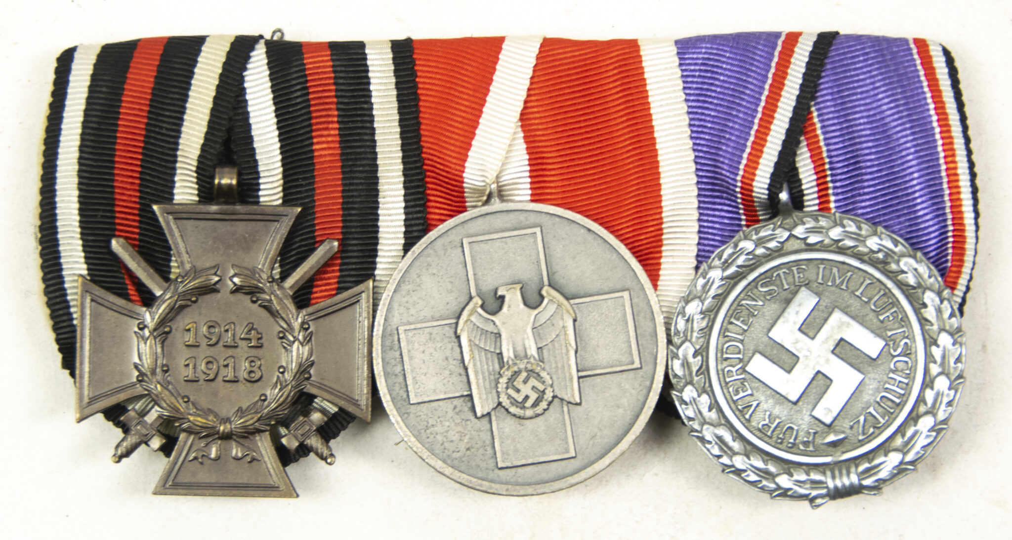 German WWII medalbar with Frontkämper Ehrenkreuz + Volkspflege medaille + Luftschutz medaille.