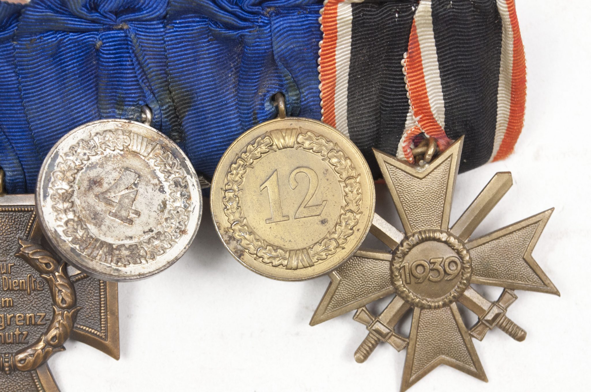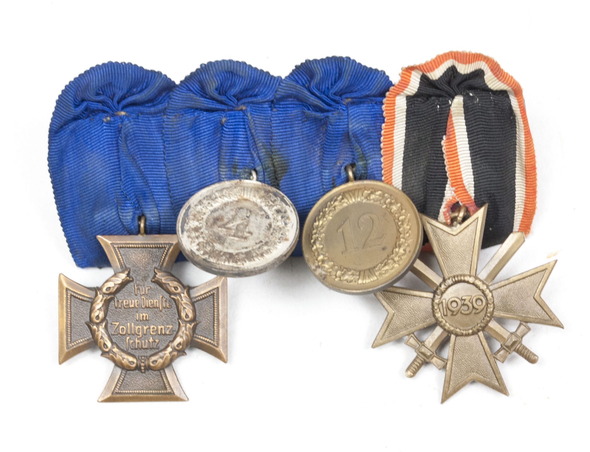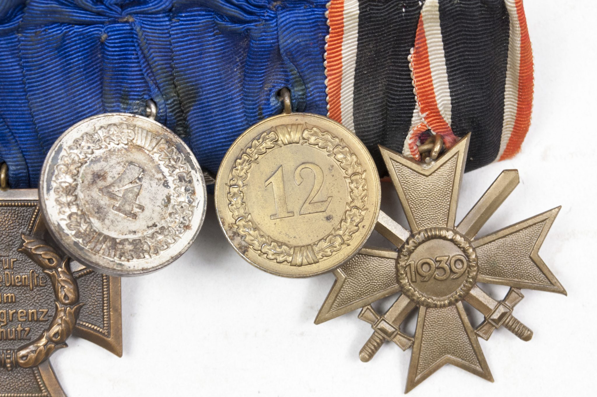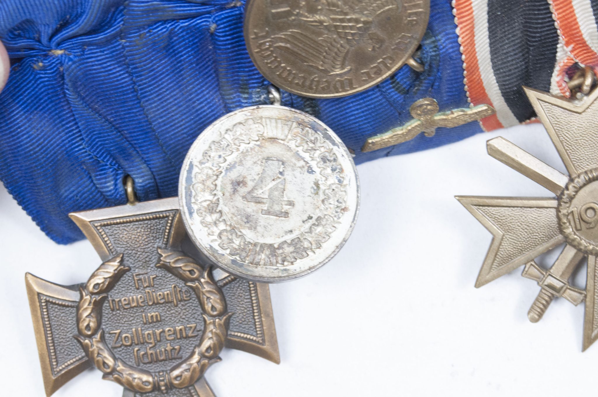 German WWII medalbar with KVK2 + Heer Dienstauszeichnung 8 + 4 Jahre + Zollgrenzschutz medaille.
