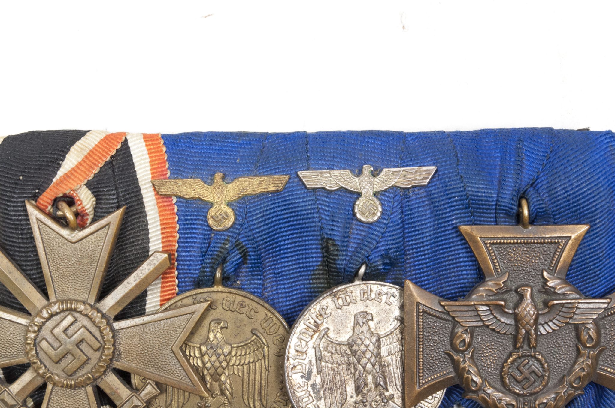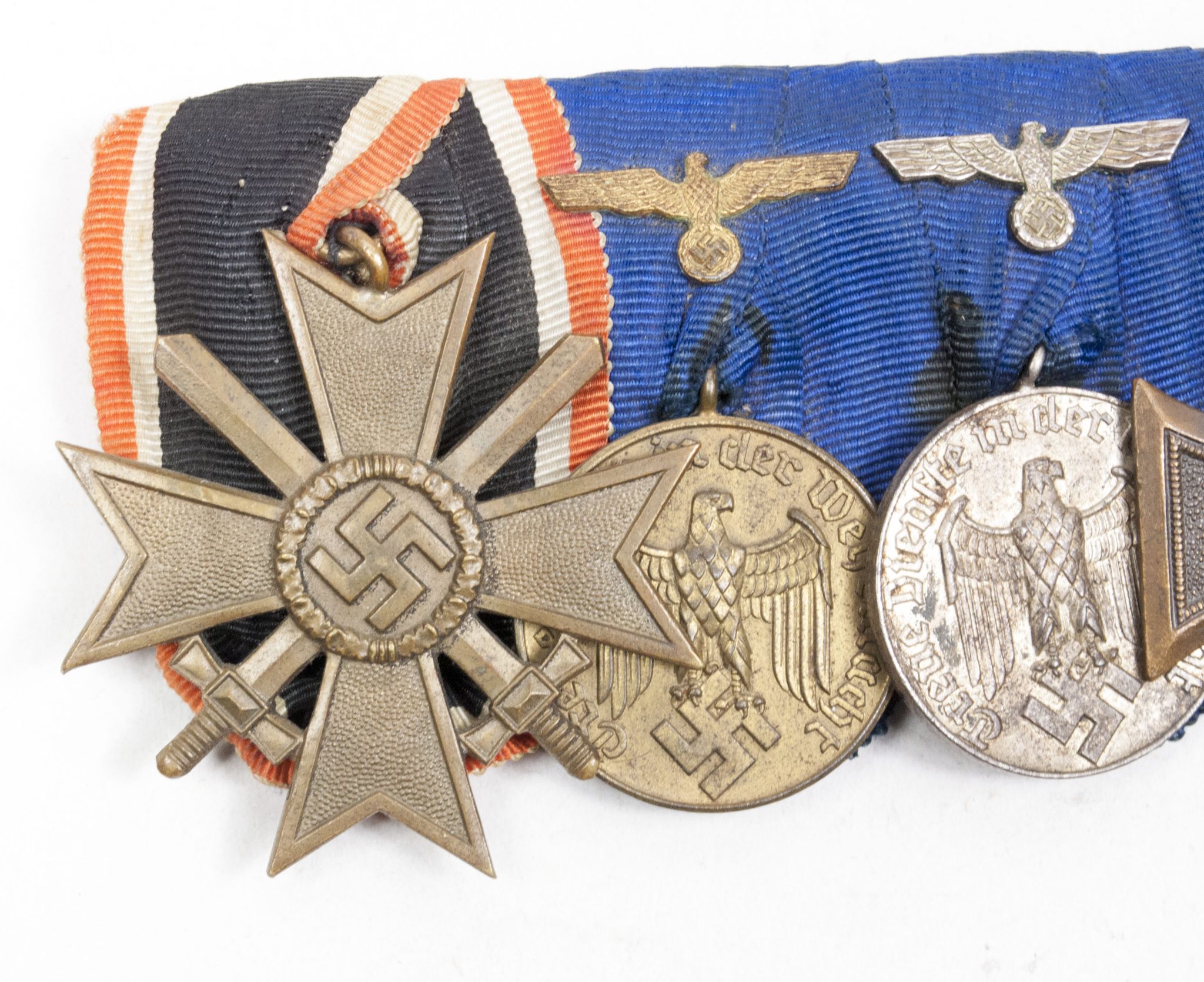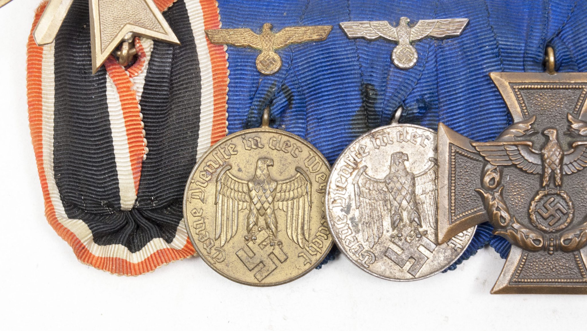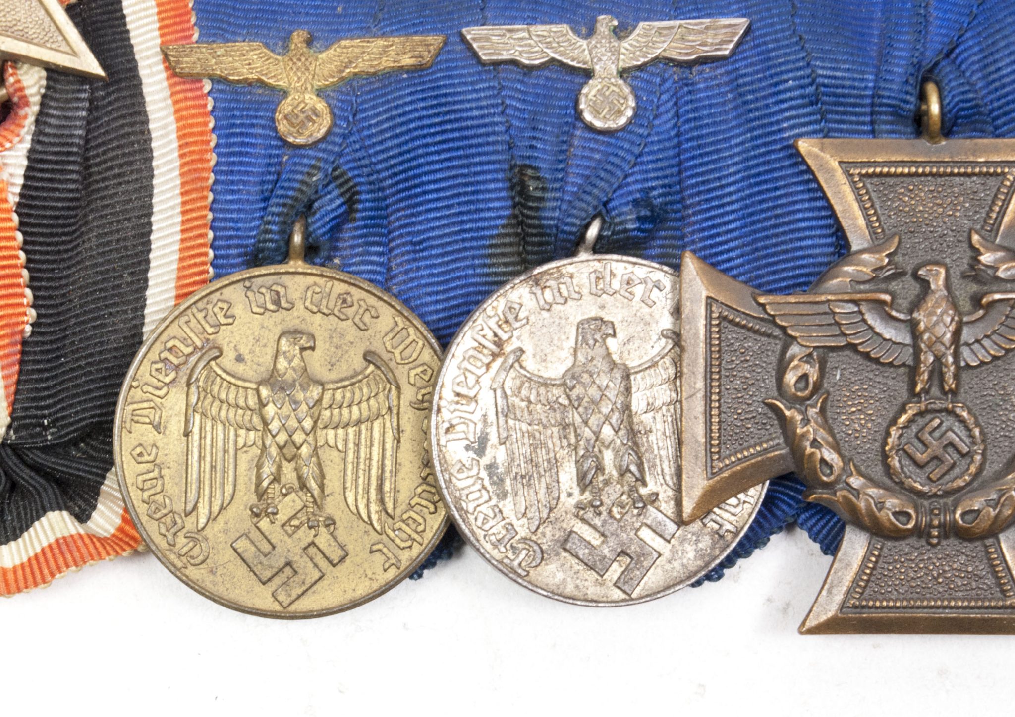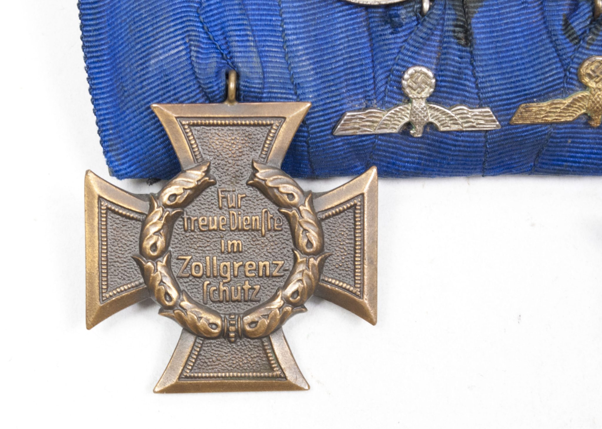 German WWII medalbar with KVK2 + Heer Dienstauszeichnung 8 + 4 Jahre + Zollgrenzschutz medaille.