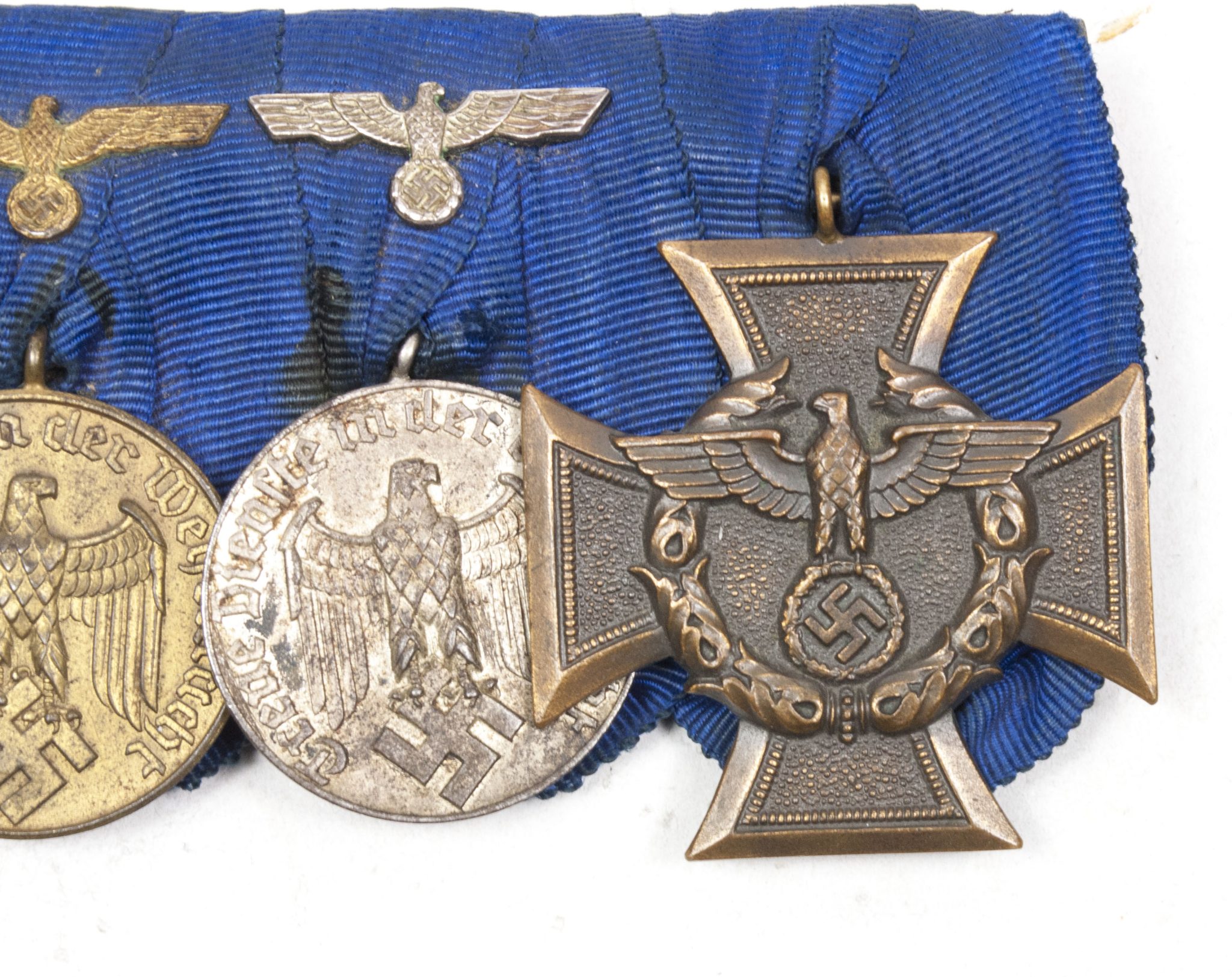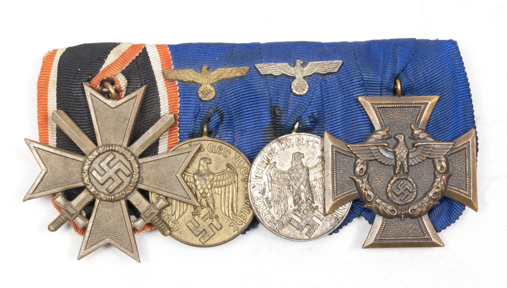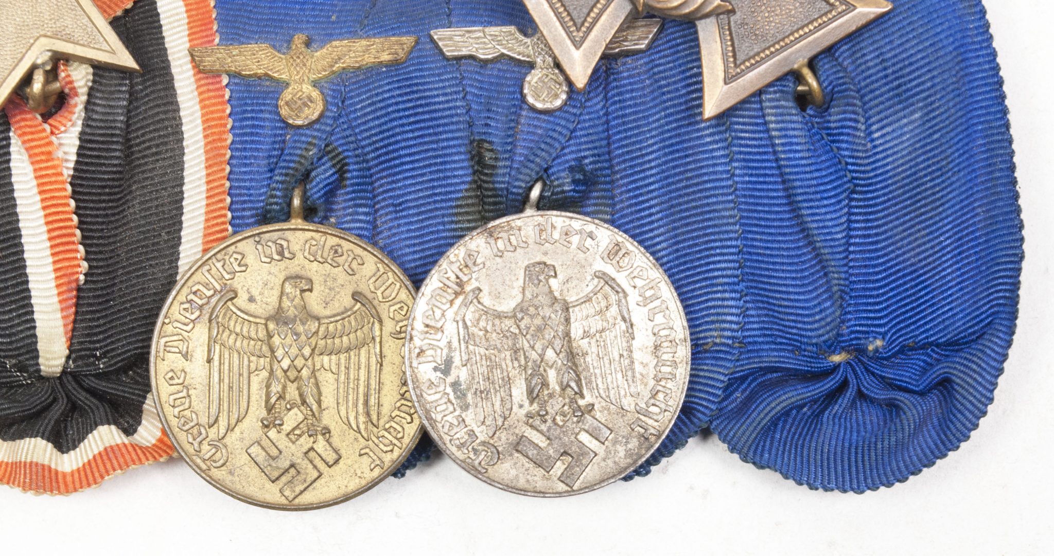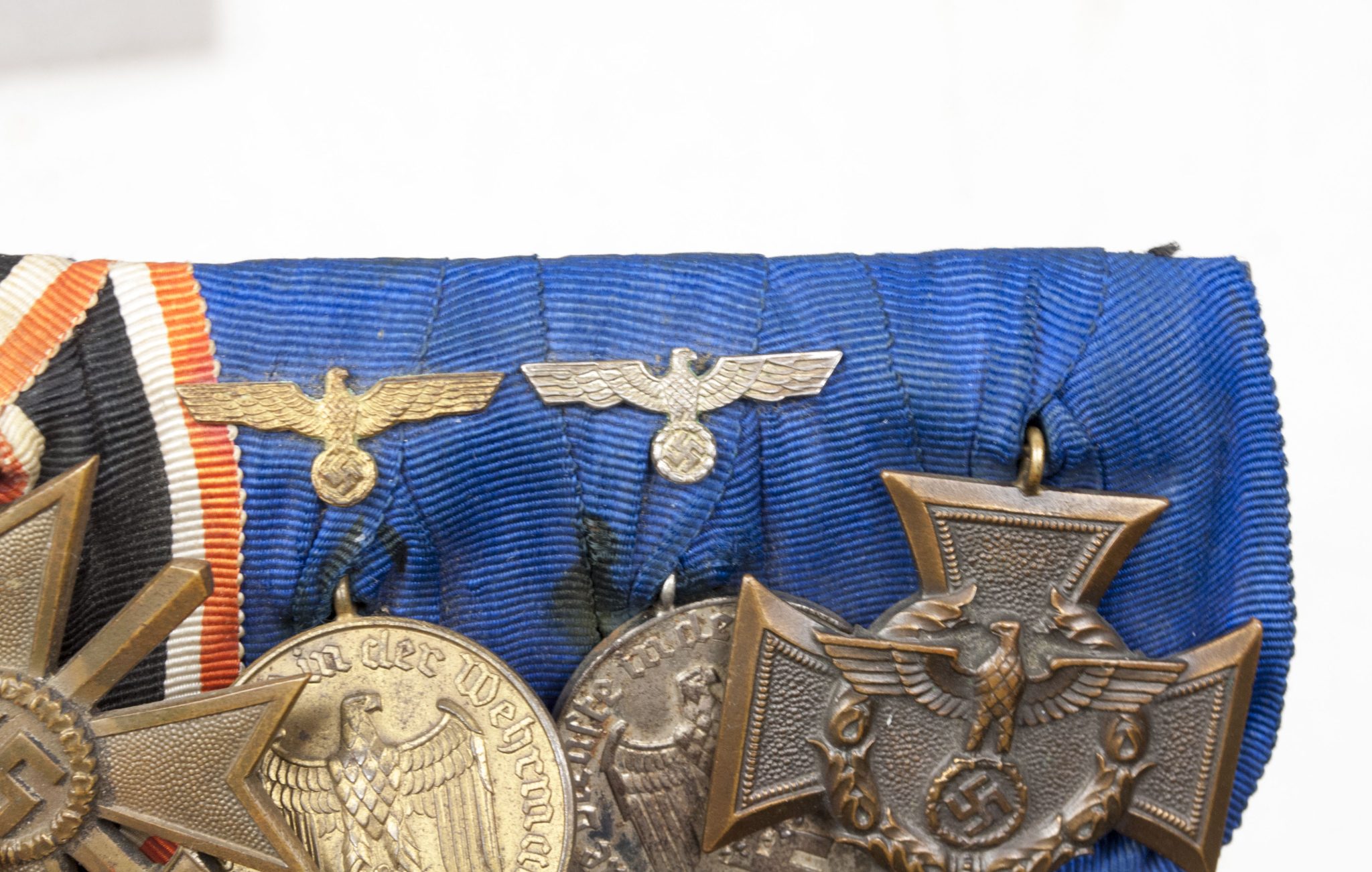 German WWII medalbar with KVK2 + Heer Dienstauszeichnung 8 + 4 Jahre + Zollgrenzschutz medaille.