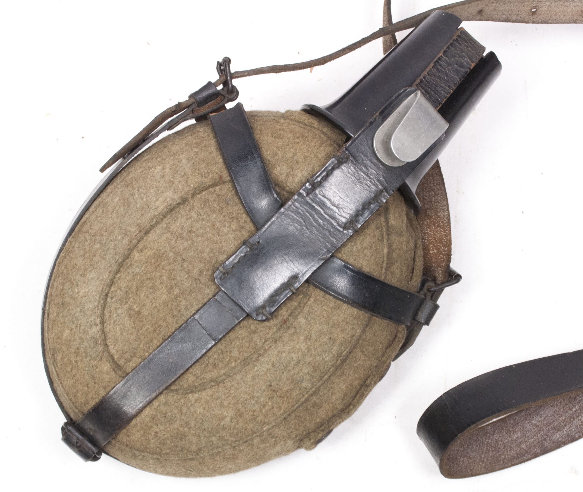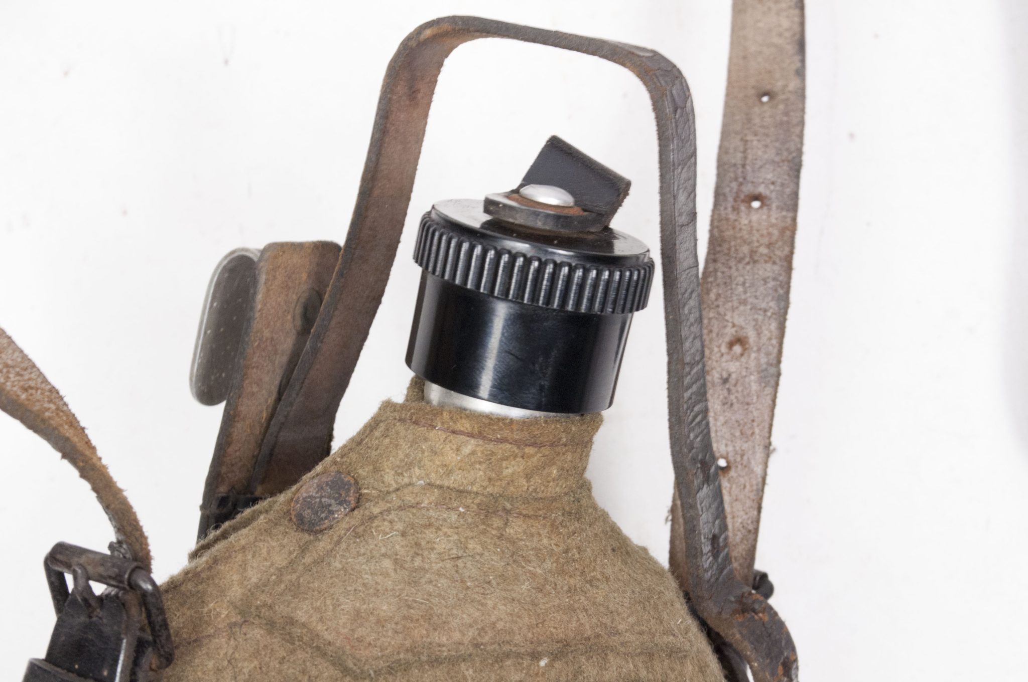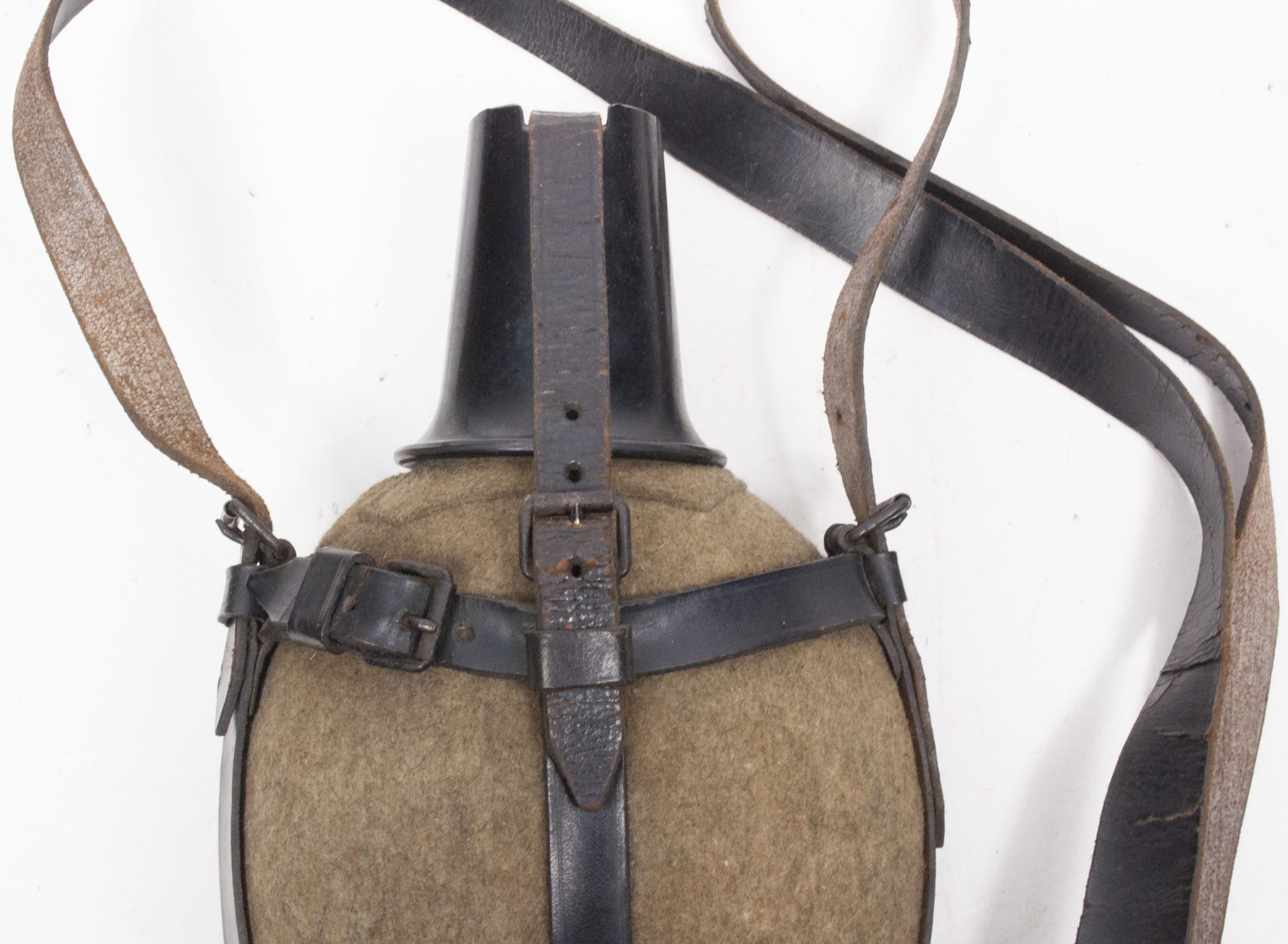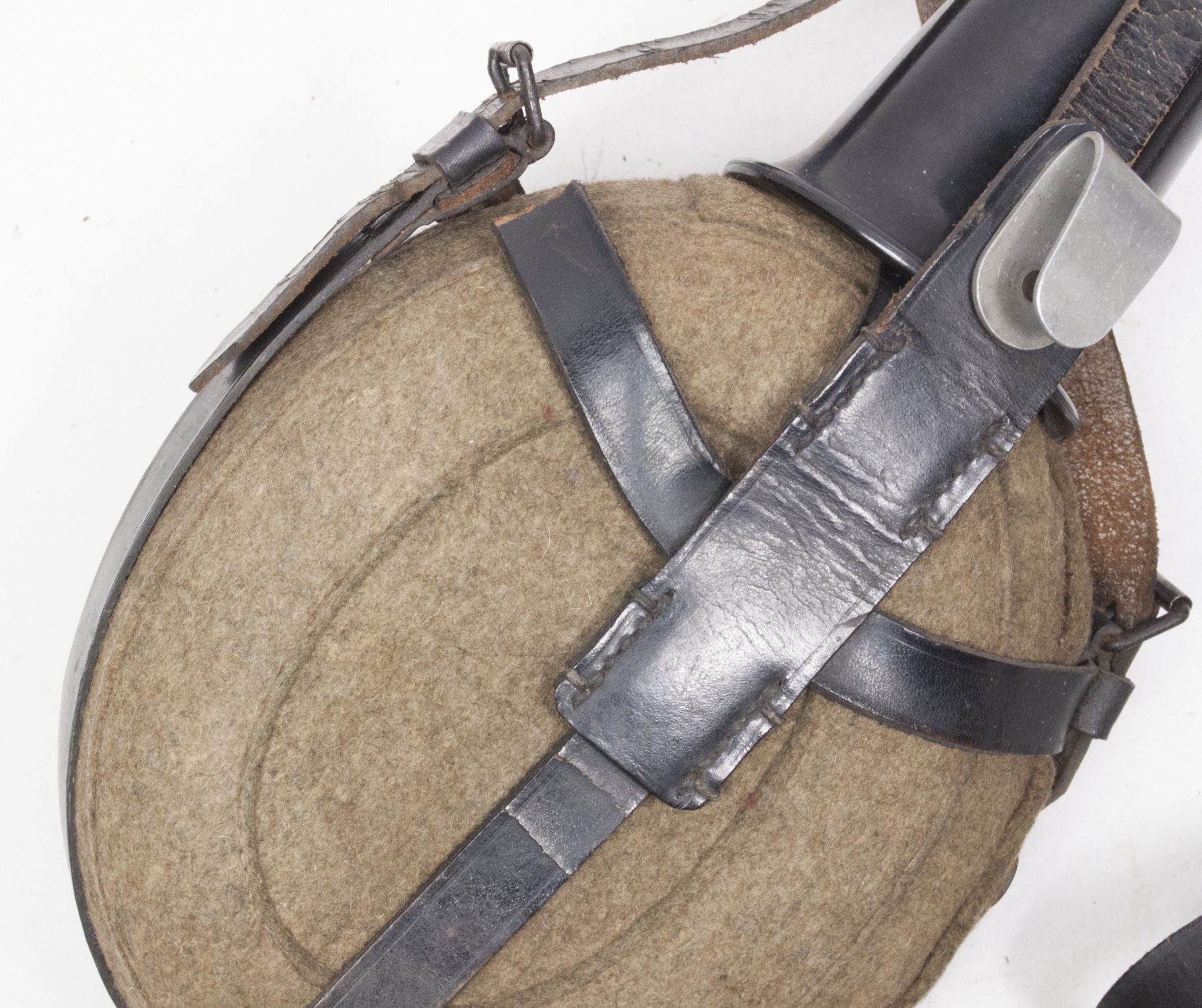 In very good condition, one strap broken. A very nice canteen cmplete with cup.