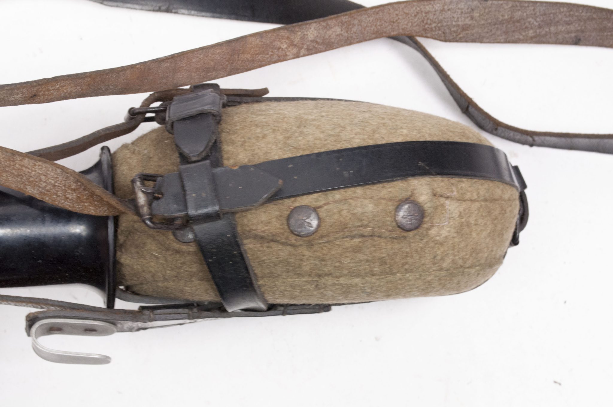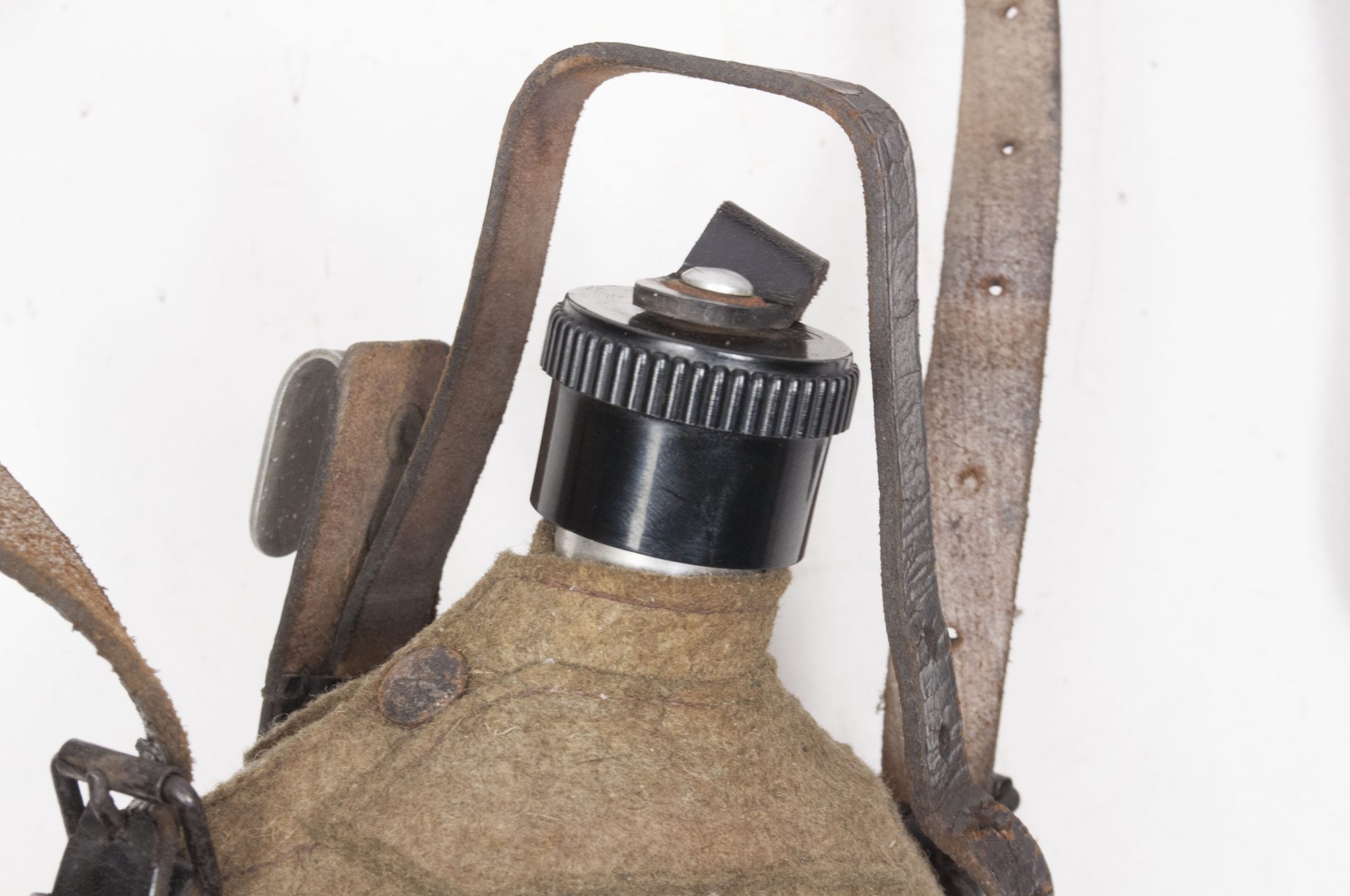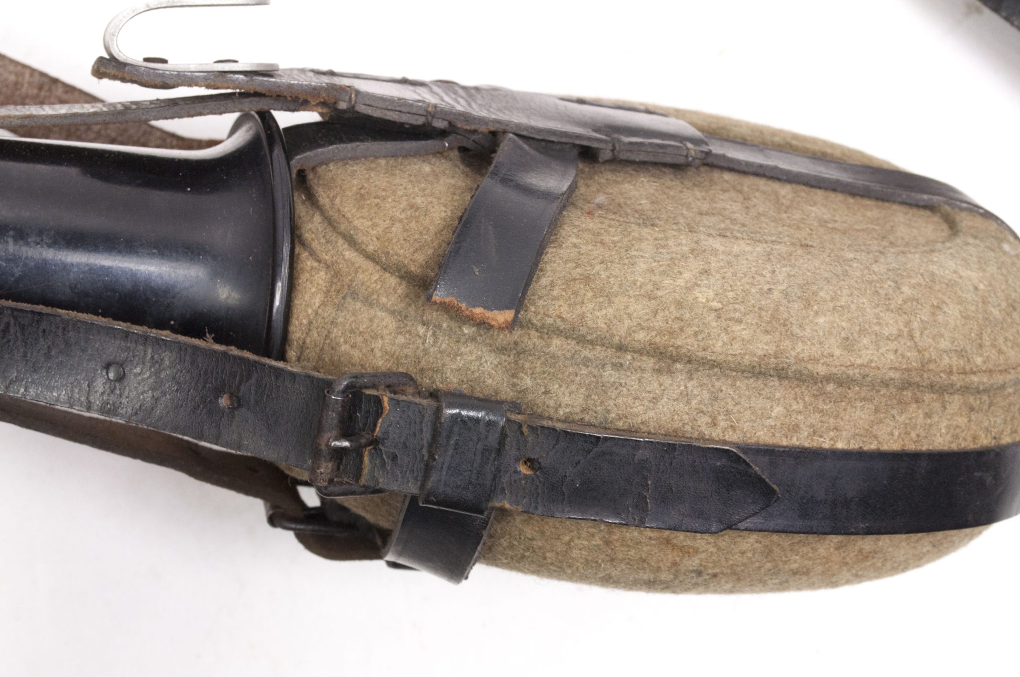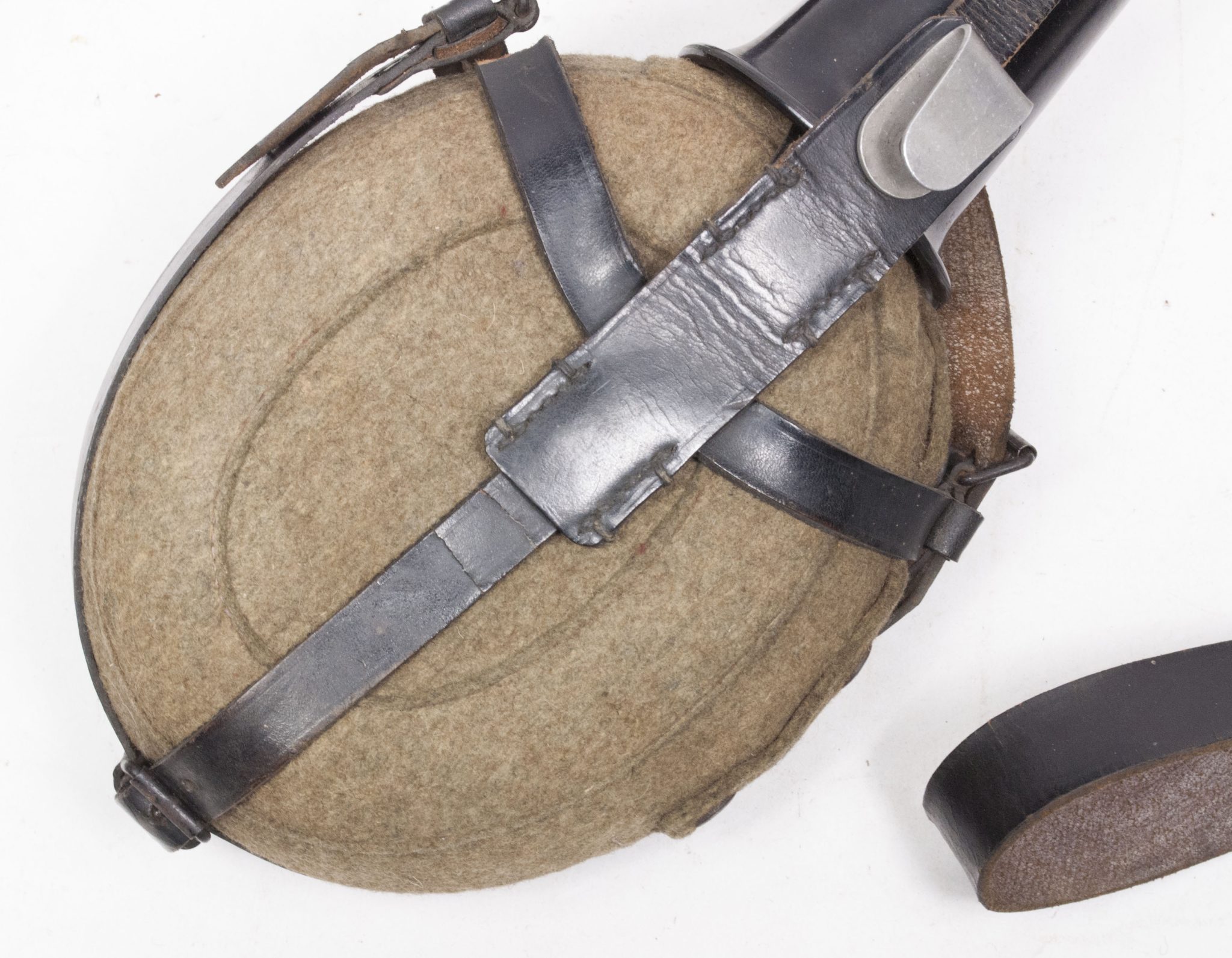 In very good condition, one strap broken. A very nice canteen cmplete with cup.