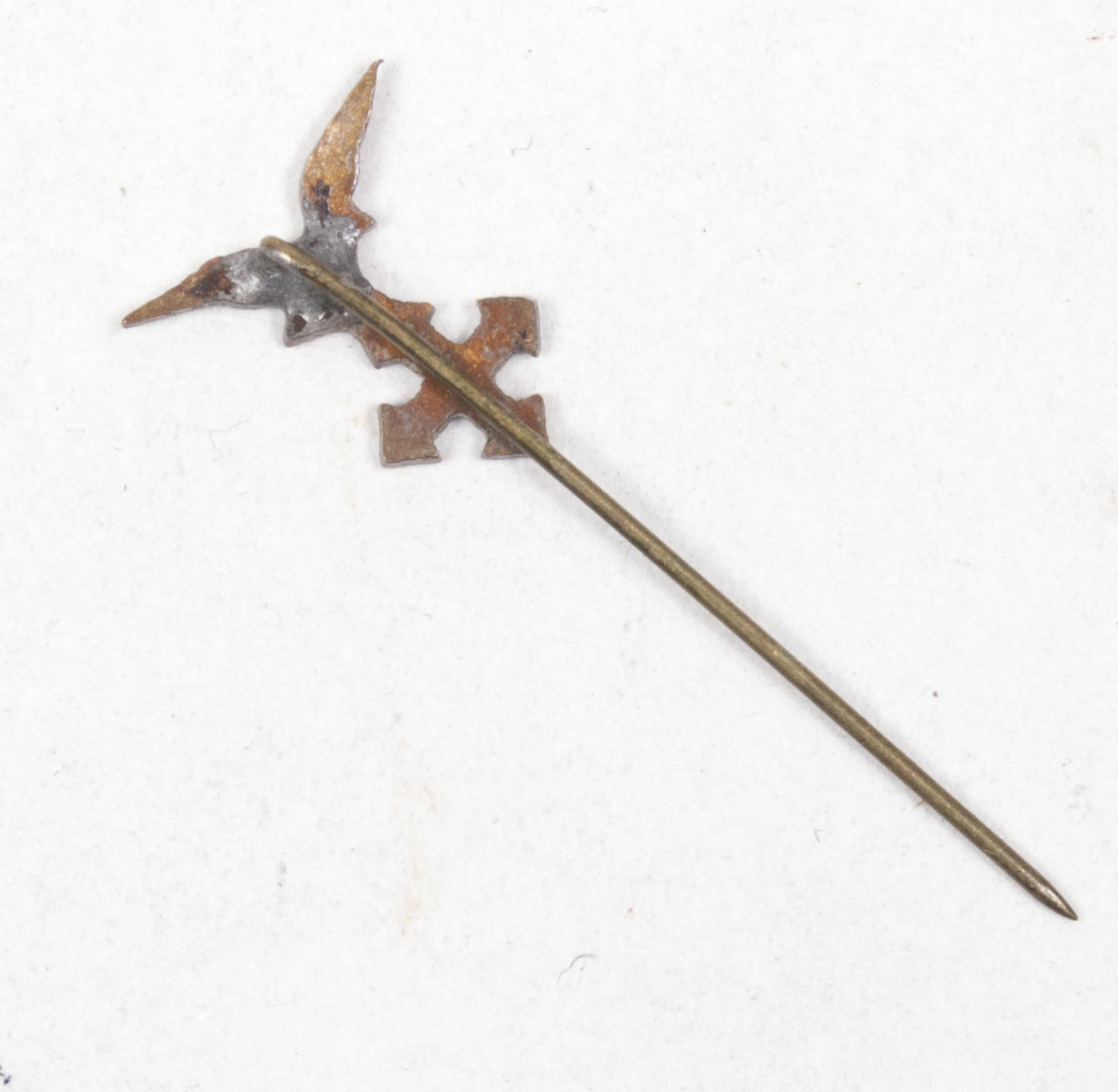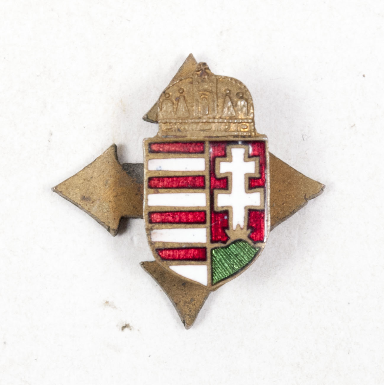 Hungarian Arrow Cross Party Member Badge with reverse national badge and miniature stickpin.