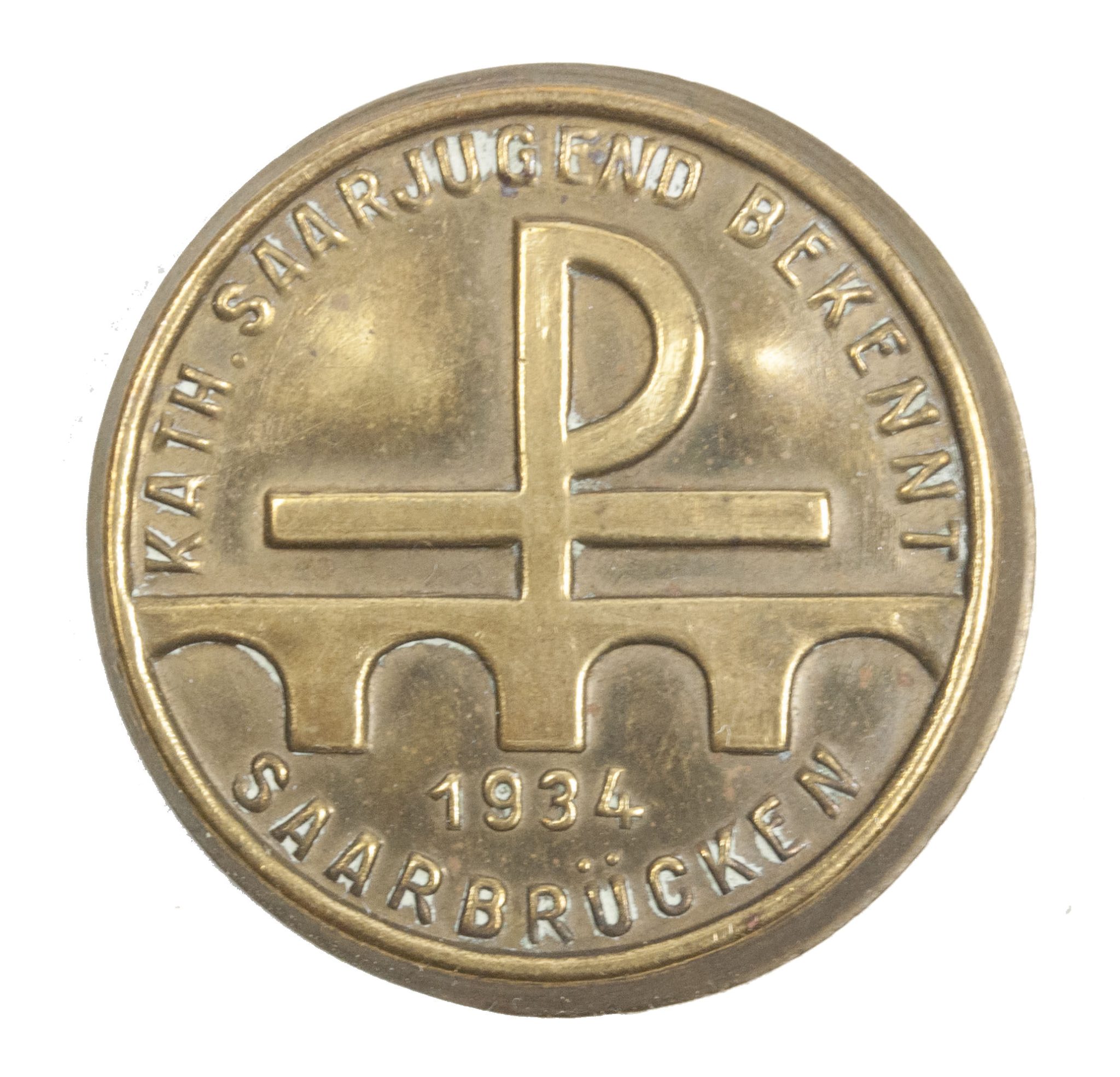 Category: WW2 German Badges and Memberpins Tag: Kath. SaarJugend Bekennt 1934 Saarbrücken
