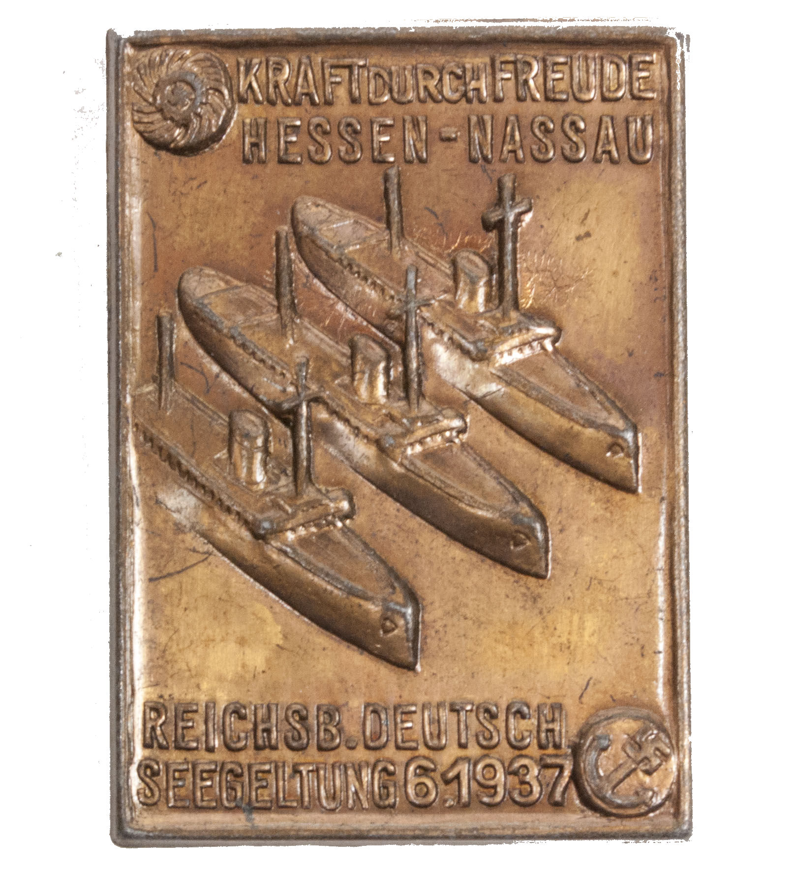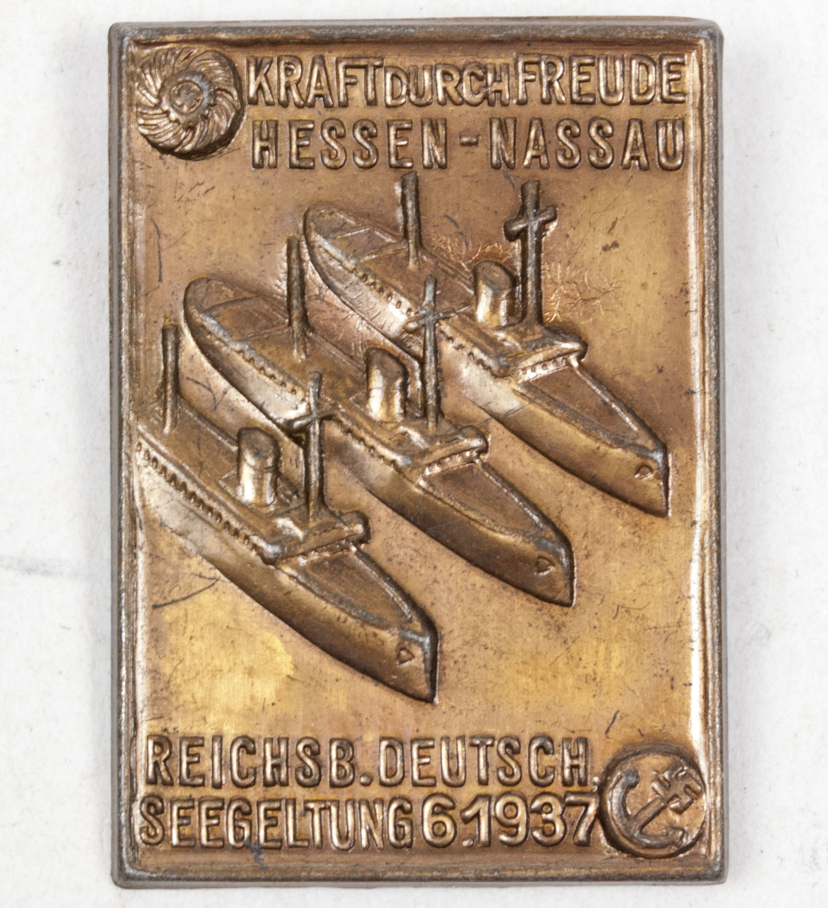Category: WW2 German Badges and Memberpins Tag: Kraft durch Freude (KDF) Hesen-Nassau Reichsb. Deutsch Seegeltung 7.1937