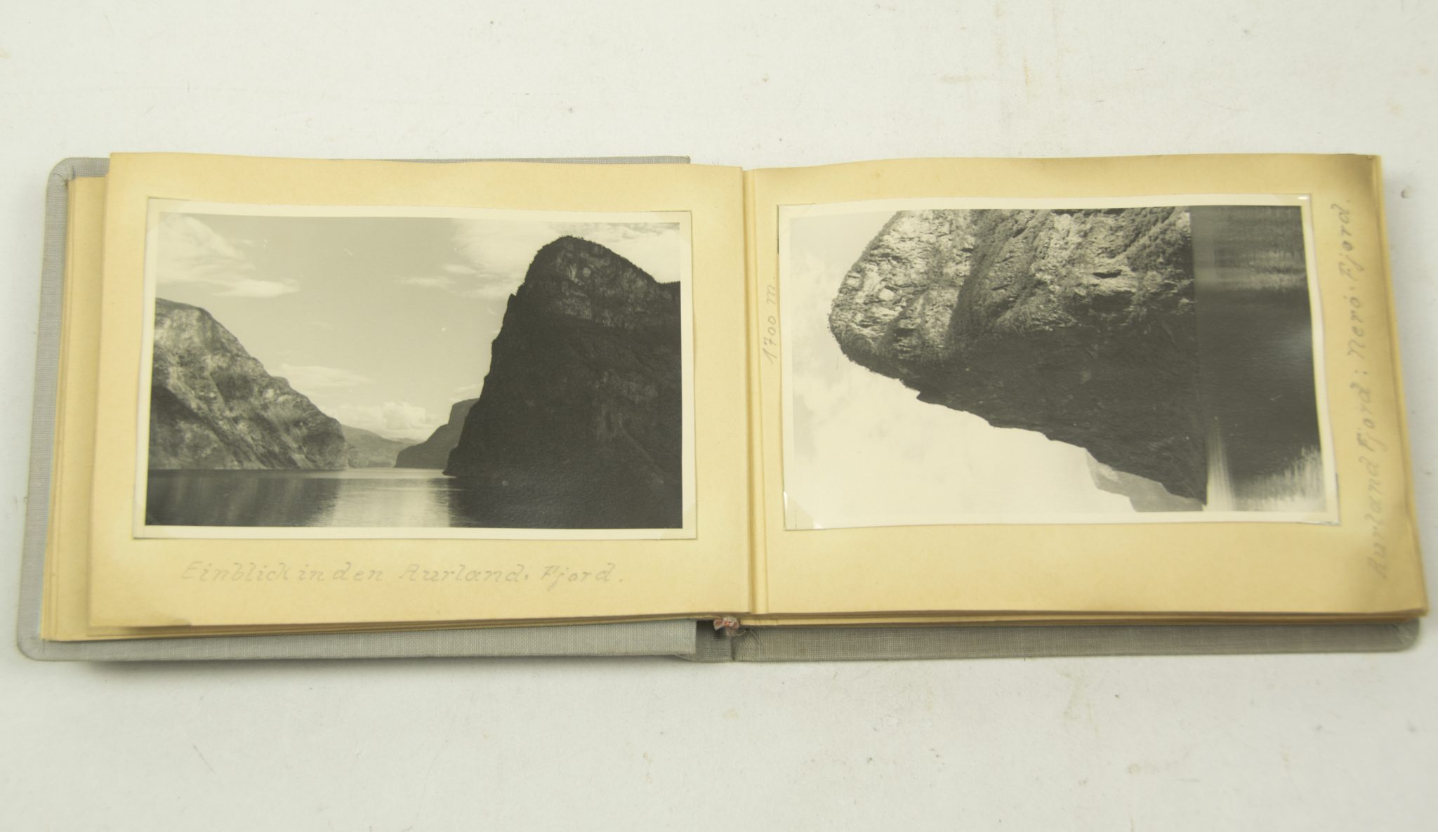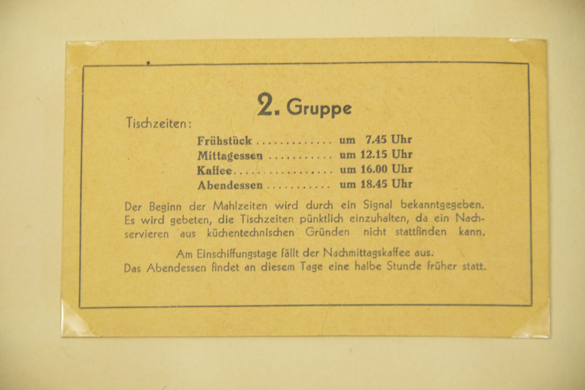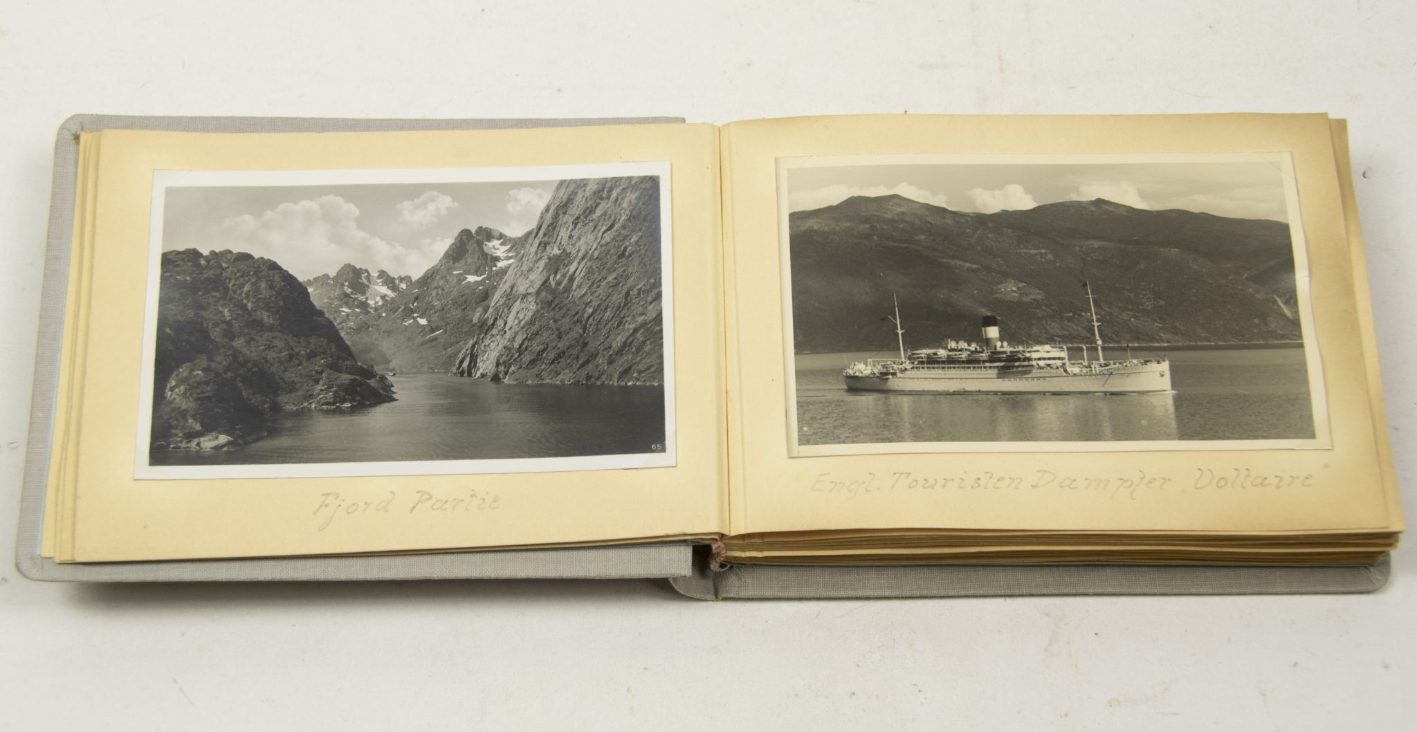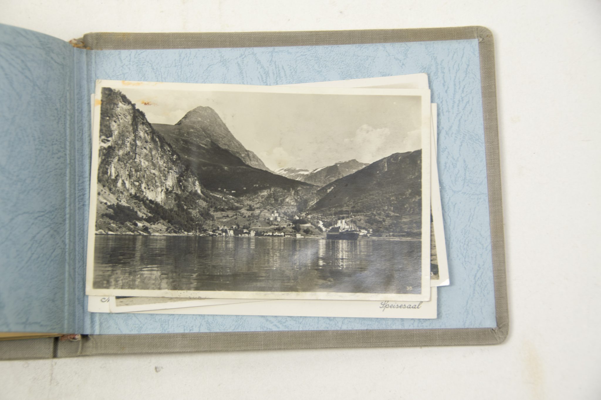 Nice and rare to find. With 33 photo’s inside, 4 Schiffsfahr/Tisch-karten, 25 small photocards that could be bought on board (i think), and several postcards.
