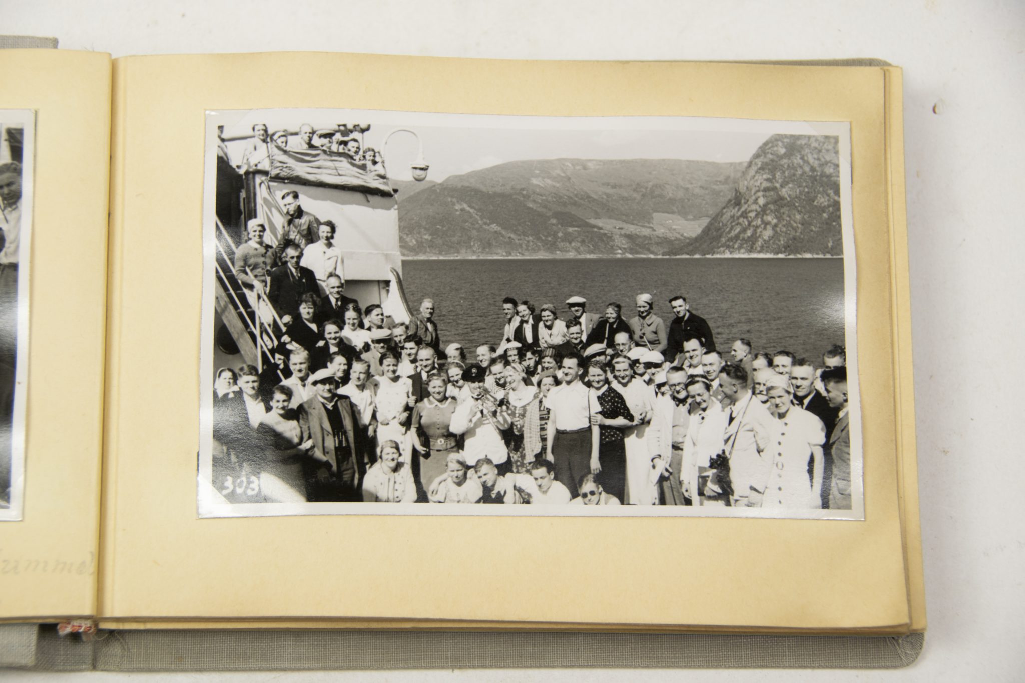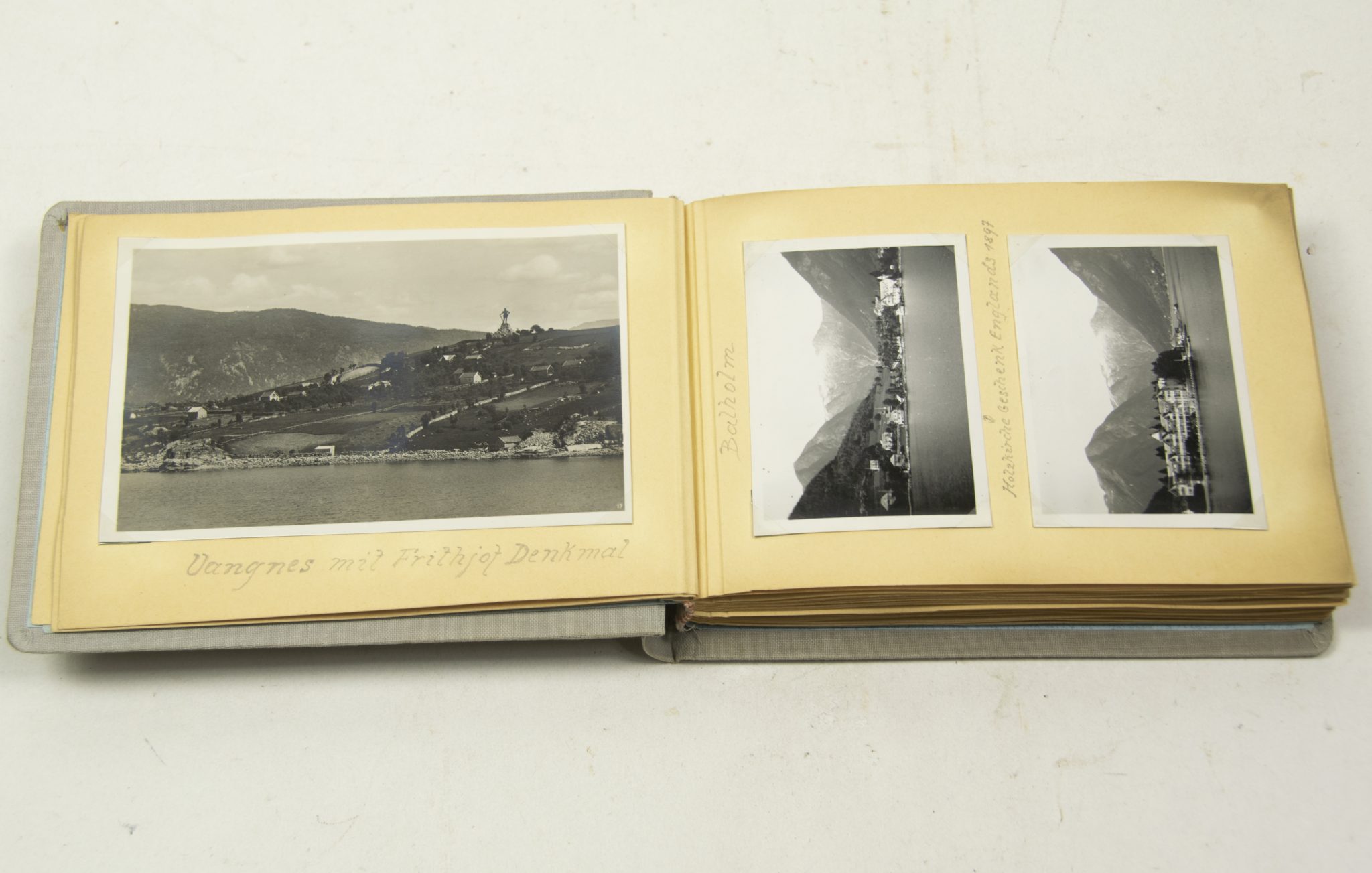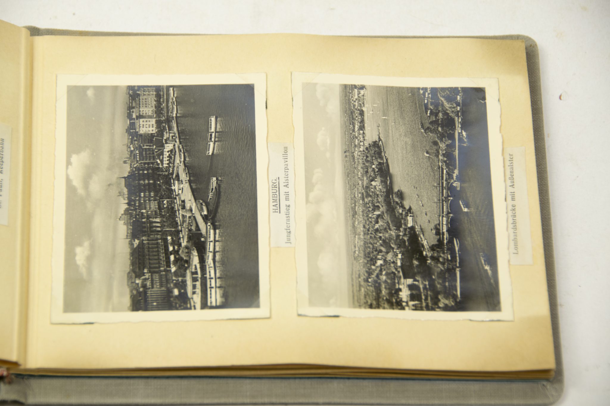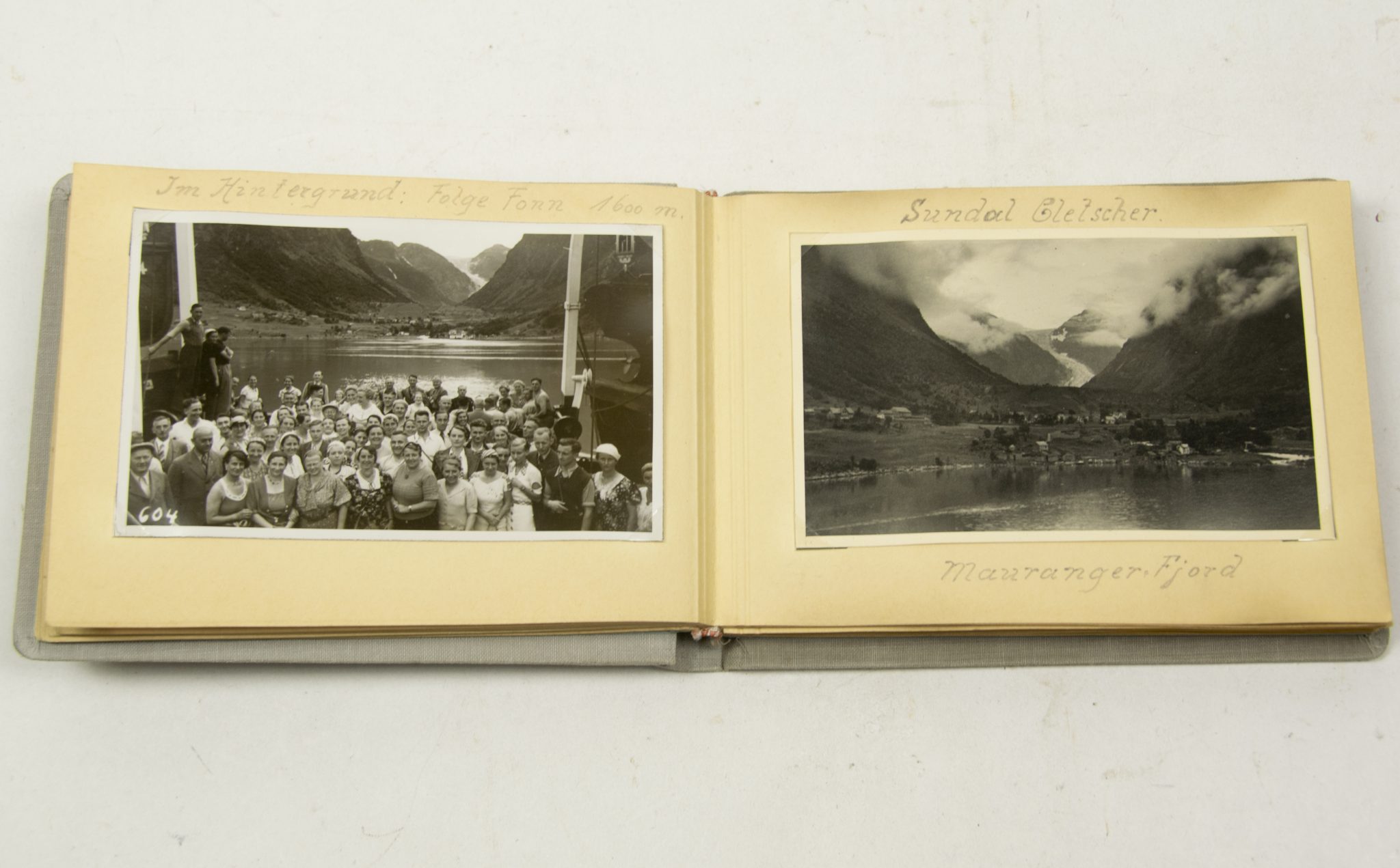 Nice and rare to find. With 33 photo’s inside, 4 Schiffsfahr/Tisch-karten, 25 small photocards that could be bought on board (i think), and several postcards.