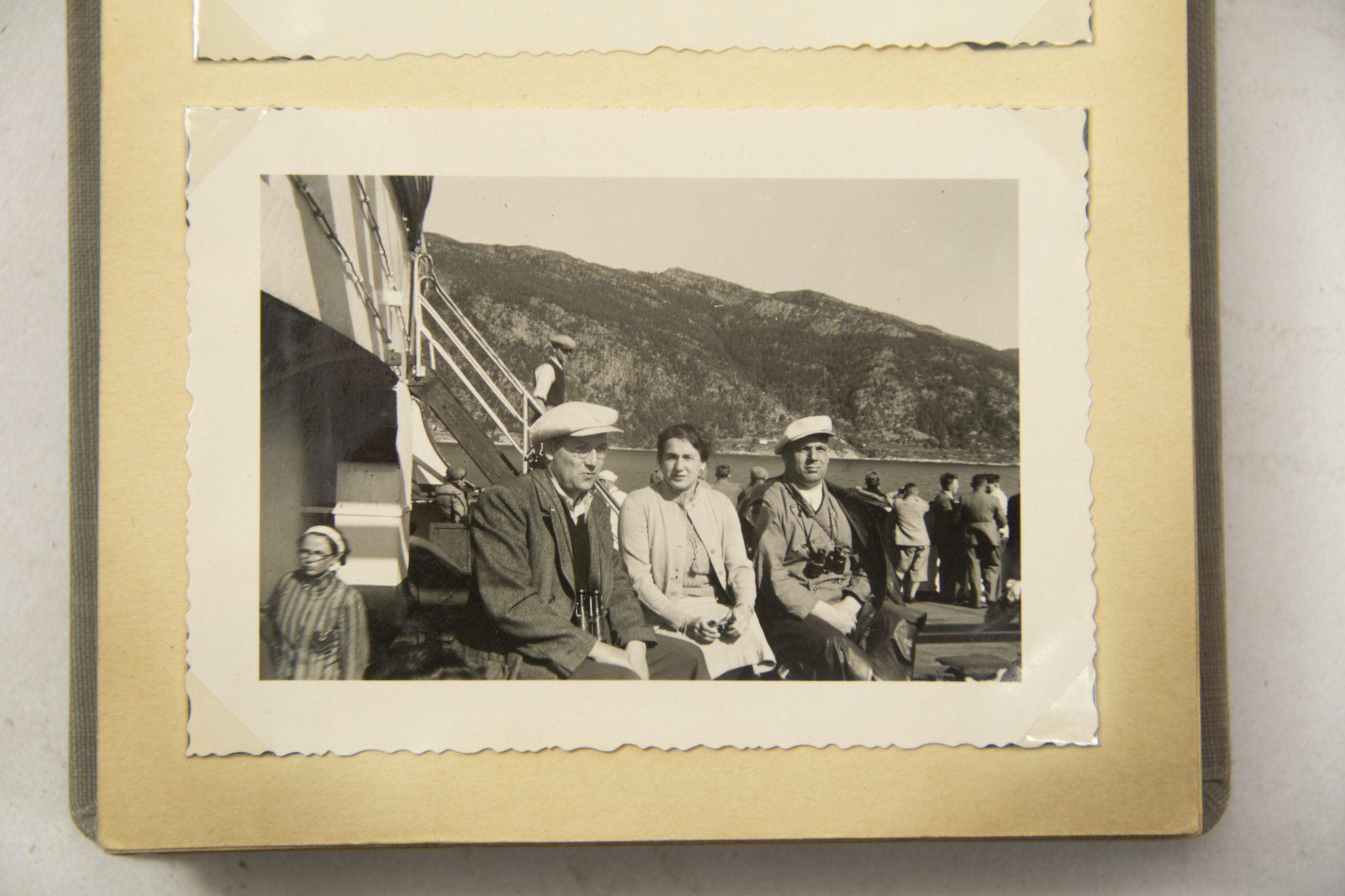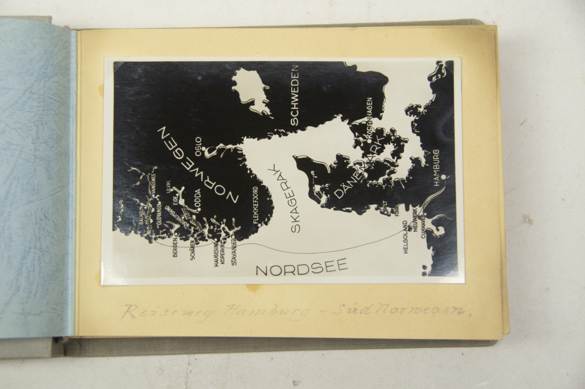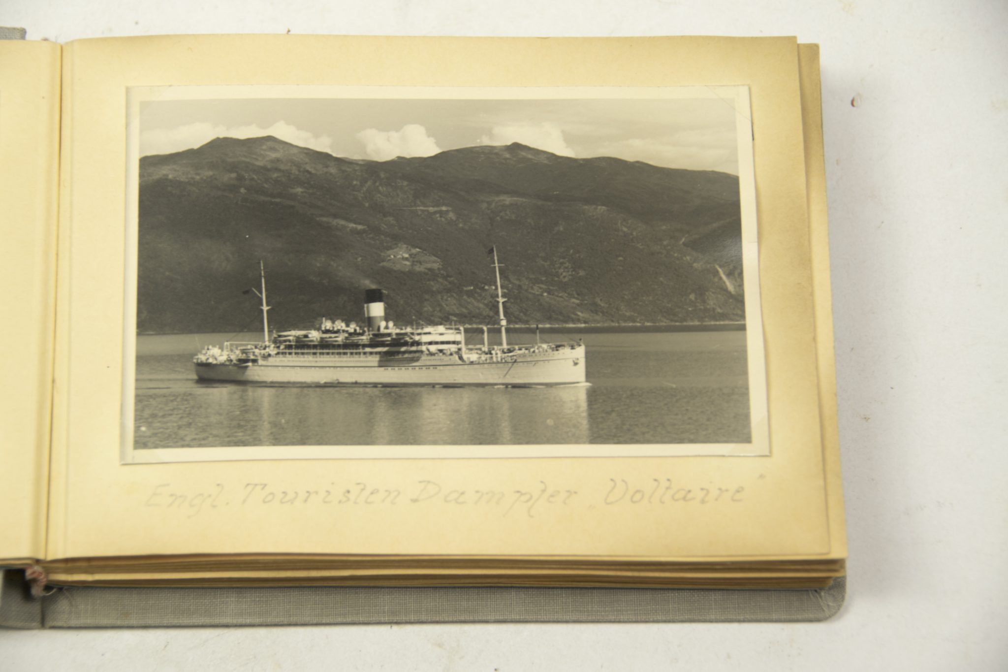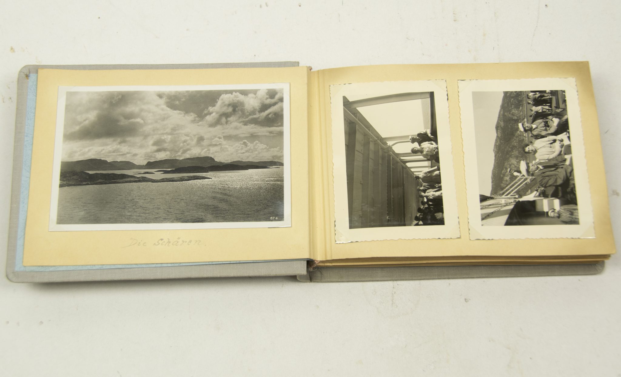 Nice and rare to find. With 33 photo’s inside, 4 Schiffsfahr/Tisch-karten, 25 small photocards that could be bought on board (i think), and several postcards.